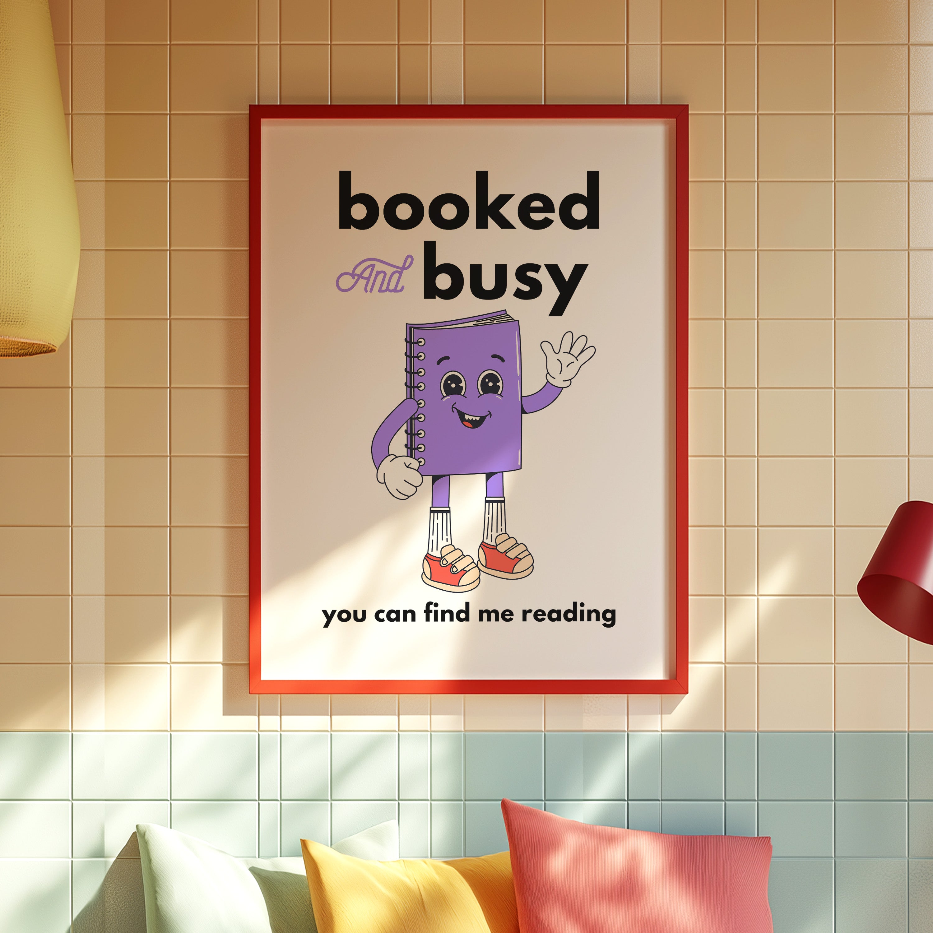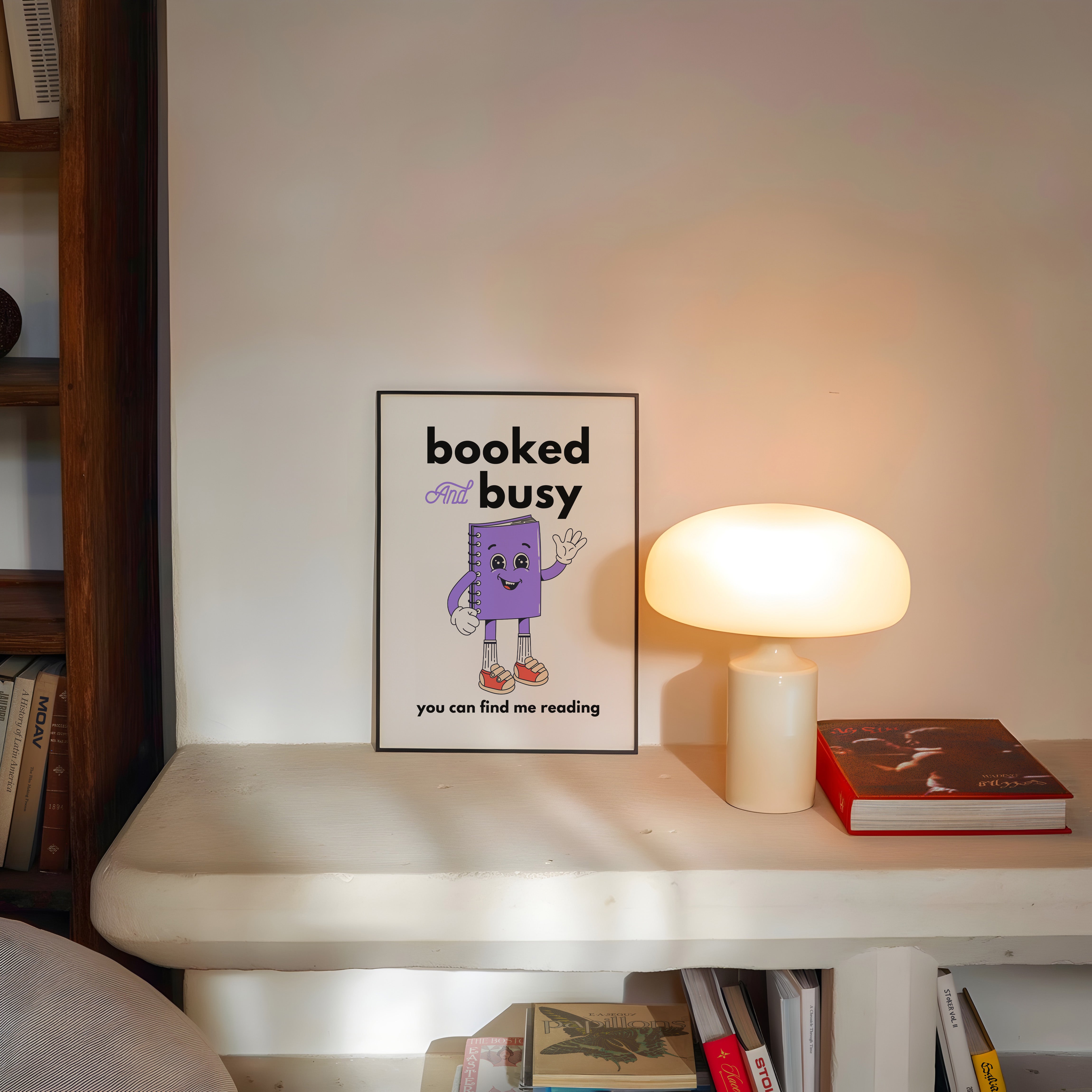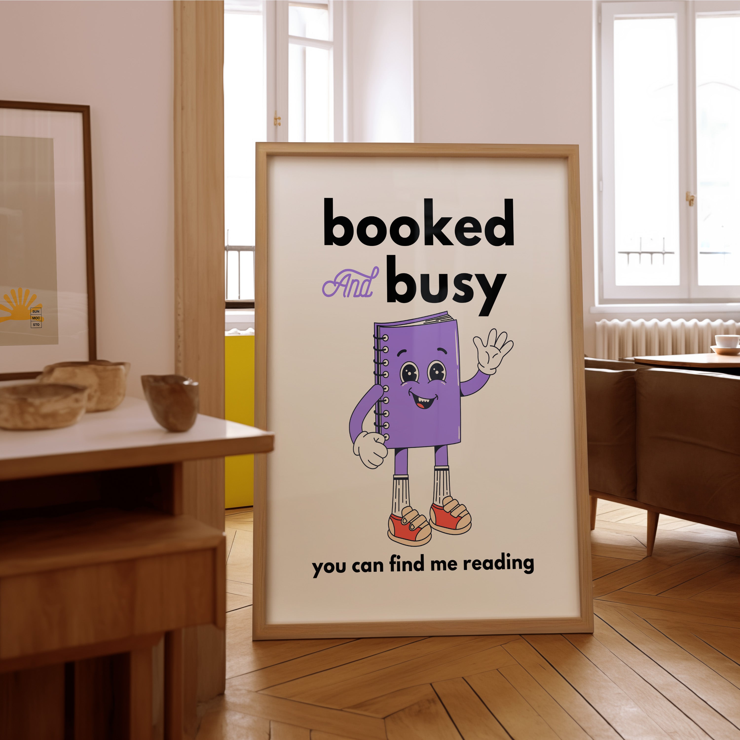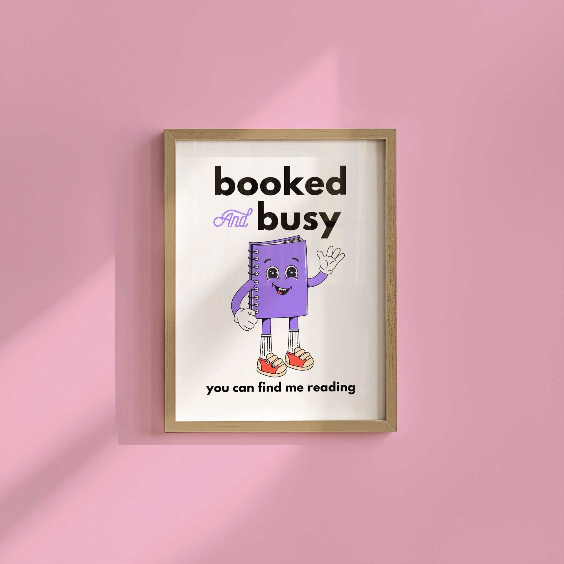Booked and Busy Cartoon Vertical Art Print - Purple