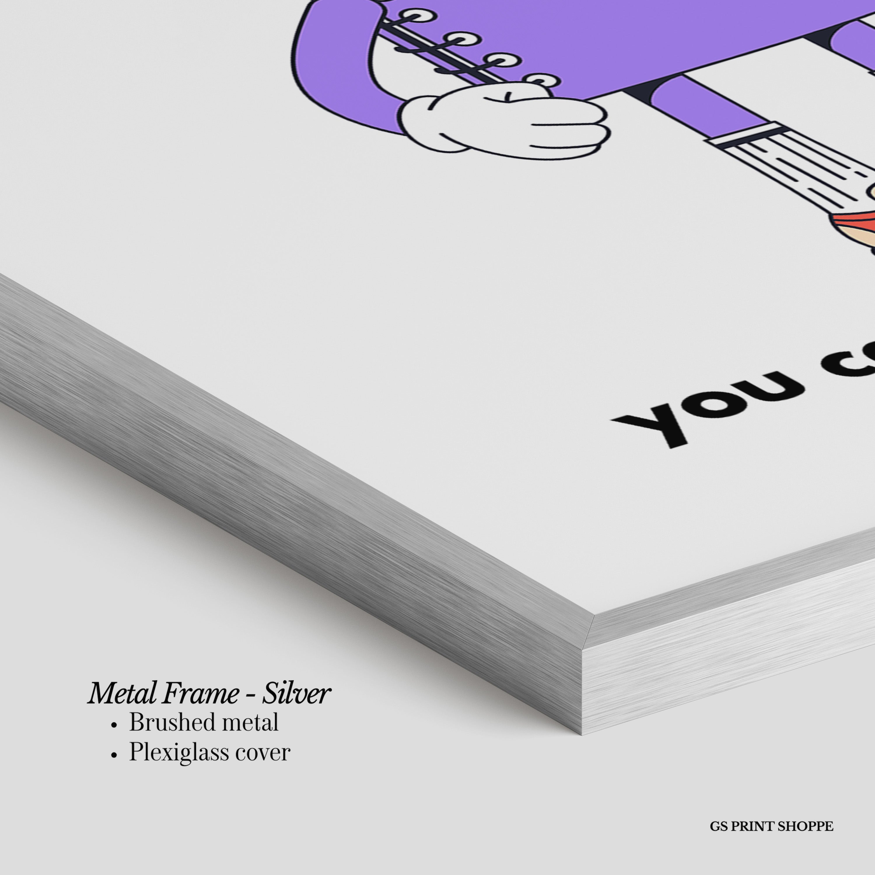 Metal Frame: Sleek and modern, our metal frame is crafted with brushed metal for a polished finish. It comes with durable plexiglass and sturdy metal hangers for horizontal or vertical display.