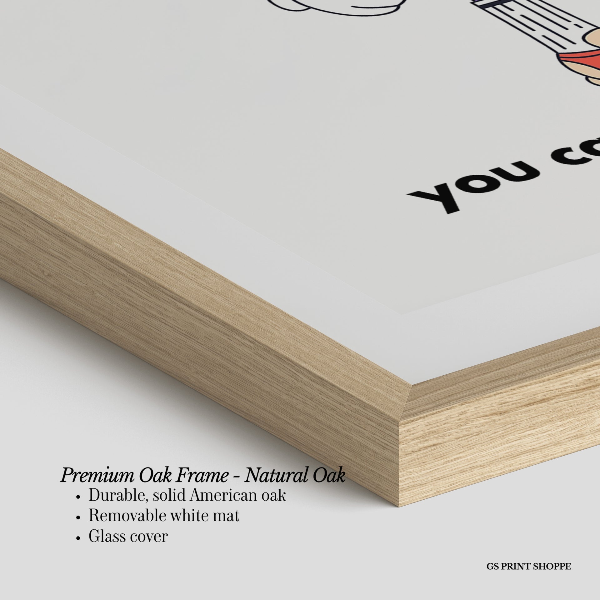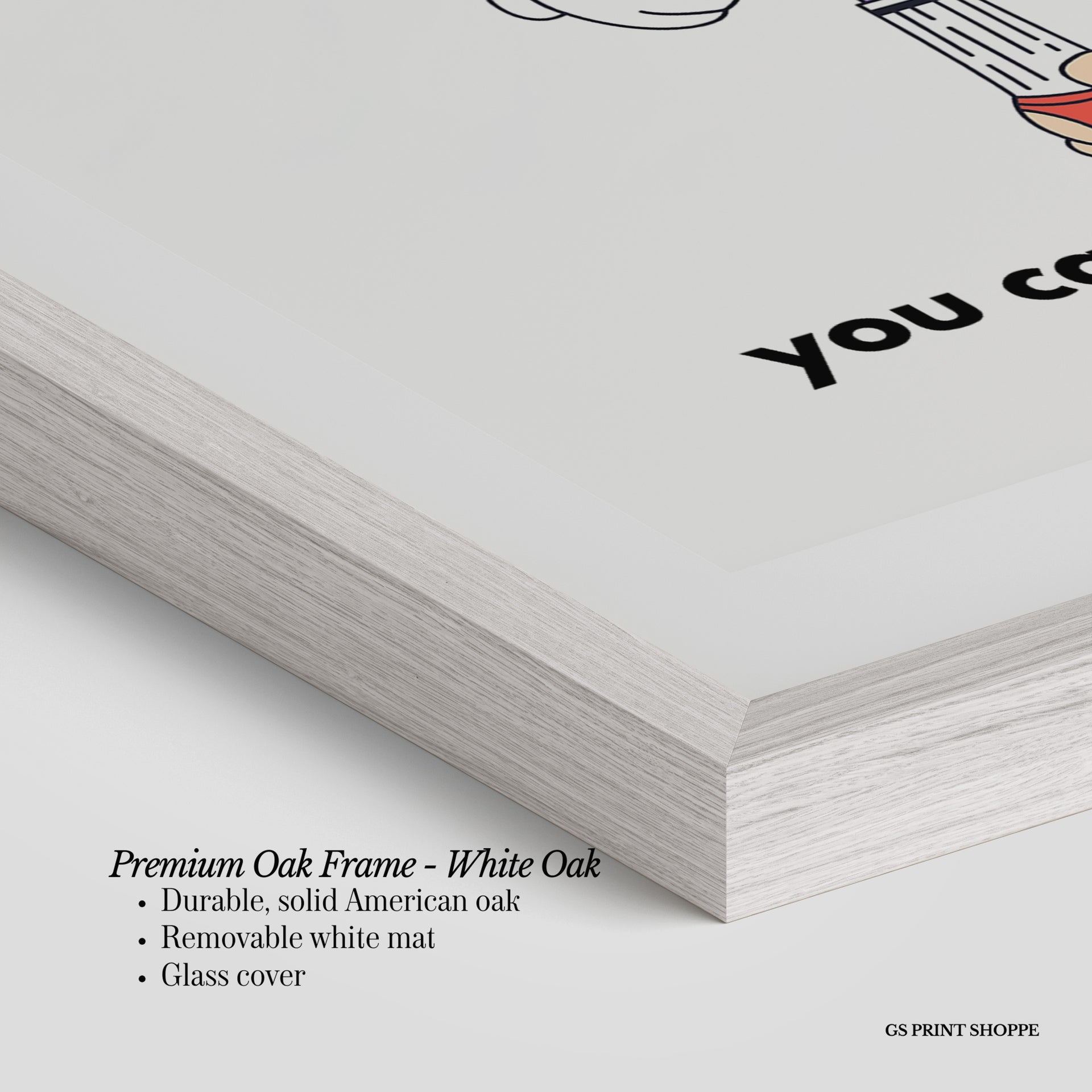 Premium Oak Frame: Our premium oak frame is crafted from solid American oak, offering a warm, natural feel with a high-end finish. We complete this elevated offering with a bright white removable mat and real glass for a versatile and polished look.