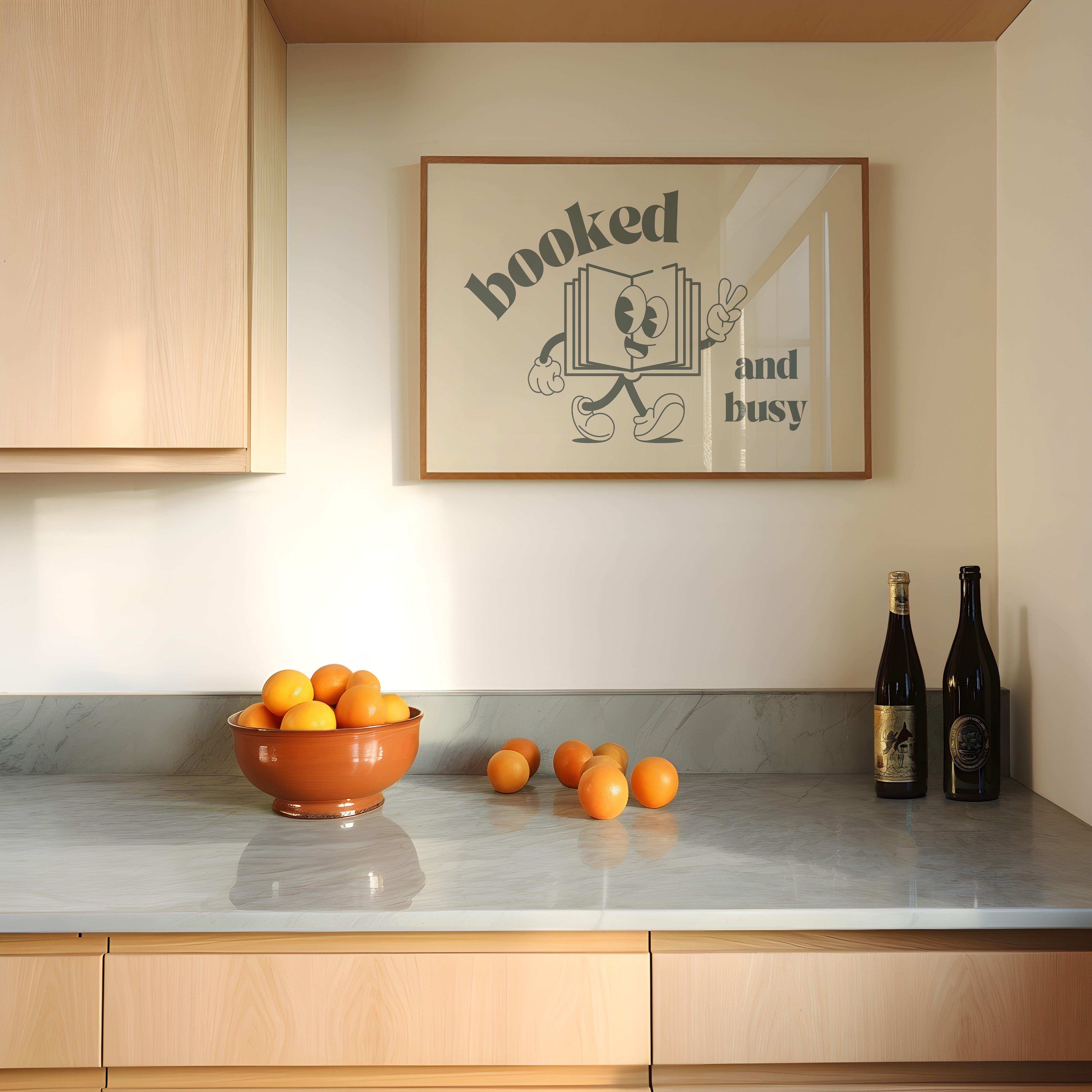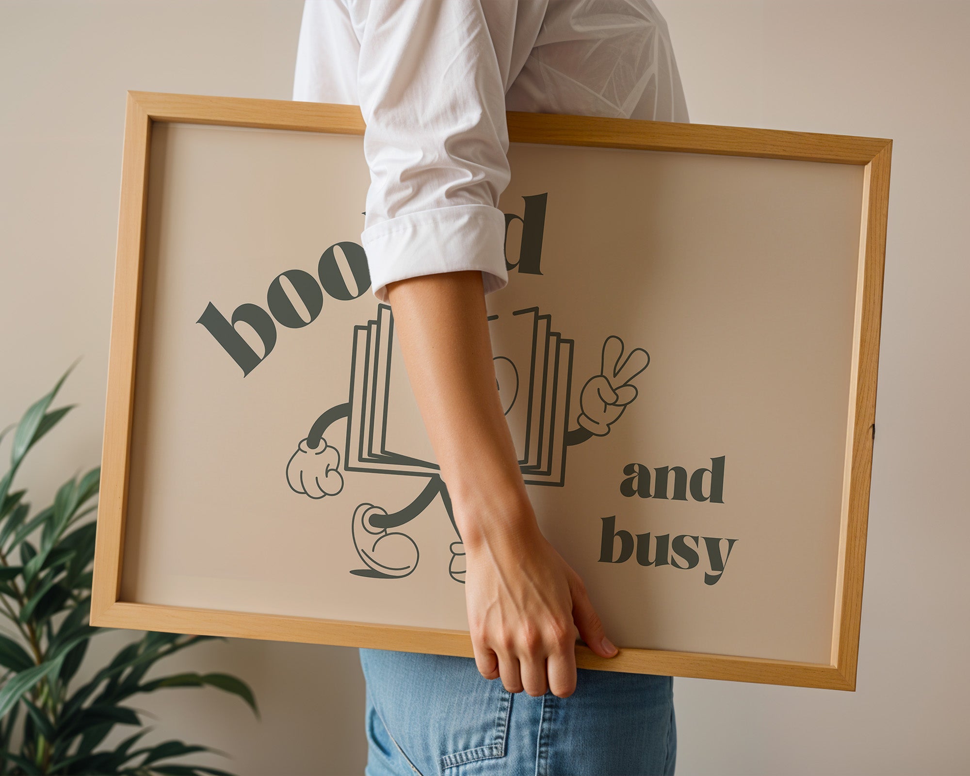 Booked and Busy Horizontal Art Print- Beige and Dark Gray