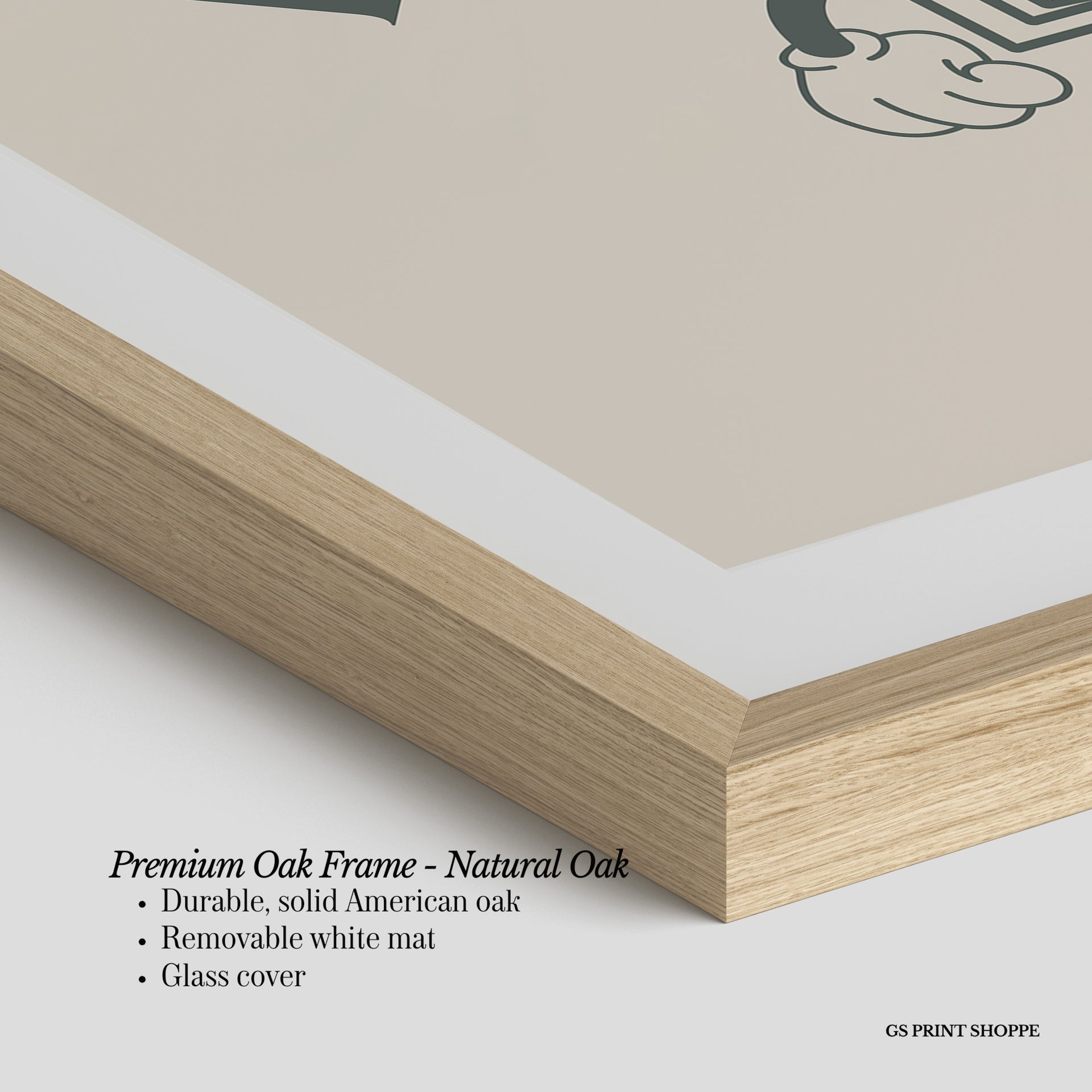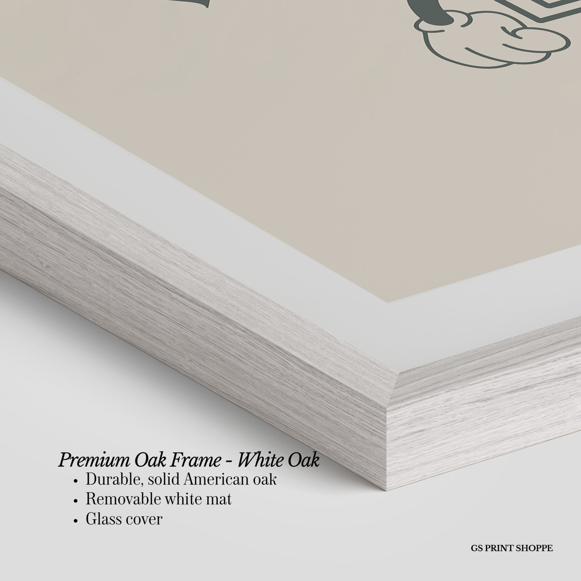 Premium Oak Frame: Our premium oak frame is crafted from solid American oak, offering a warm, natural feel with a high-end finish. We complete this elevated offering with a bright white removable mat and real glass for a versatile and polished look.