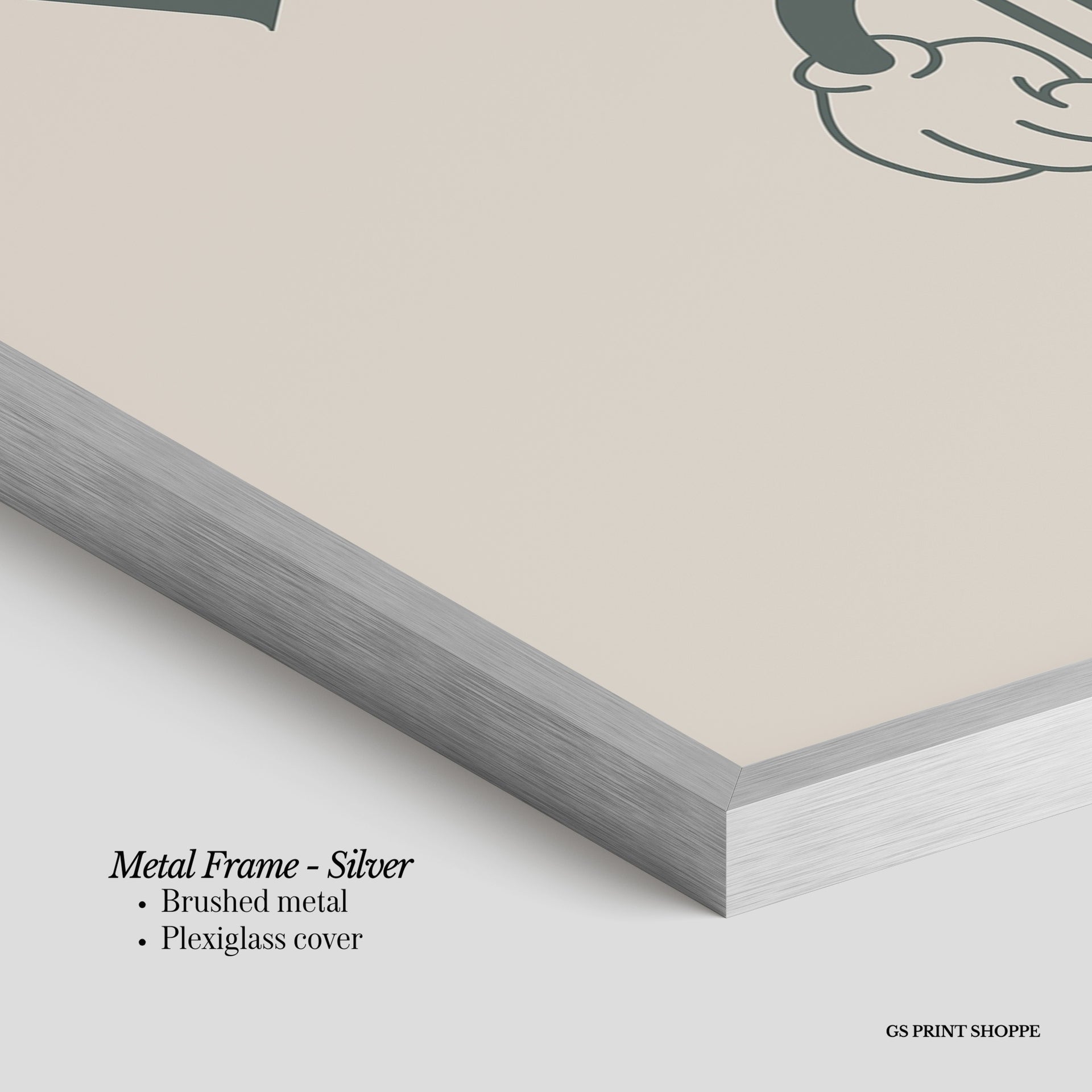 Metal Frame: Sleek and modern, our metal frame is crafted with brushed metal for a polished finish. It comes with durable plexiglass and sturdy metal hangers for horizontal or vertical display.