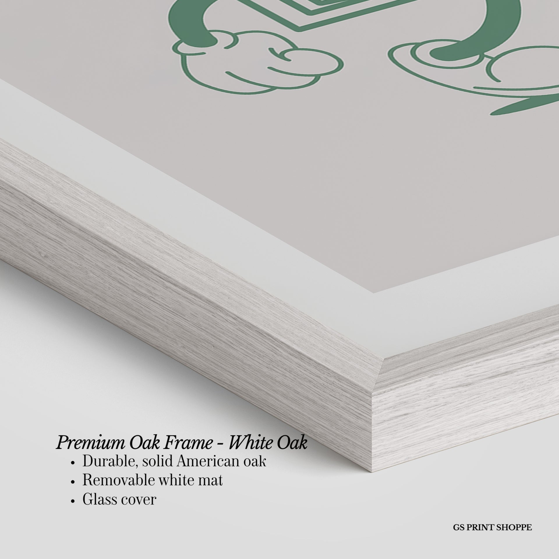 Premium Oak Frame: Our premium oak frame is crafted from solid American oak, offering a warm, natural feel with a high-end finish. We complete this elevated offering with a bright white removable mat and real glass for a versatile and polished look.