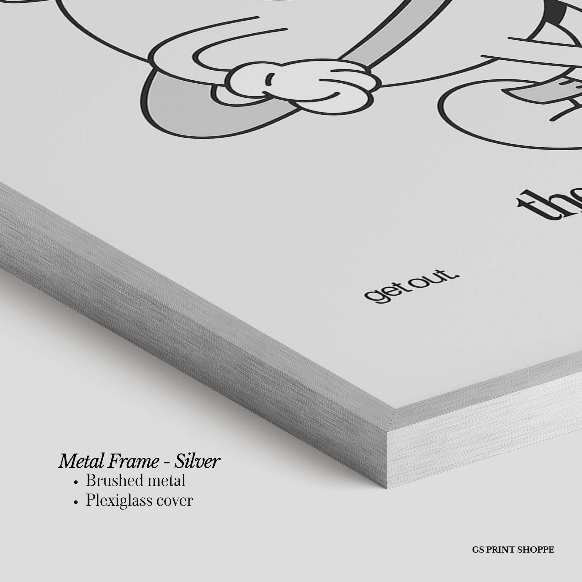 Metal Frame: Sleek and modern, our metal frame is crafted with brushed metal for a polished finish. It comes with durable plexiglass and sturdy metal hangers for horizontal or vertical display.