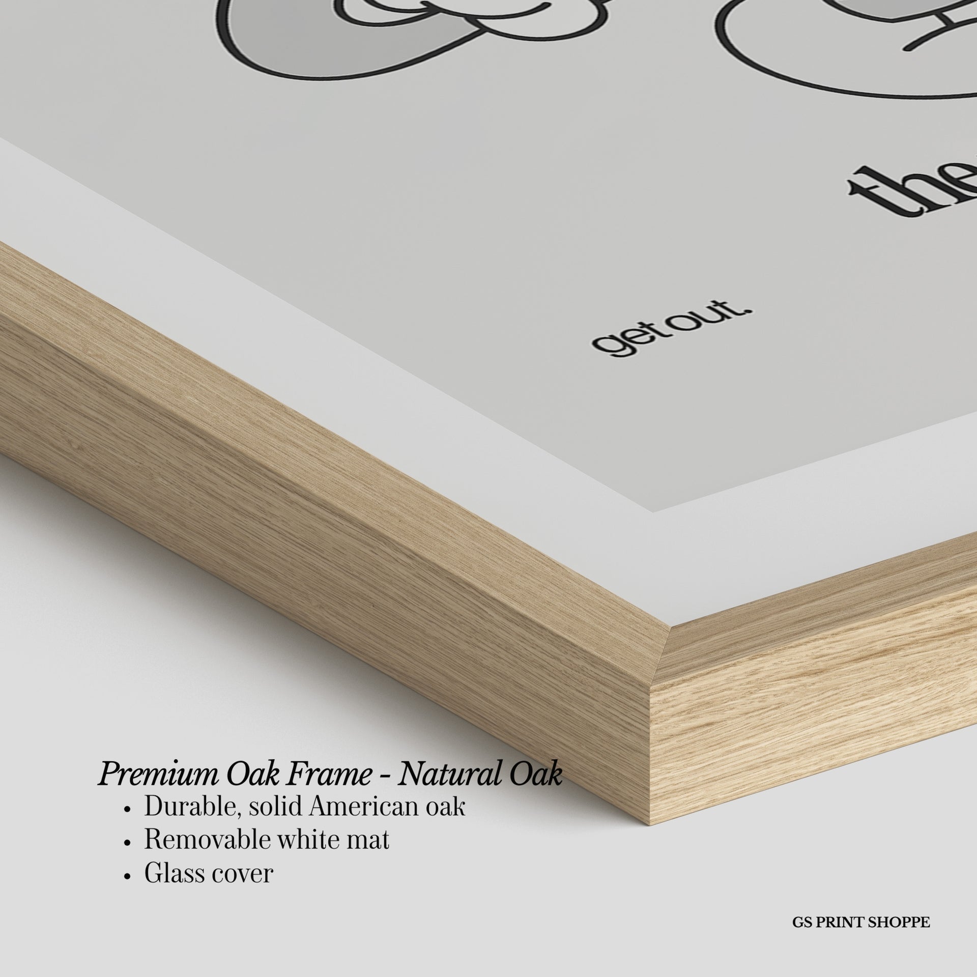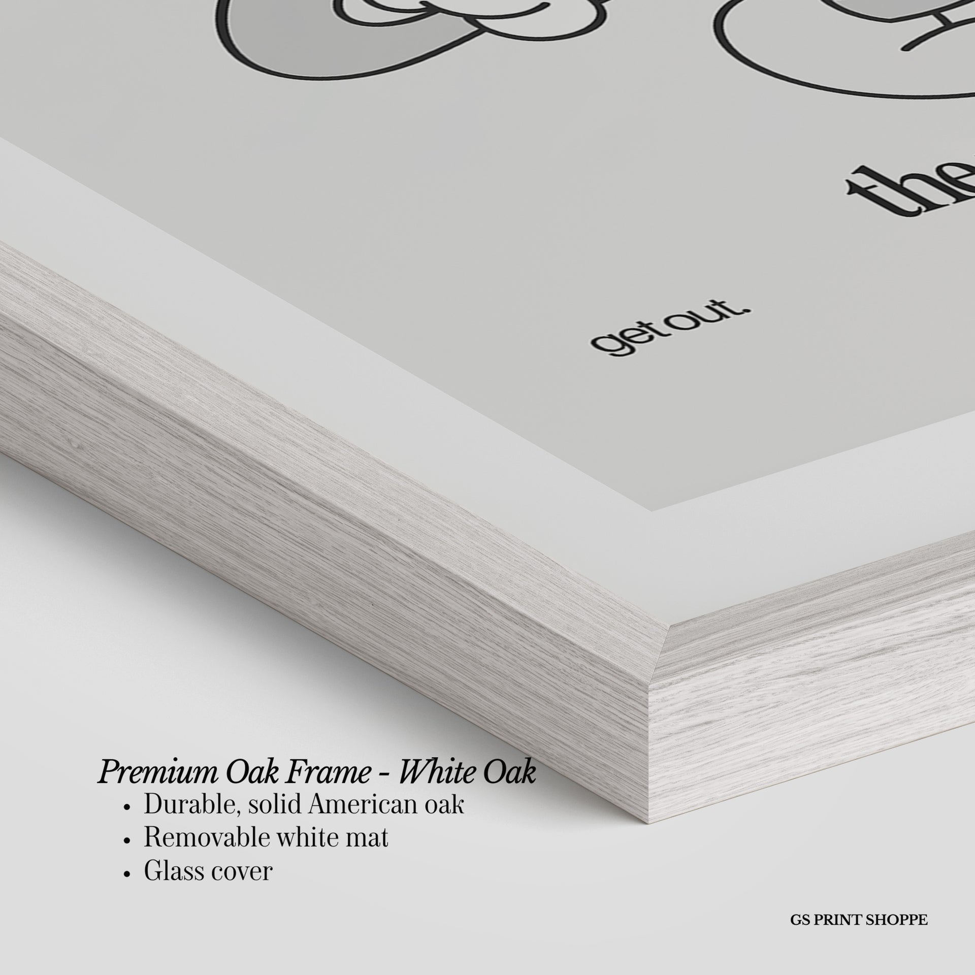 Premium Oak Frame: Our premium oak frame is crafted from solid American oak, offering a warm, natural feel with a high-end finish. We complete this elevated offering with a bright white removable mat and real glass for a versatile and polished look.