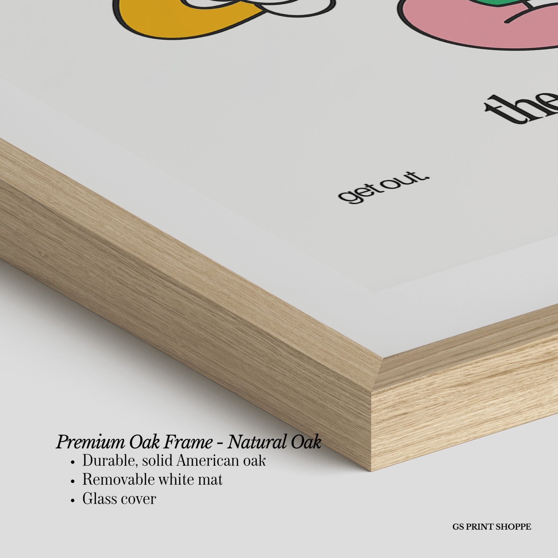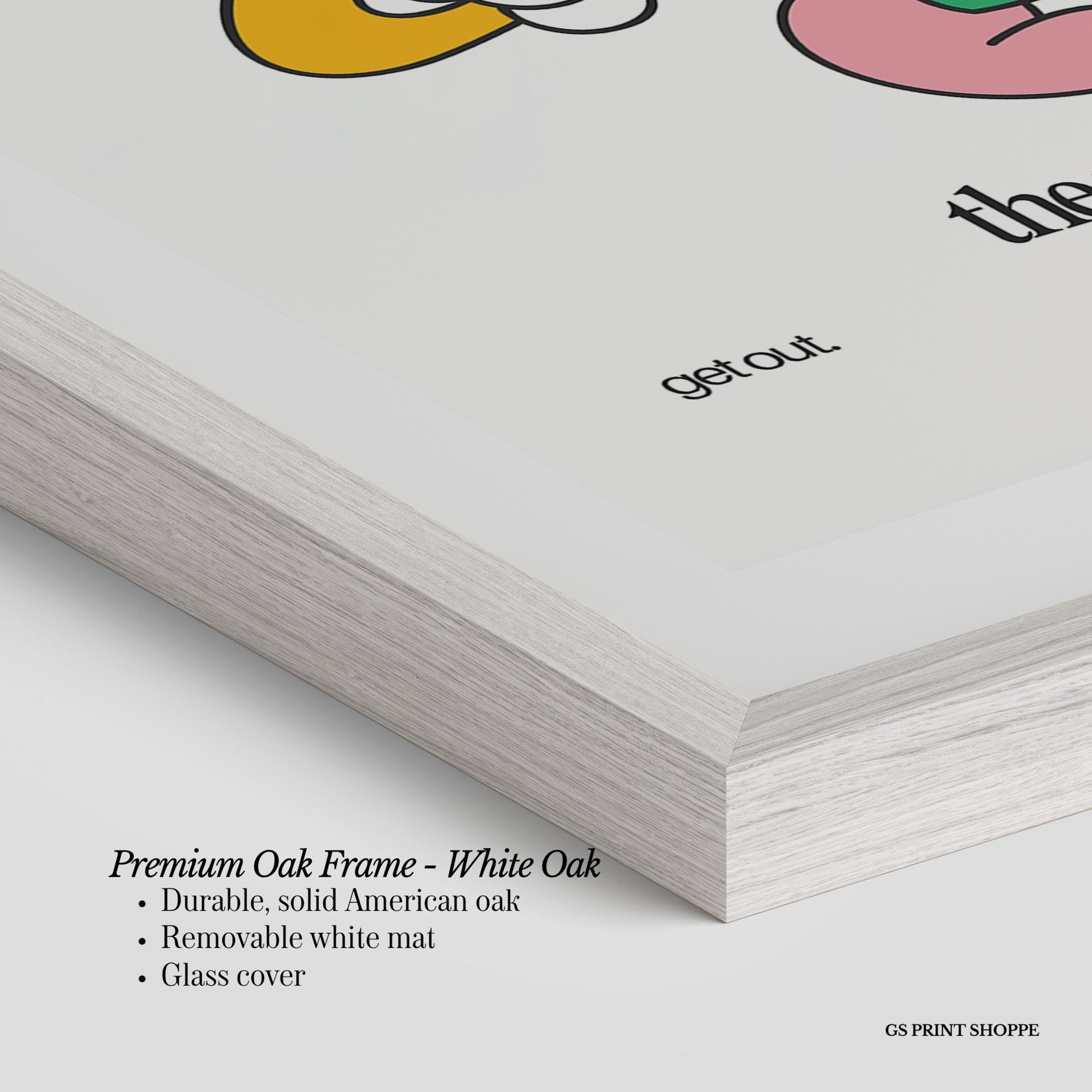 Premium Oak Frame: Our premium oak frame is crafted from solid American oak, offering a warm, natural feel with a high-end finish. We complete this elevated offering with a bright white removable mat and real glass for a versatile and polished look.