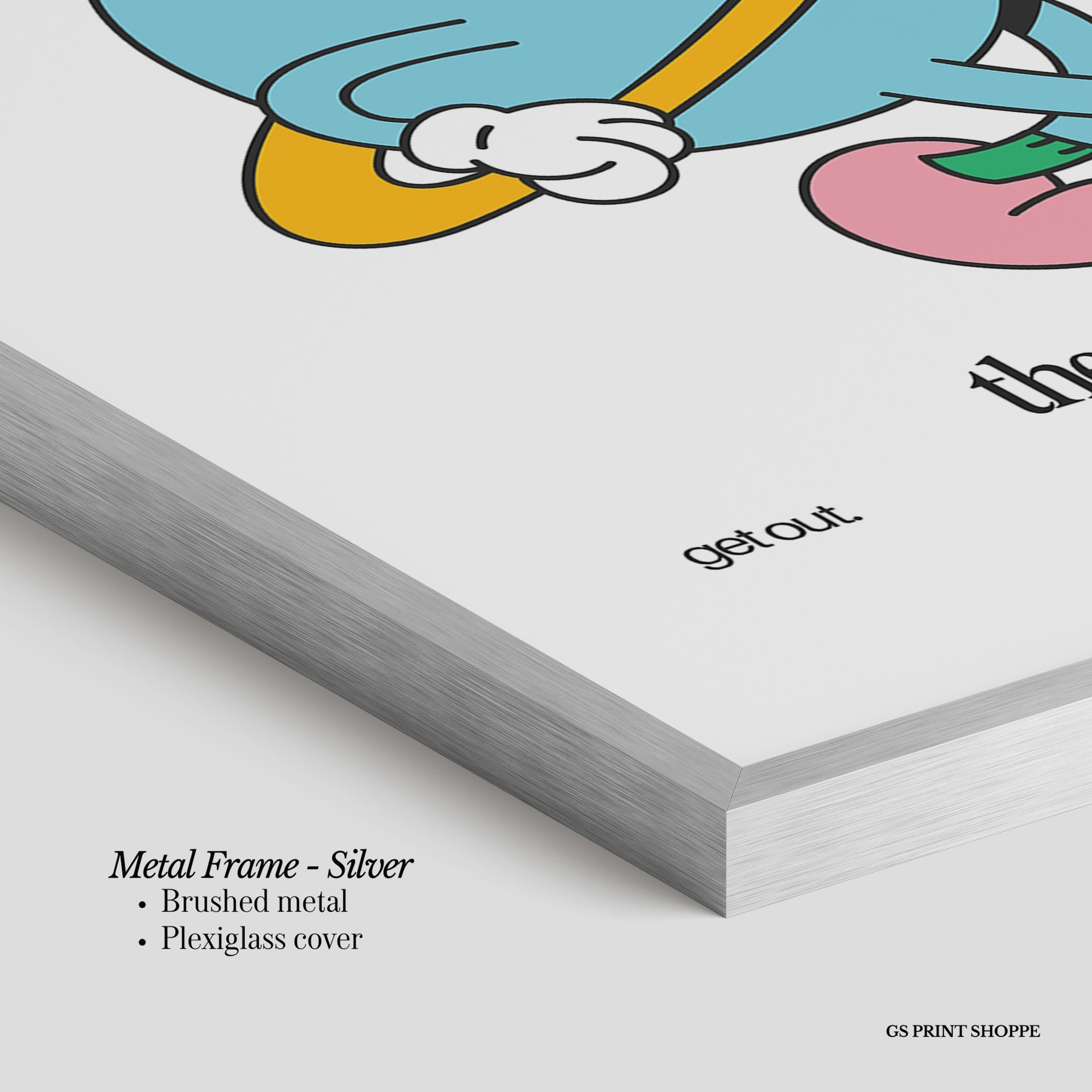 Metal Frame: Sleek and modern, our metal frame is crafted with brushed metal for a polished finish. It comes with durable plexiglass and sturdy metal hangers for horizontal or vertical display.