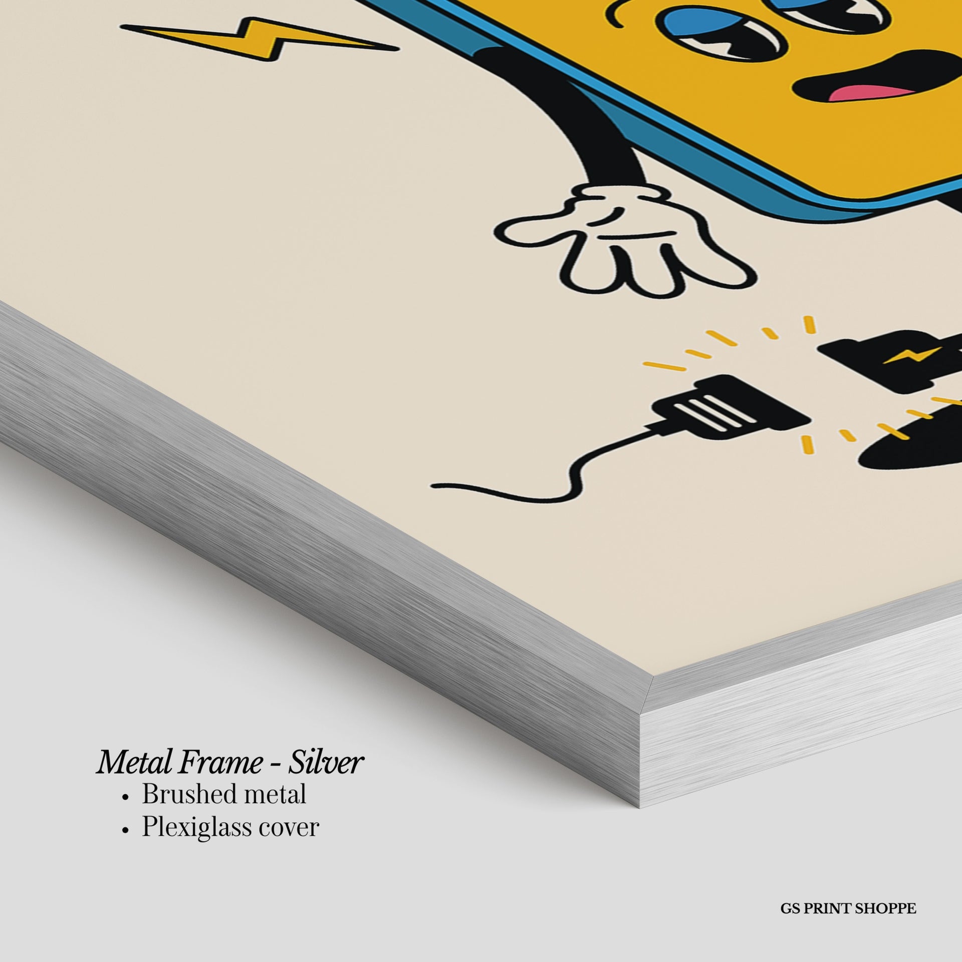 Metal Frame: Sleek and modern, our metal frame is crafted with brushed metal for a polished finish. It comes with durable plexiglass and sturdy metal hangers for horizontal or vertical display.