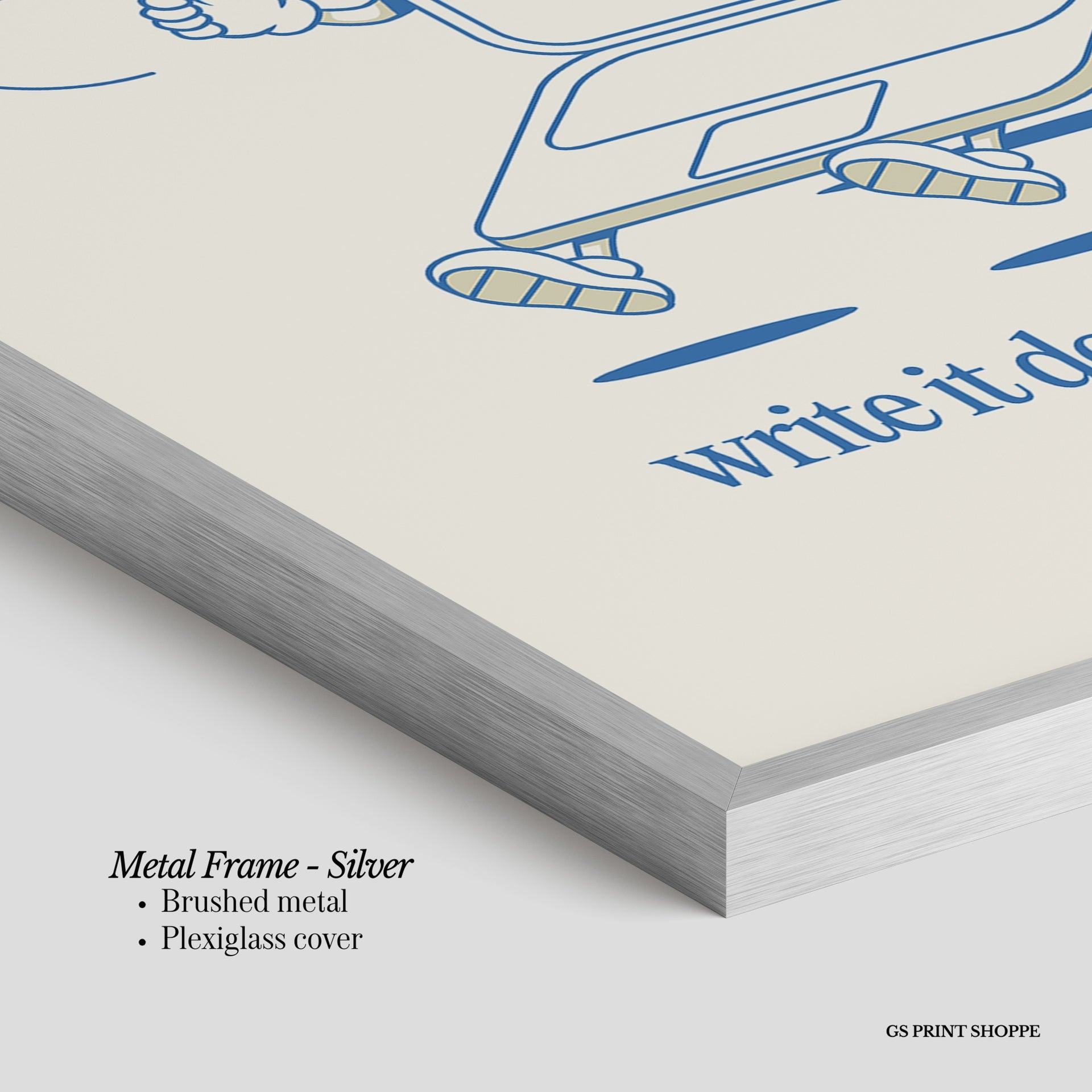 Metal Frame: Sleek and modern, our metal frame is crafted with brushed metal for a polished finish. It comes with durable plexiglass and sturdy metal hangers for horizontal or vertical display.