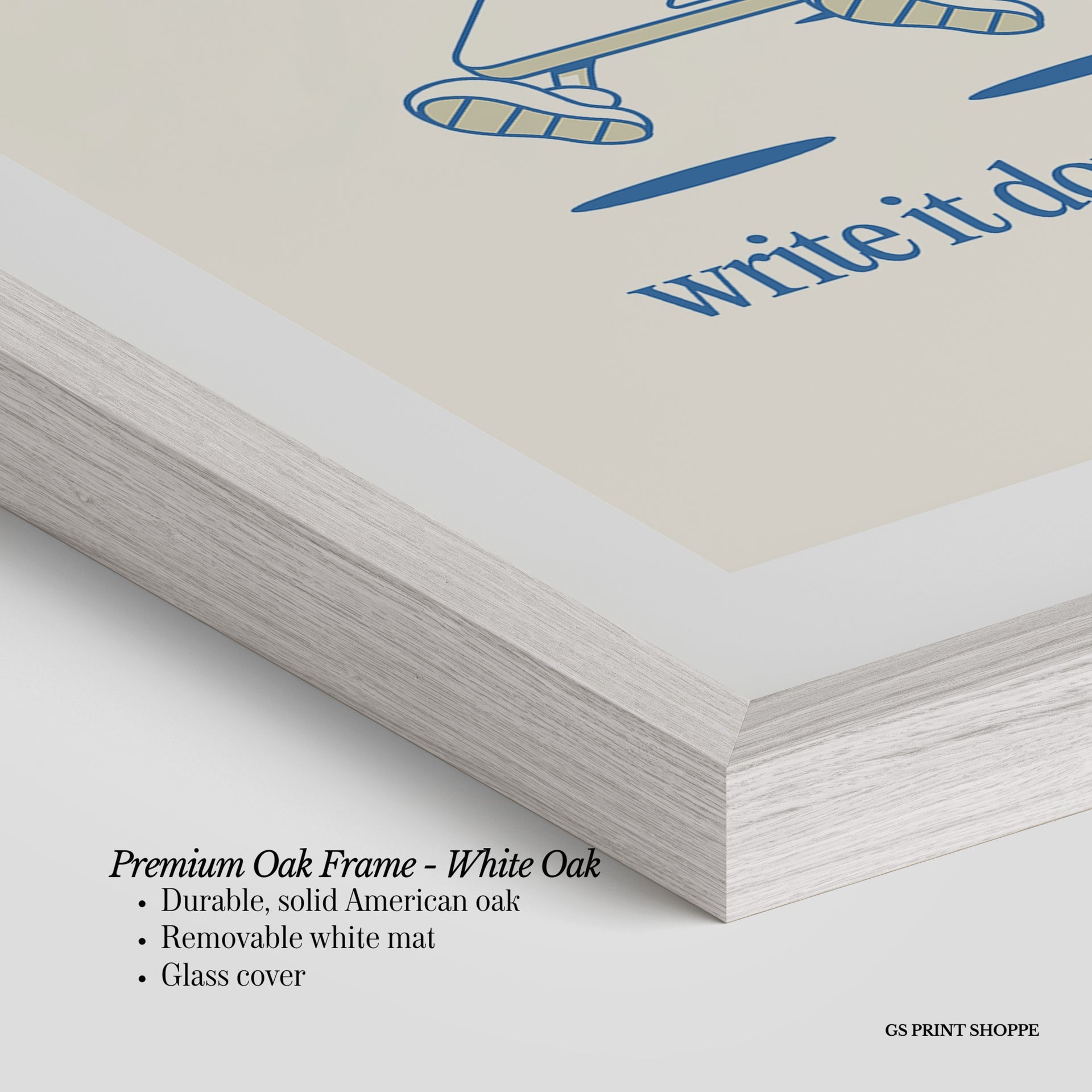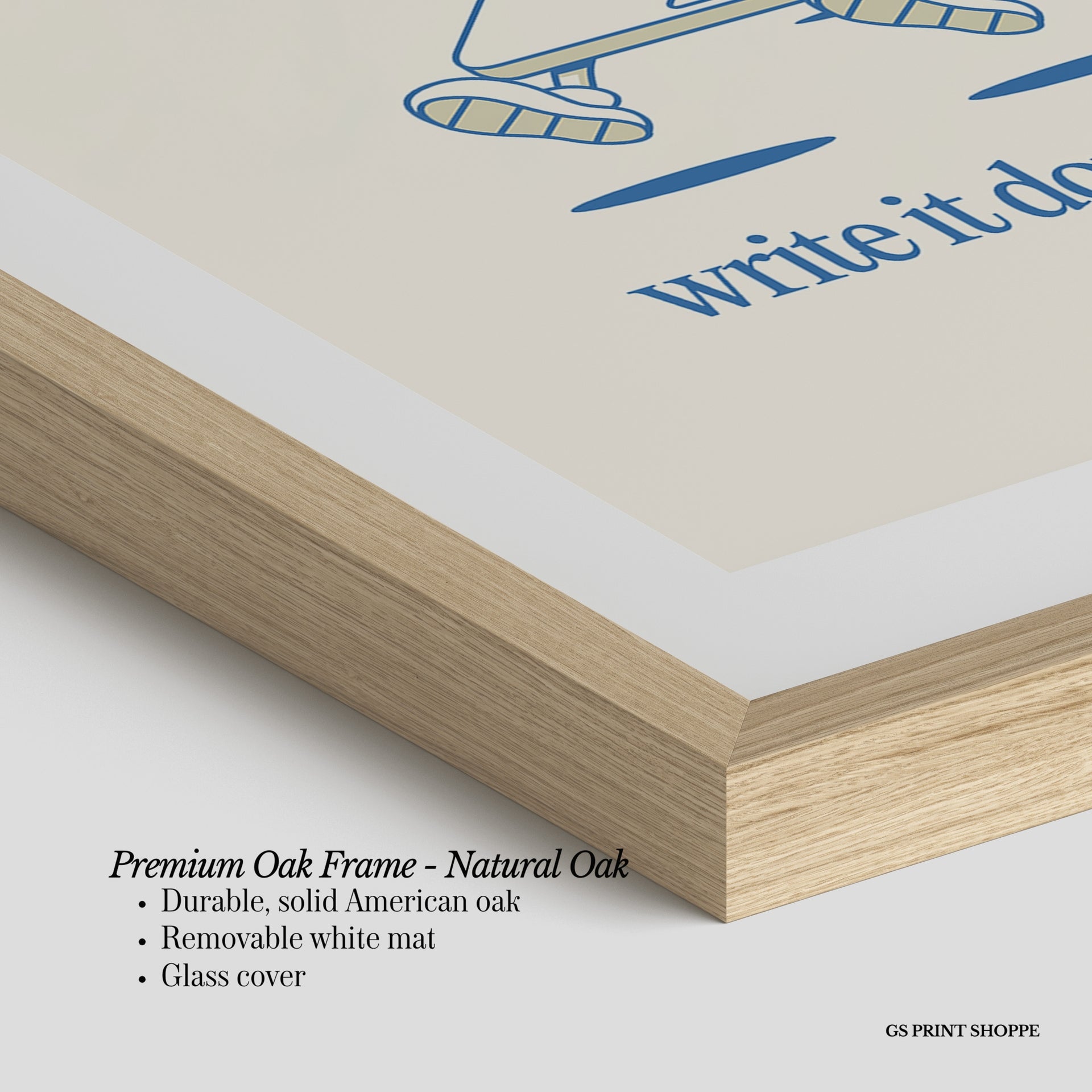 Premium Oak Frame: Our premium oak frame is crafted from solid American oak, offering a warm, natural feel with a high-end finish. We complete this elevated offering with a bright white removable mat and real glass for a versatile and polished look.
