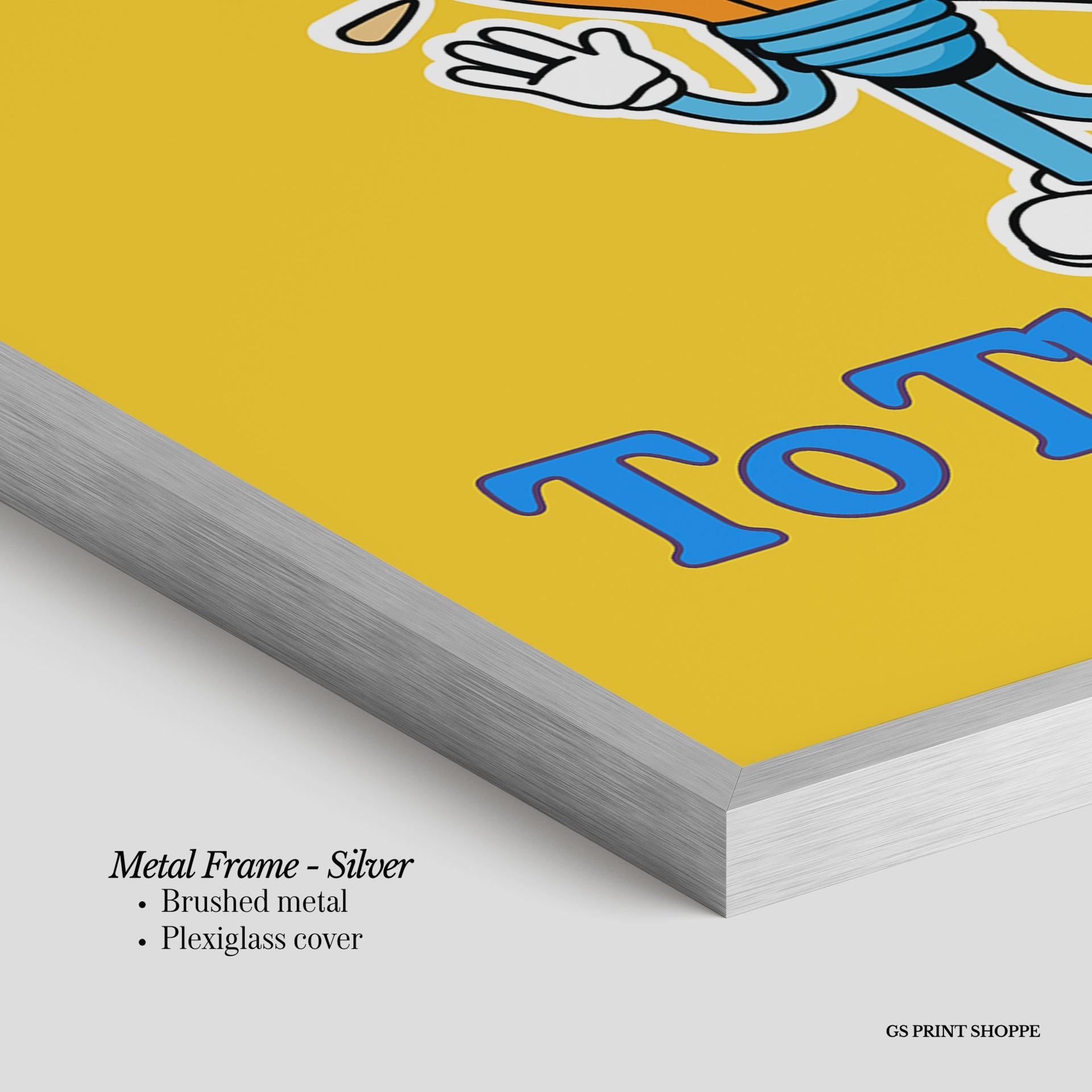 Metal Frame: Sleek and modern, our metal frame is crafted with brushed metal for a polished finish. It comes with durable plexiglass and sturdy metal hangers for horizontal or vertical display.