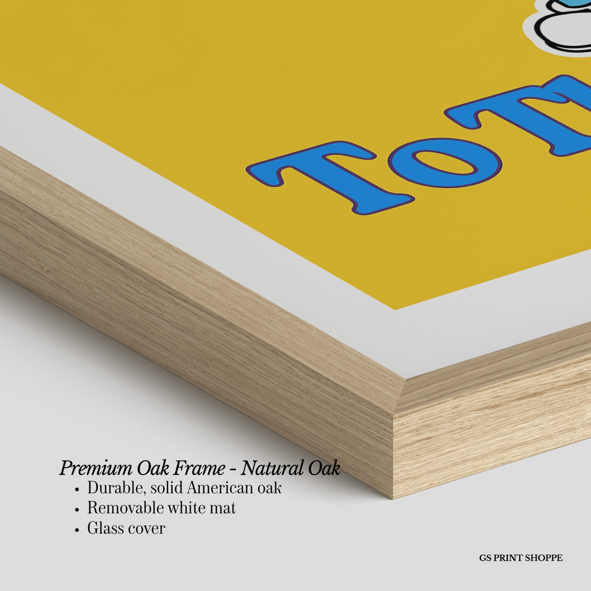 Premium Oak Frame: Our premium oak frame is crafted from solid American oak, offering a warm, natural feel with a high-end finish. We complete this elevated offering with a bright white removable mat and real glass for a versatile and polished look.