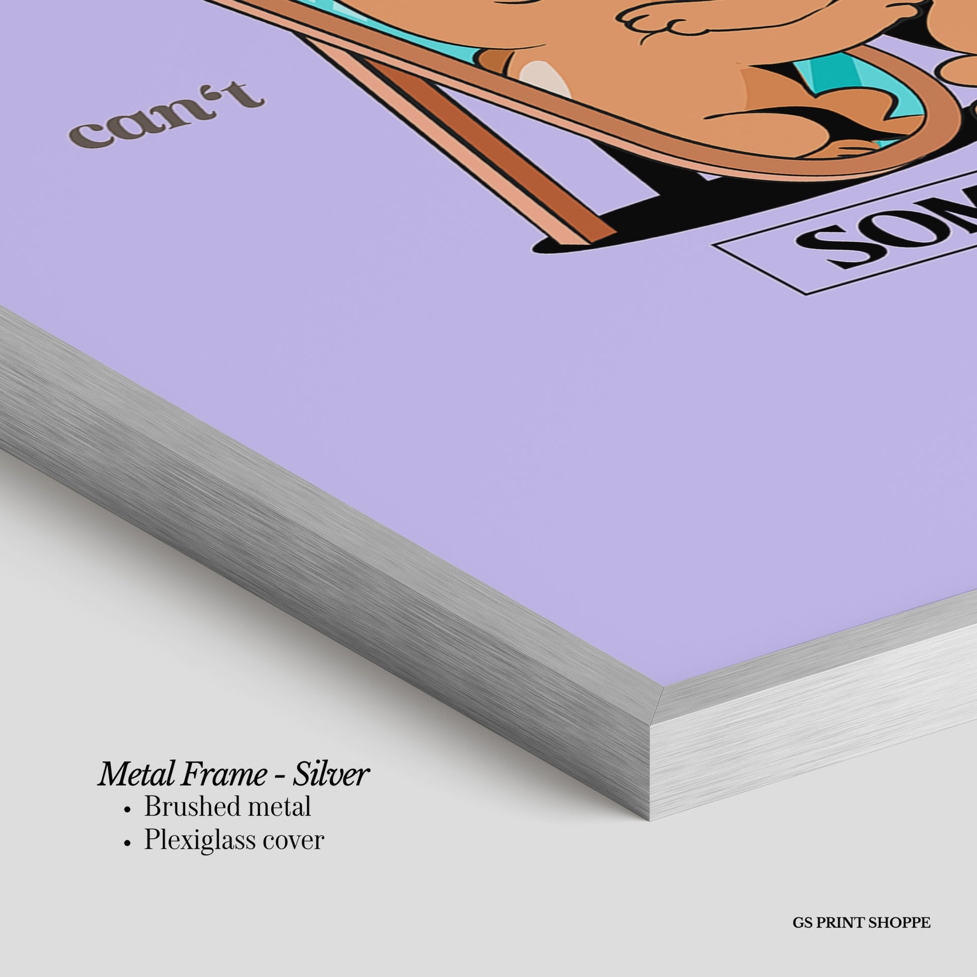 Metal Frame: Sleek and modern, our metal frame is crafted with brushed metal for a polished finish. It comes with durable plexiglass and sturdy metal hangers for horizontal or vertical display.