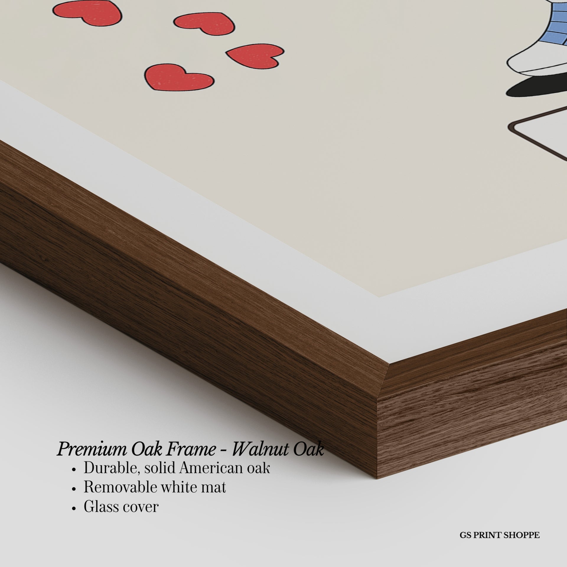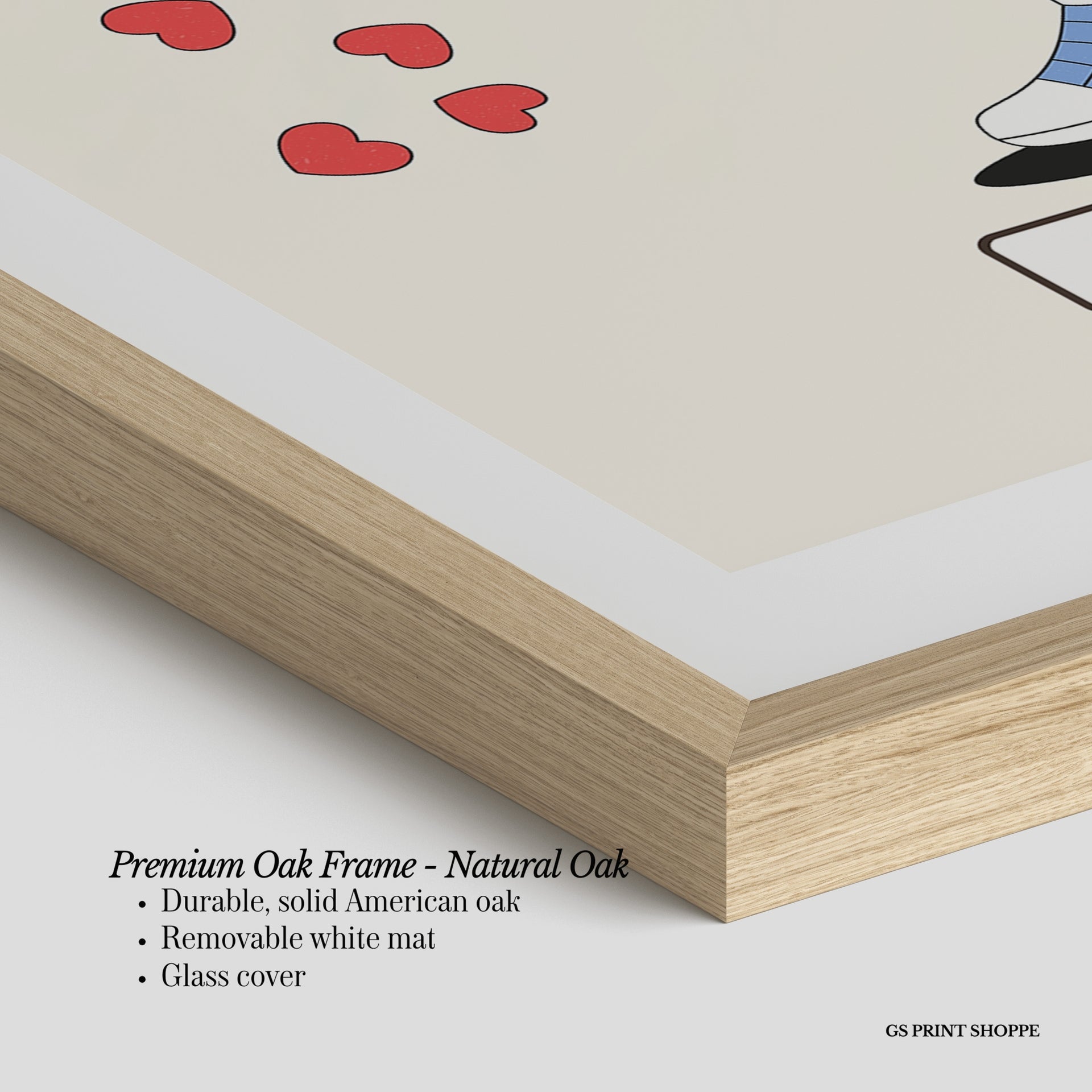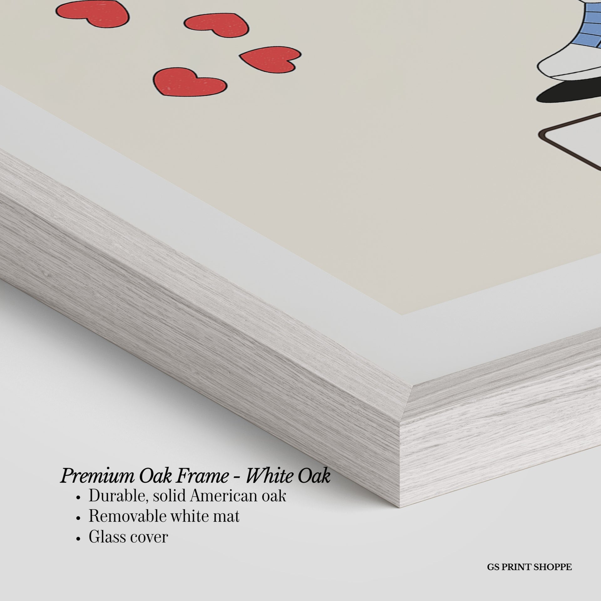 Premium Oak Frame: Our premium oak frame is crafted from solid American oak, offering a warm, natural feel with a high-end finish. We complete this elevated offering with a bright white removable mat and real glass for a versatile and polished look.