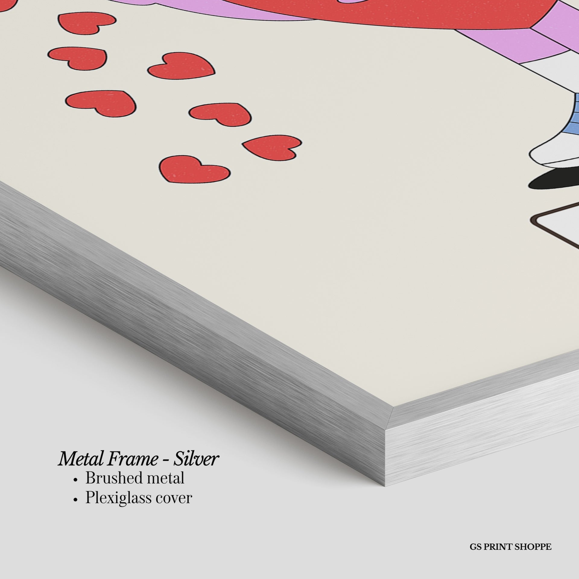 Metal Frame: Sleek and modern, our metal frame is crafted with brushed metal for a polished finish. It comes with durable plexiglass and sturdy metal hangers for horizontal or vertical display.