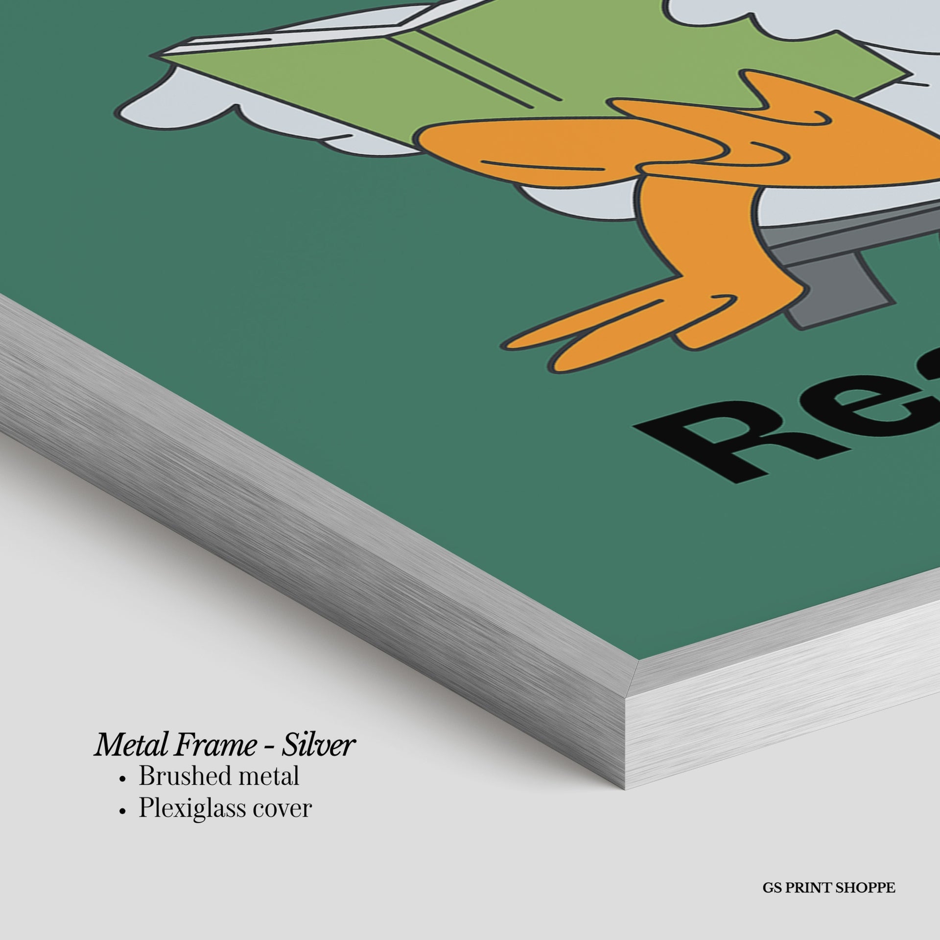 Metal Frame: Sleek and modern, our metal frame is crafted with brushed metal for a polished finish. It comes with durable plexiglass and sturdy metal hangers for horizontal or vertical display.