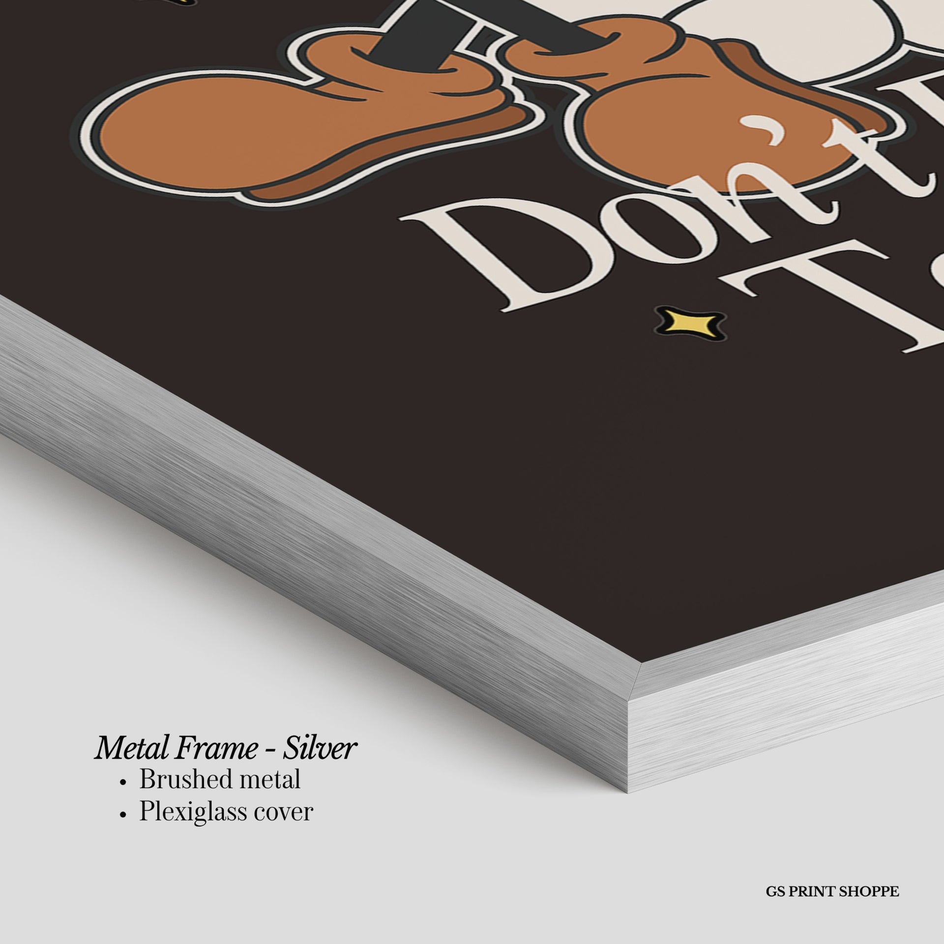 Metal Frame: Sleek and modern, our metal frame is crafted with brushed metal for a polished finish. It comes with durable plexiglass and sturdy metal hangers for horizontal or vertical display.