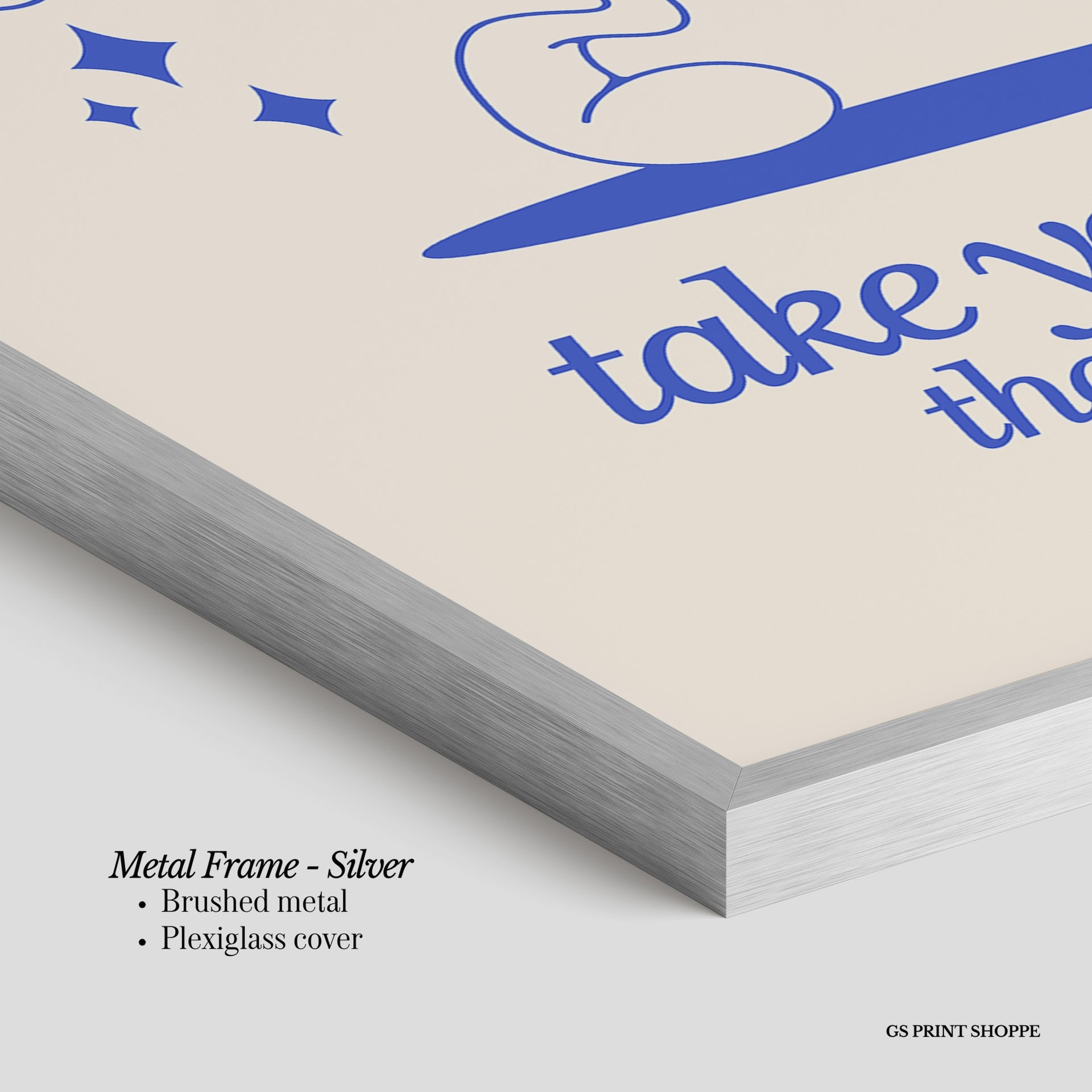 Metal Frame: Sleek and modern, our metal frame is crafted with brushed metal for a polished finish. It comes with durable plexiglass and sturdy metal hangers for horizontal or vertical display.
