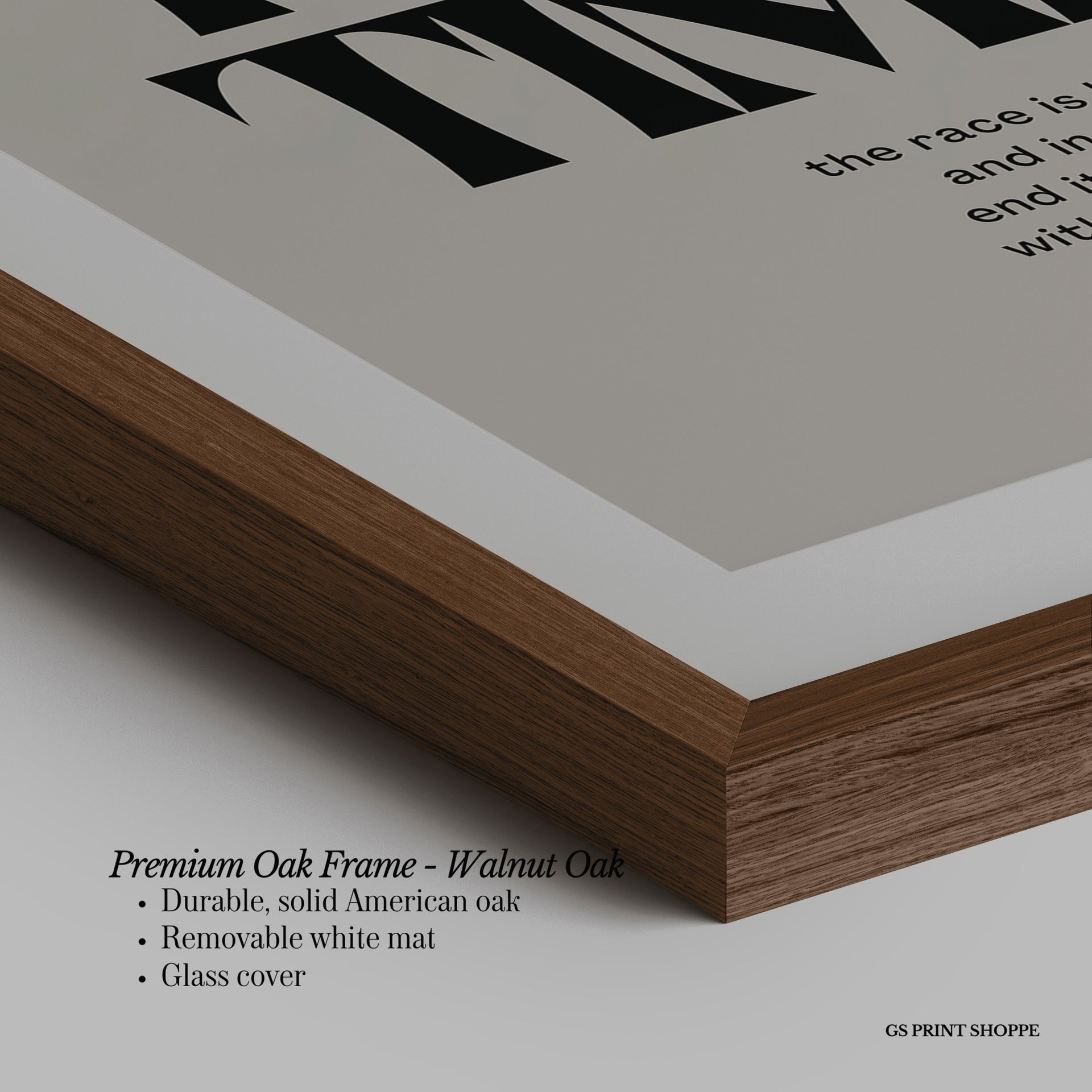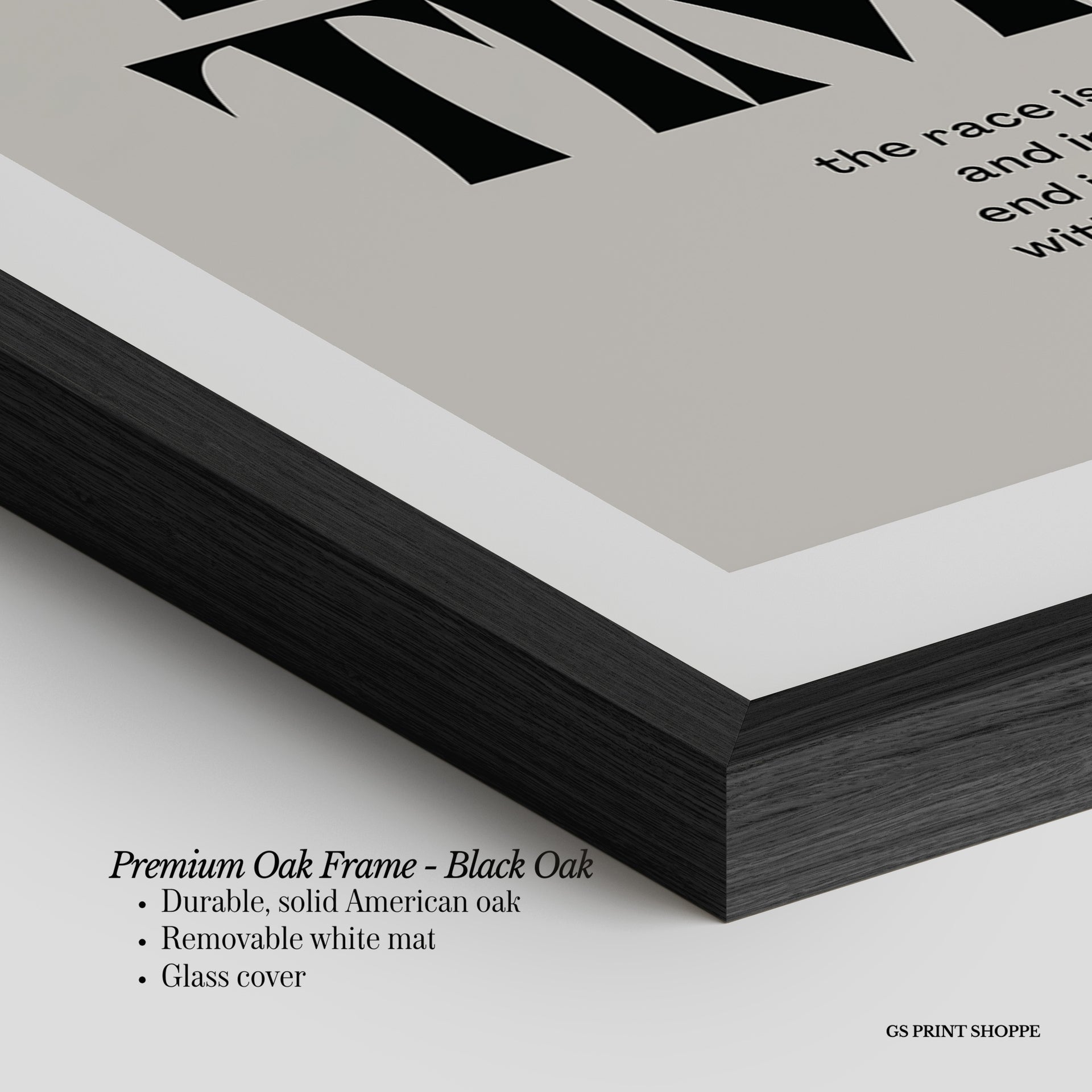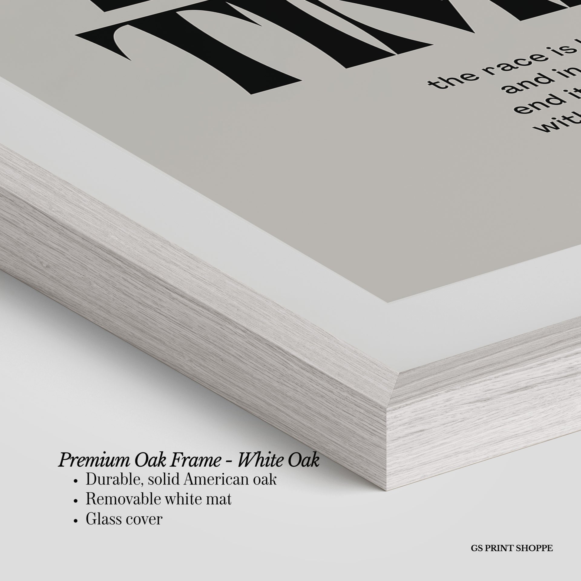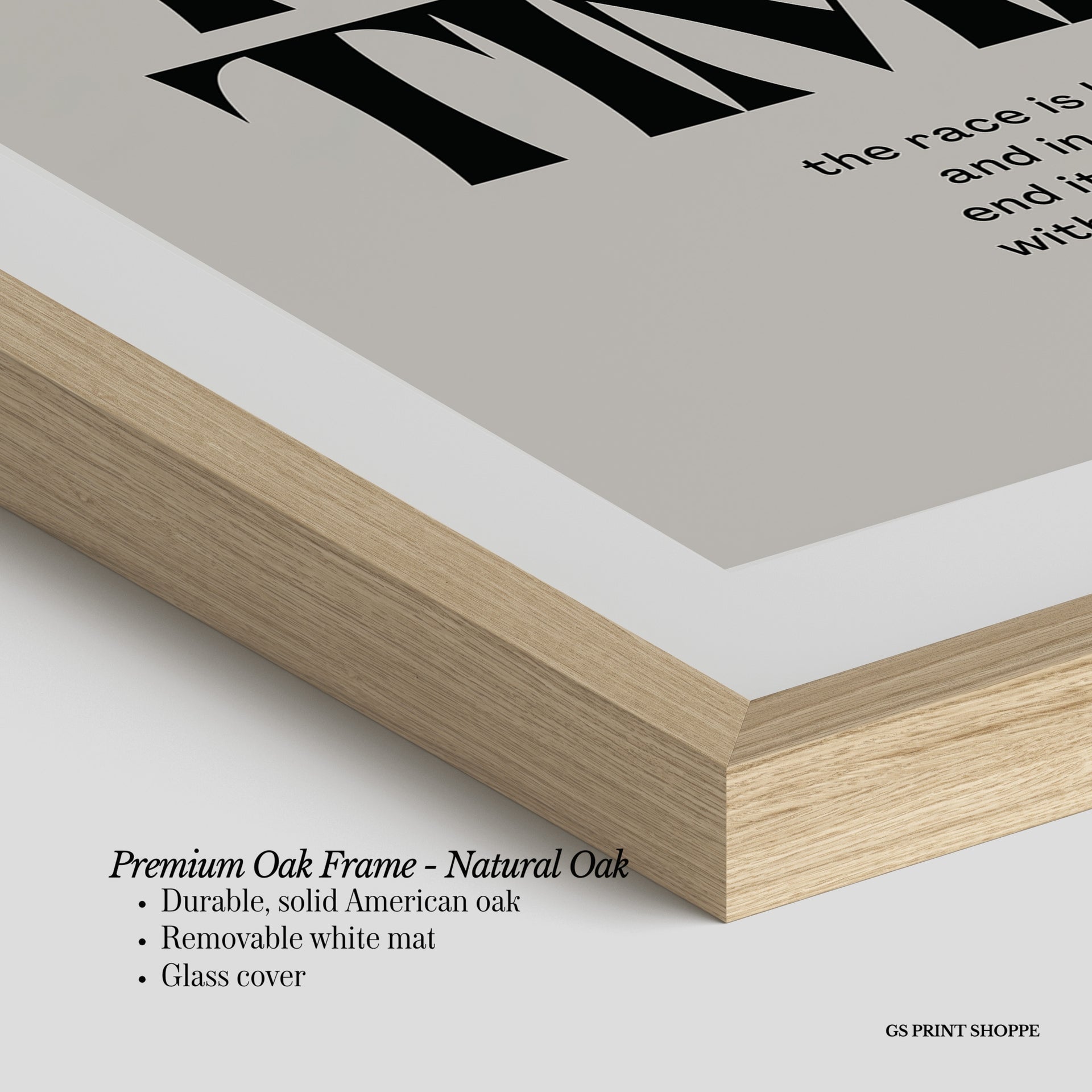 Premium Oak Frame: Our premium oak frame is crafted from solid American oak, offering a warm, natural feel with a high-end finish. We complete this elevated offering with a bright white removable mat and real glass for a versatile and polished look.