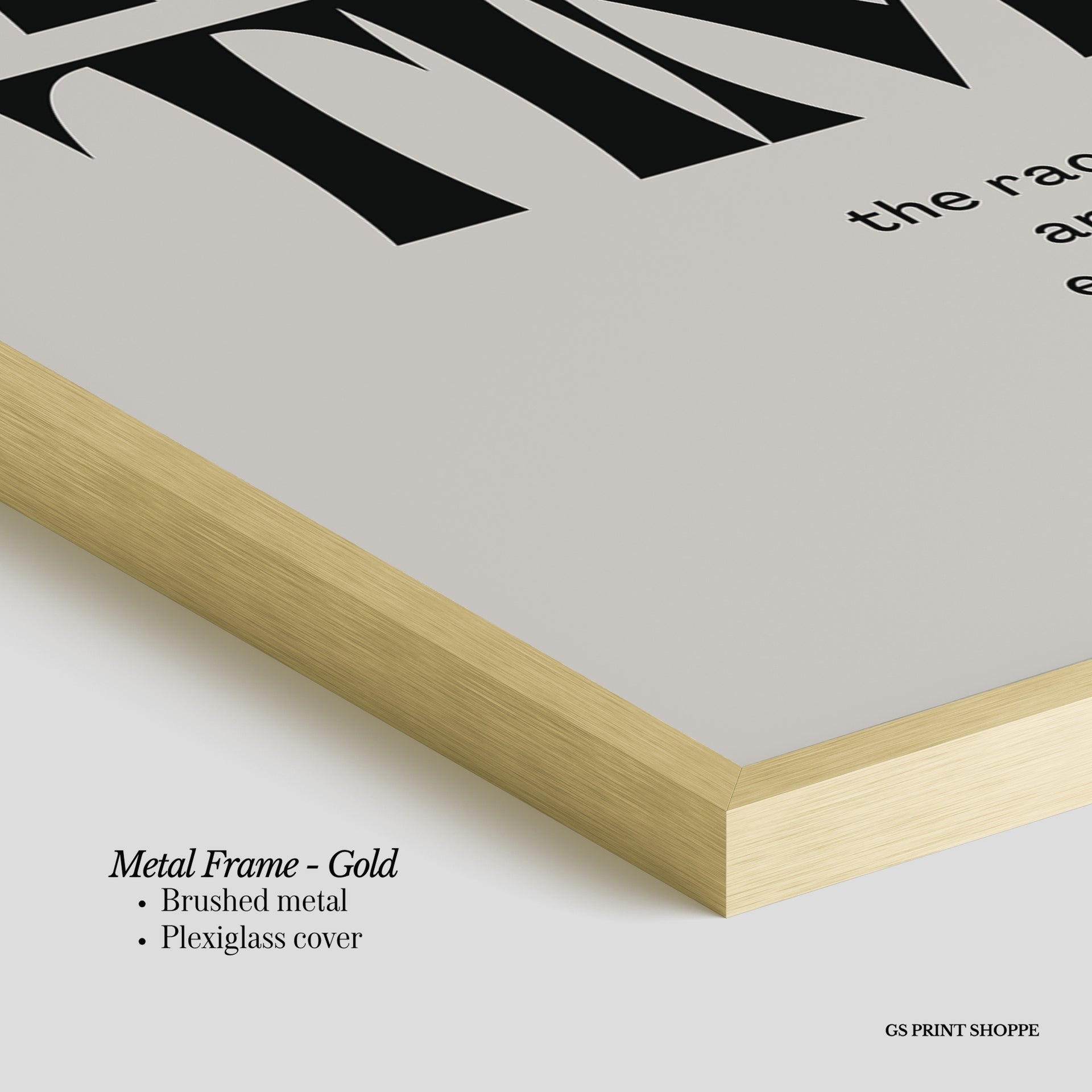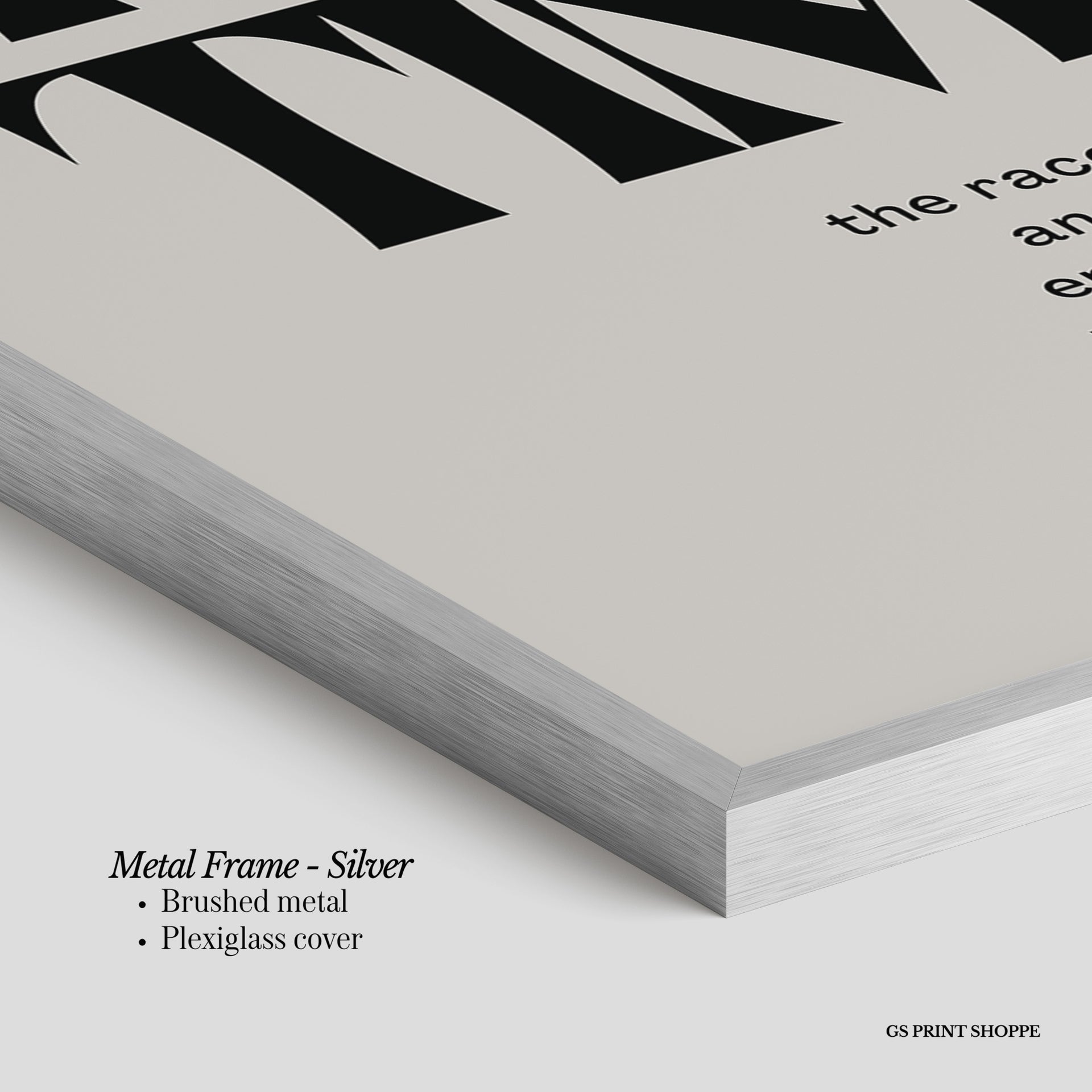 Metal Frame: Sleek and modern, our metal frame is crafted with brushed metal for a polished finish. It comes with durable plexiglass and sturdy metal hangers for horizontal or vertical display.