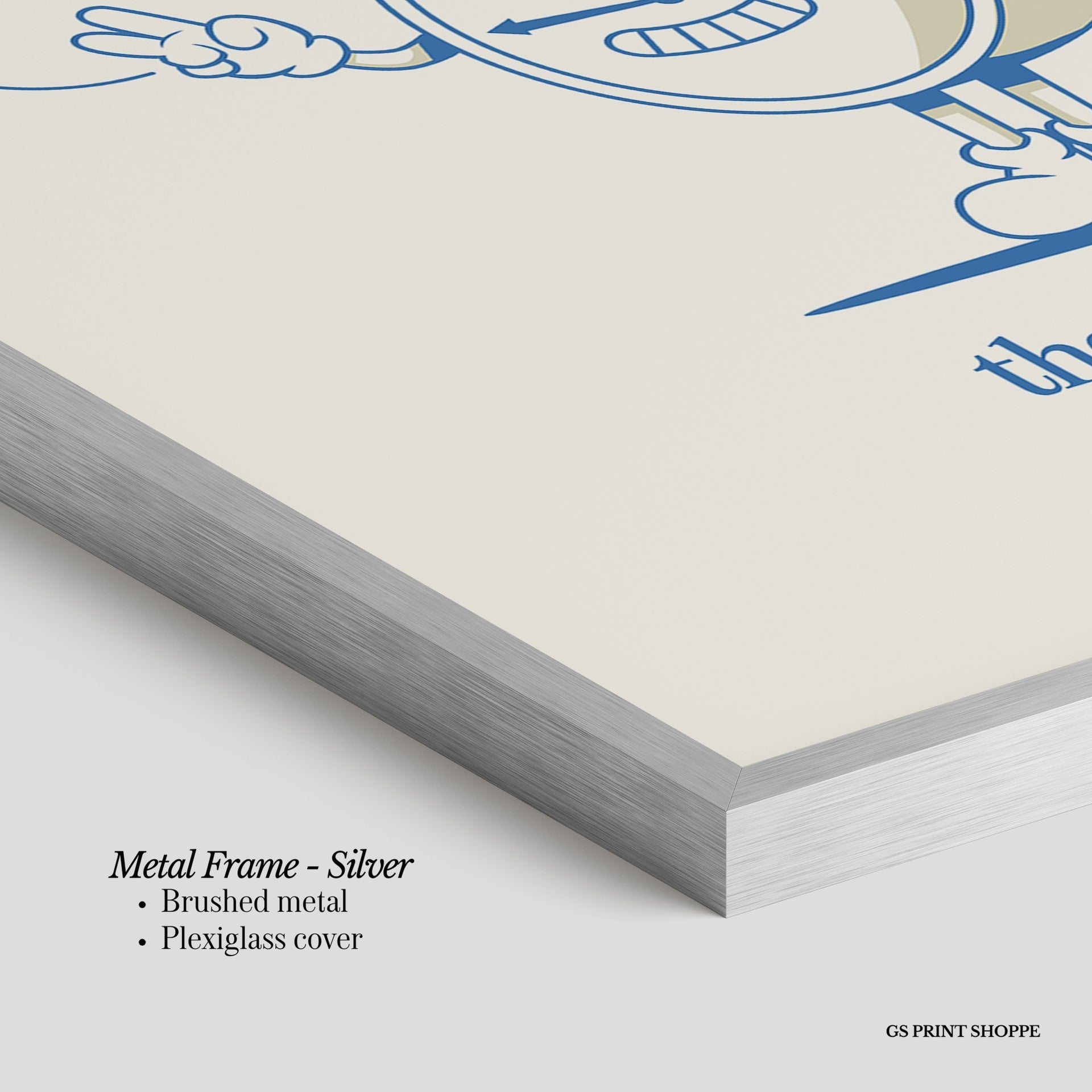 Metal Frame: Sleek and modern, our metal frame is crafted with brushed metal for a polished finish. It comes with durable plexiglass and sturdy metal hangers for horizontal or vertical display.