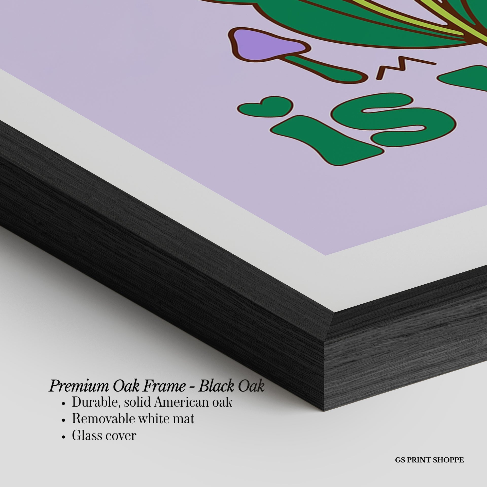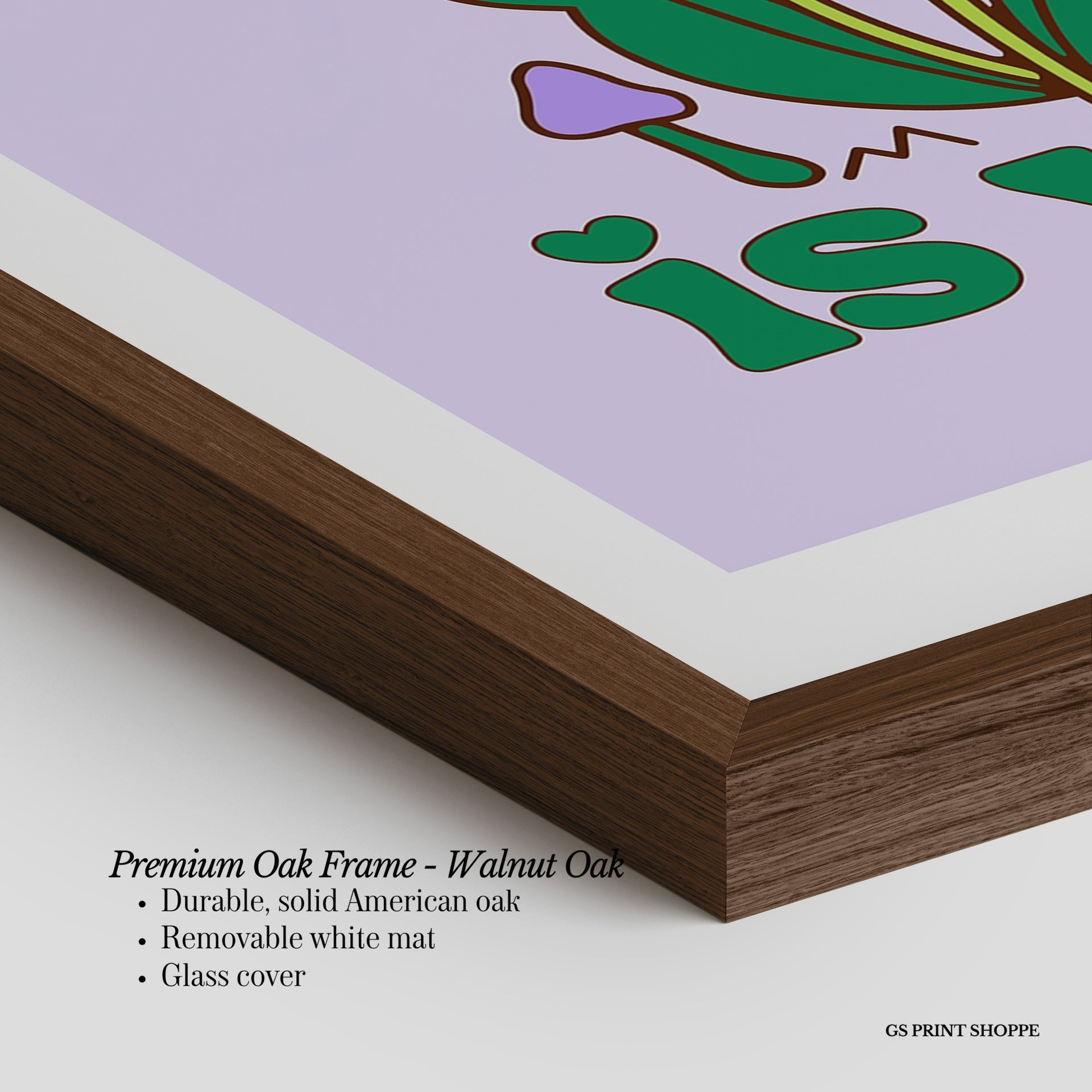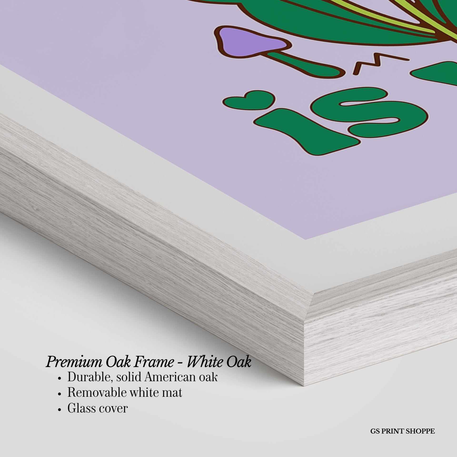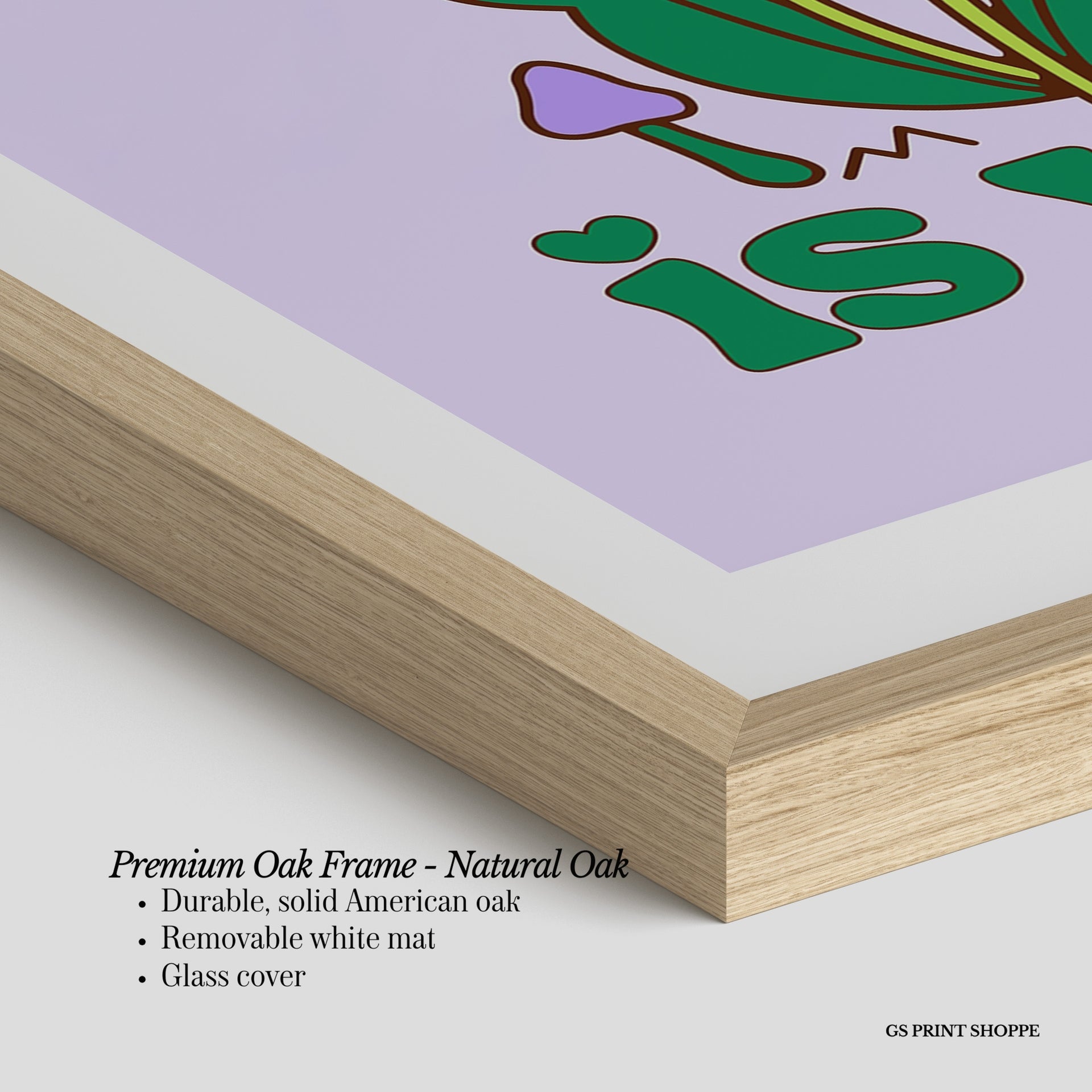 Premium Oak Frame: Our premium oak frame is crafted from solid American oak, offering a warm, natural feel with a high-end finish. We complete this elevated offering with a bright white removable mat and real glass for a versatile and polished look.