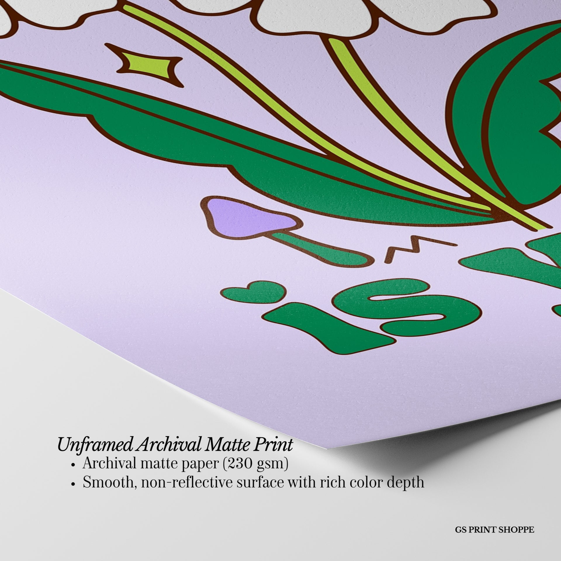 Unframed: This print is professionally printed on archival matte paper (230 gsm), a smooth, acid-free paper with a non-reflective finish. It will be carefully packaged to arrive safely at your door.