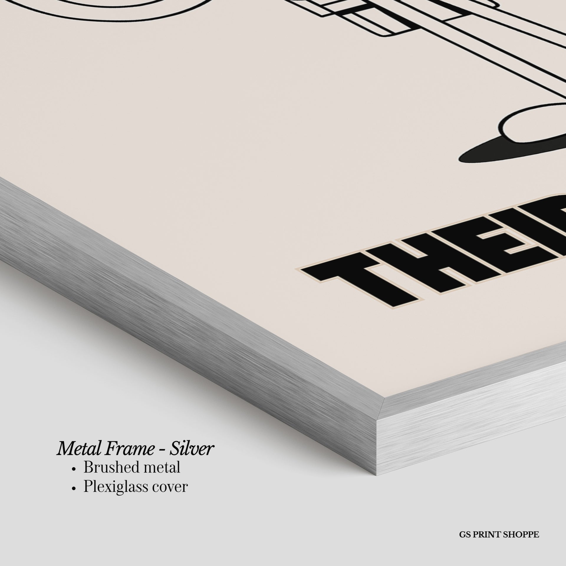 Metal Frame: Sleek and modern, our metal frame is crafted with brushed metal for a polished finish. It comes with durable plexiglass and sturdy metal hangers for horizontal or vertical display.