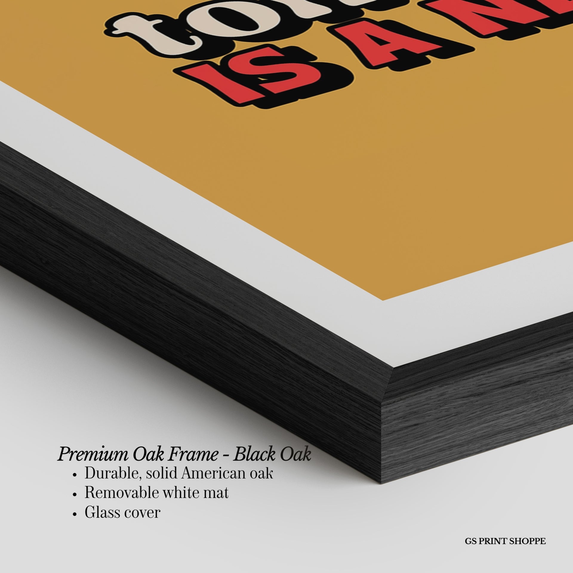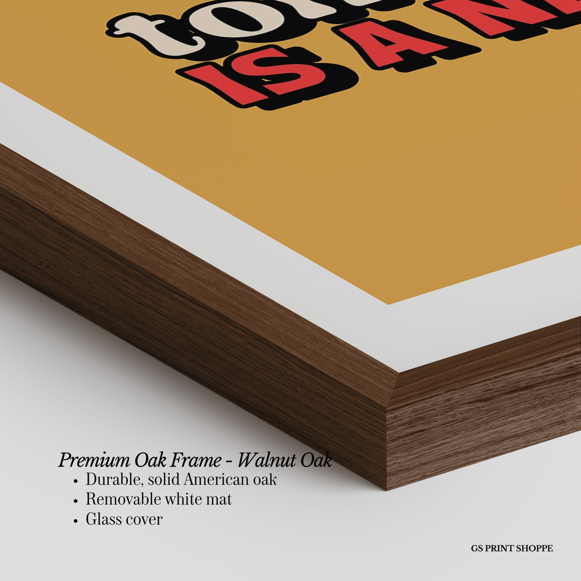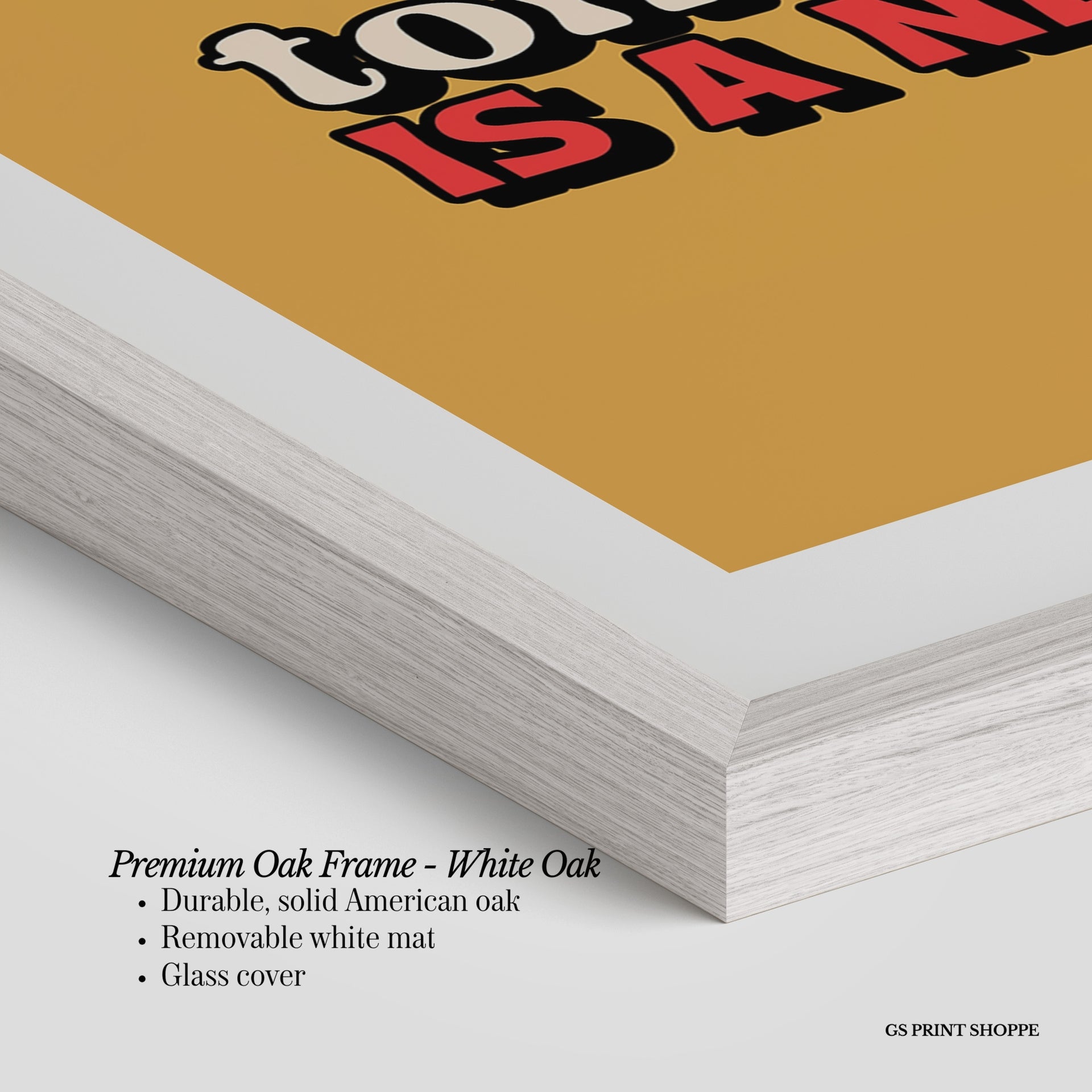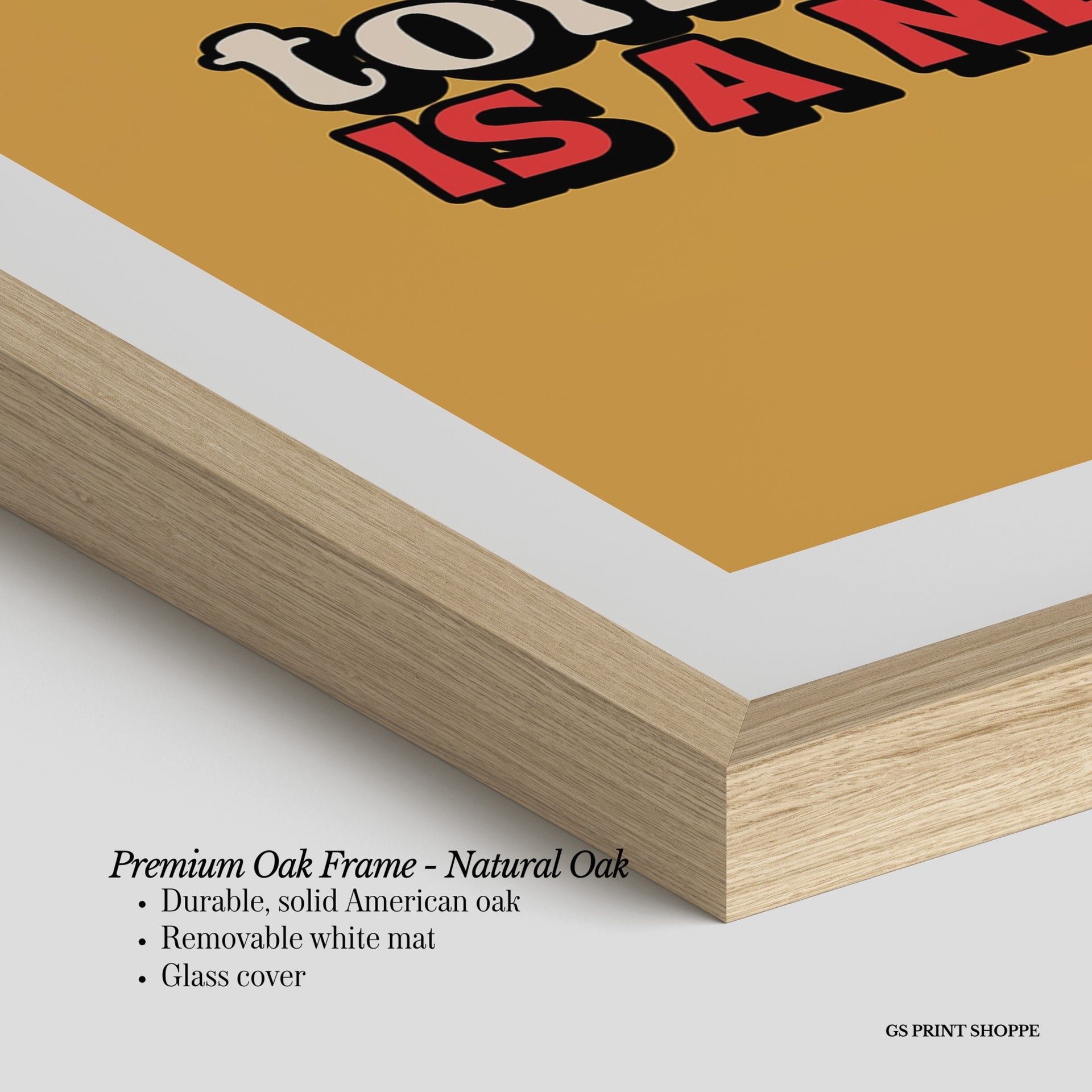 Premium Oak Frame: Our premium oak frame is crafted from solid American oak, offering a warm, natural feel with a high-end finish. We complete this elevated offering with a bright white removable mat and real glass for a versatile and polished look.