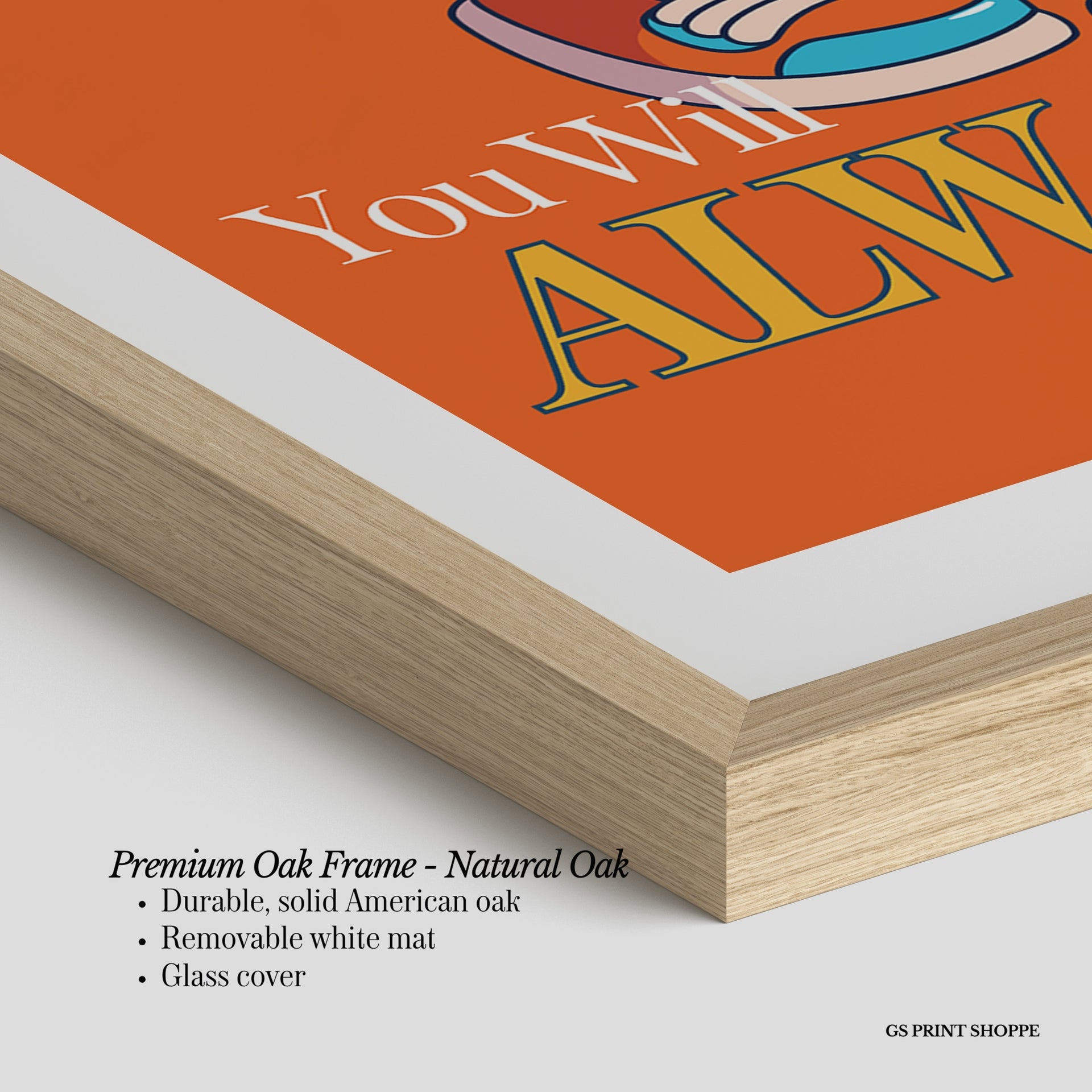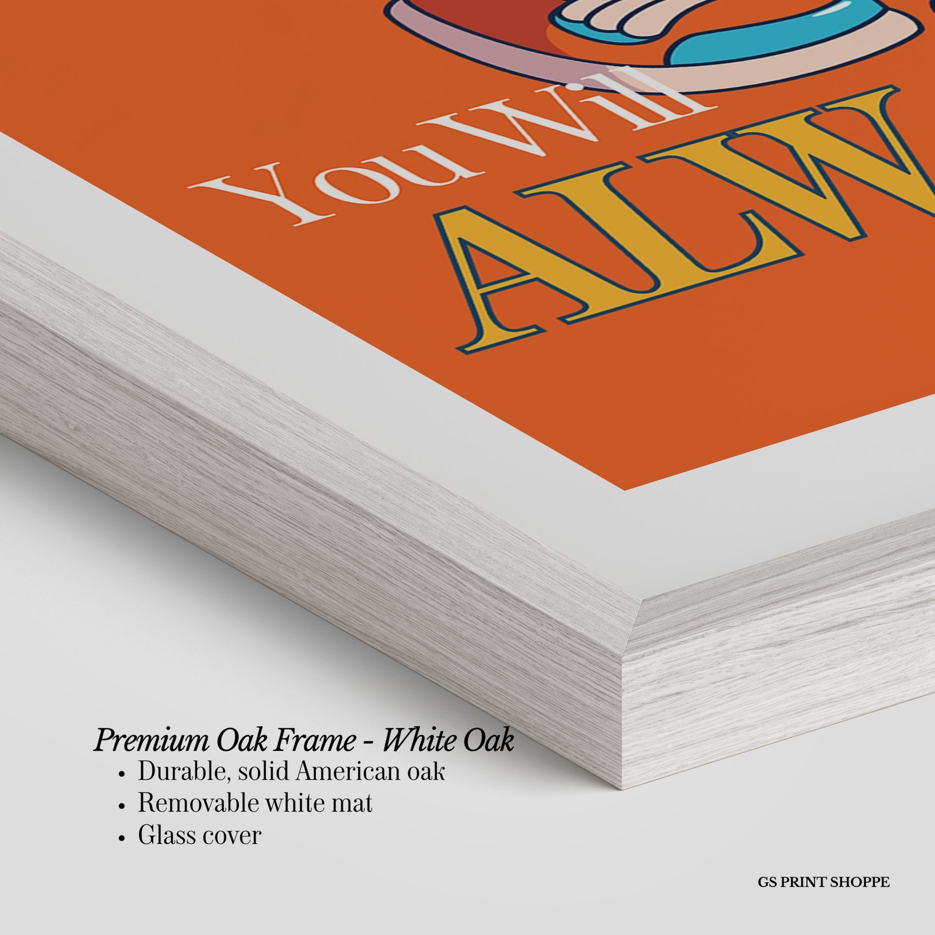 Premium Oak Frame: Our premium oak frame is crafted from solid American oak, offering a warm, natural feel with a high-end finish. We complete this elevated offering with a bright white removable mat and real glass for a versatile and polished look.