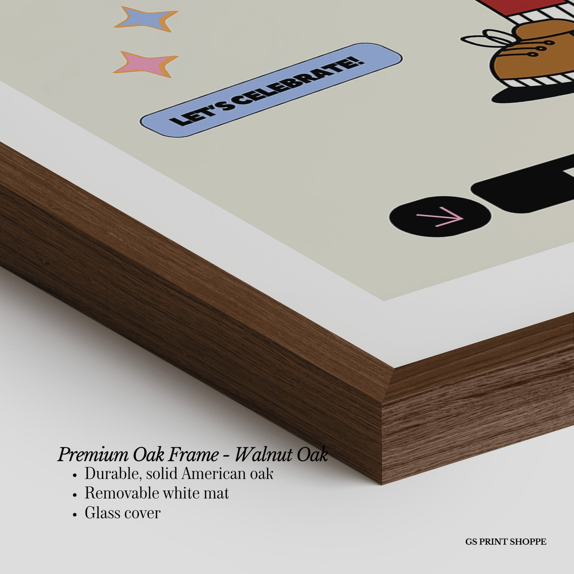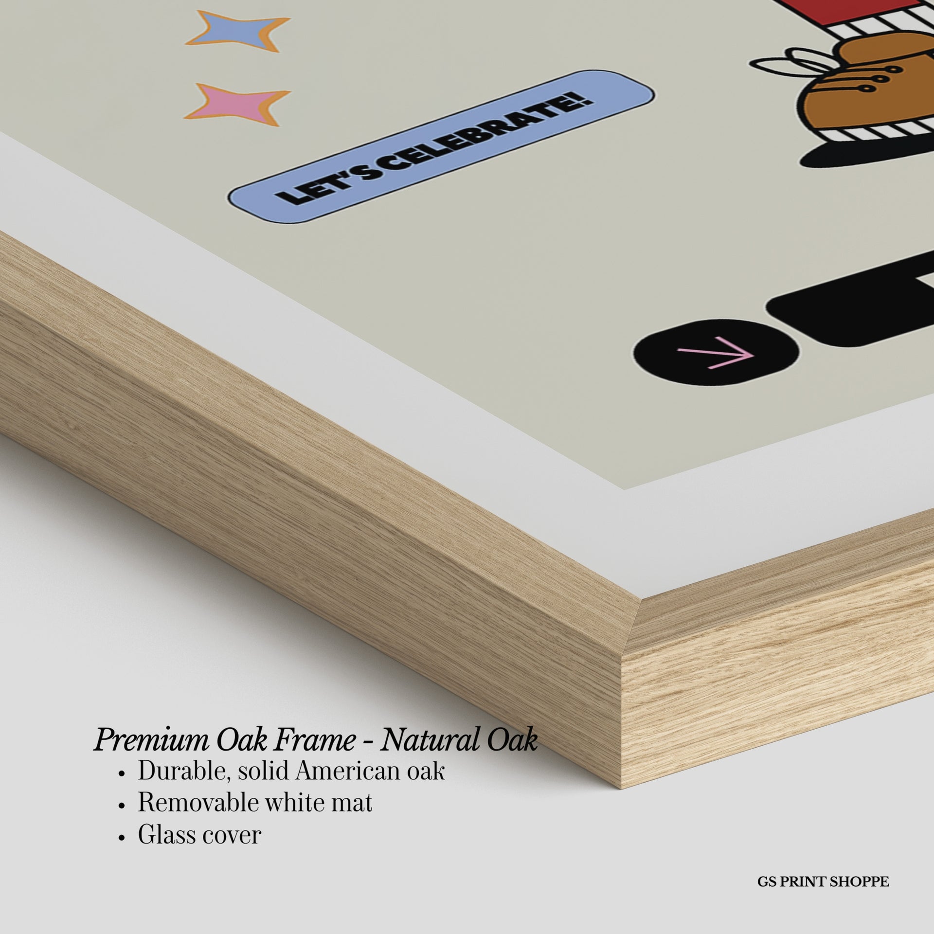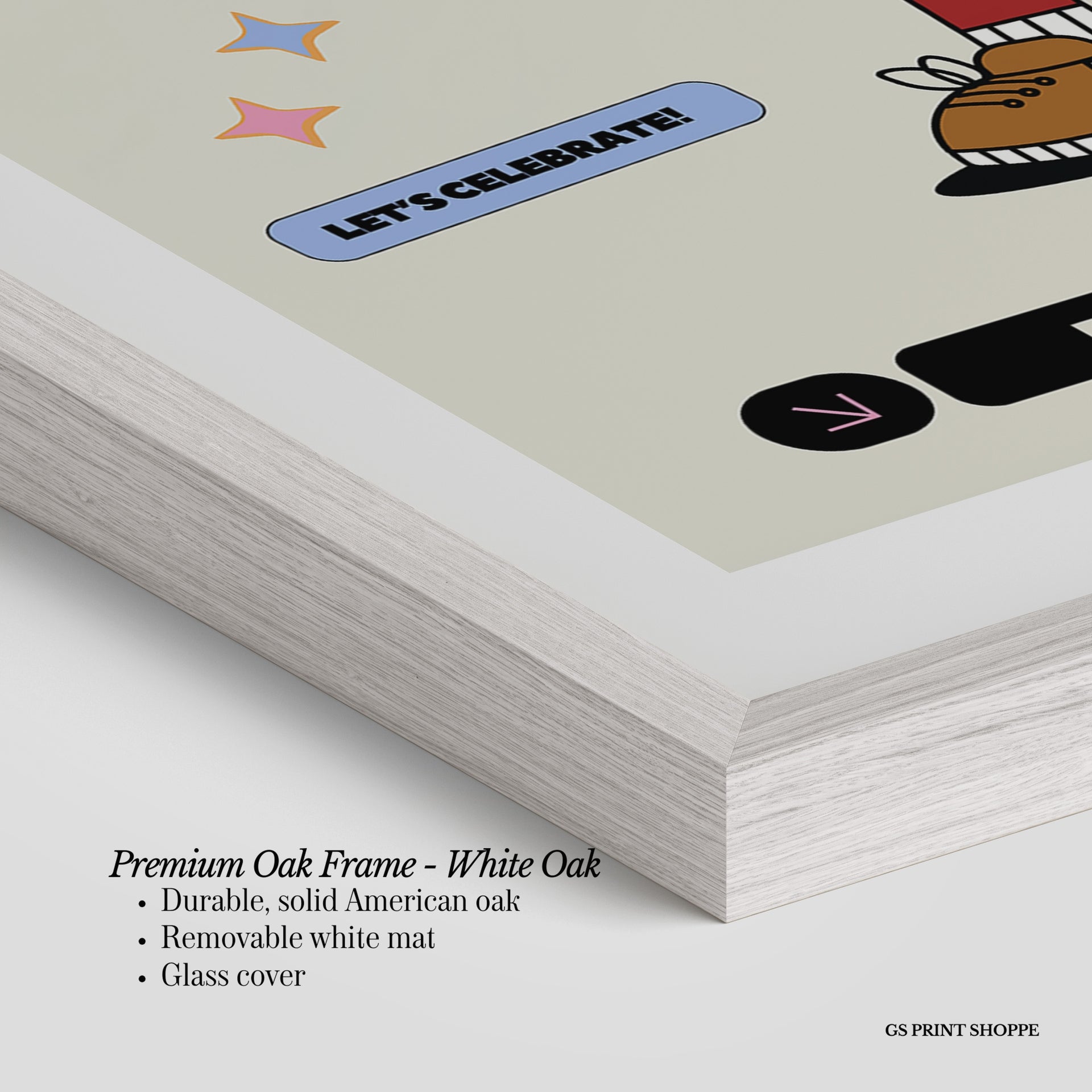 Premium Oak Frame: Our premium oak frame is crafted from solid American oak, offering a warm, natural feel with a high-end finish. We complete this elevated offering with a bright white removable mat and real glass for a versatile and polished look.