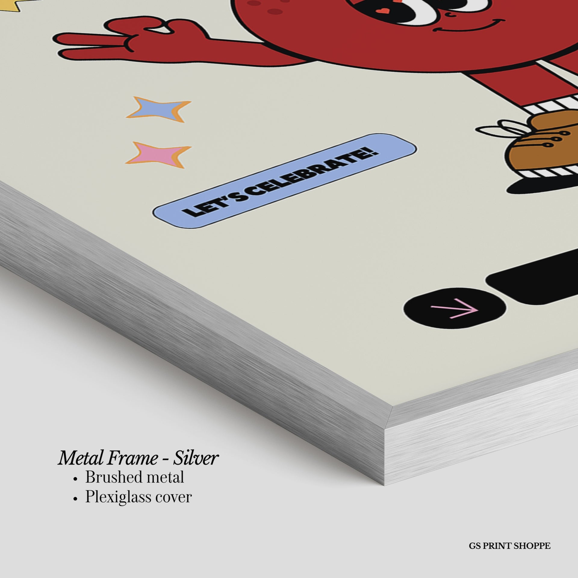 Metal Frame: Sleek and modern, our metal frame is crafted with brushed metal for a polished finish. It comes with durable plexiglass and sturdy metal hangers for horizontal or vertical display.