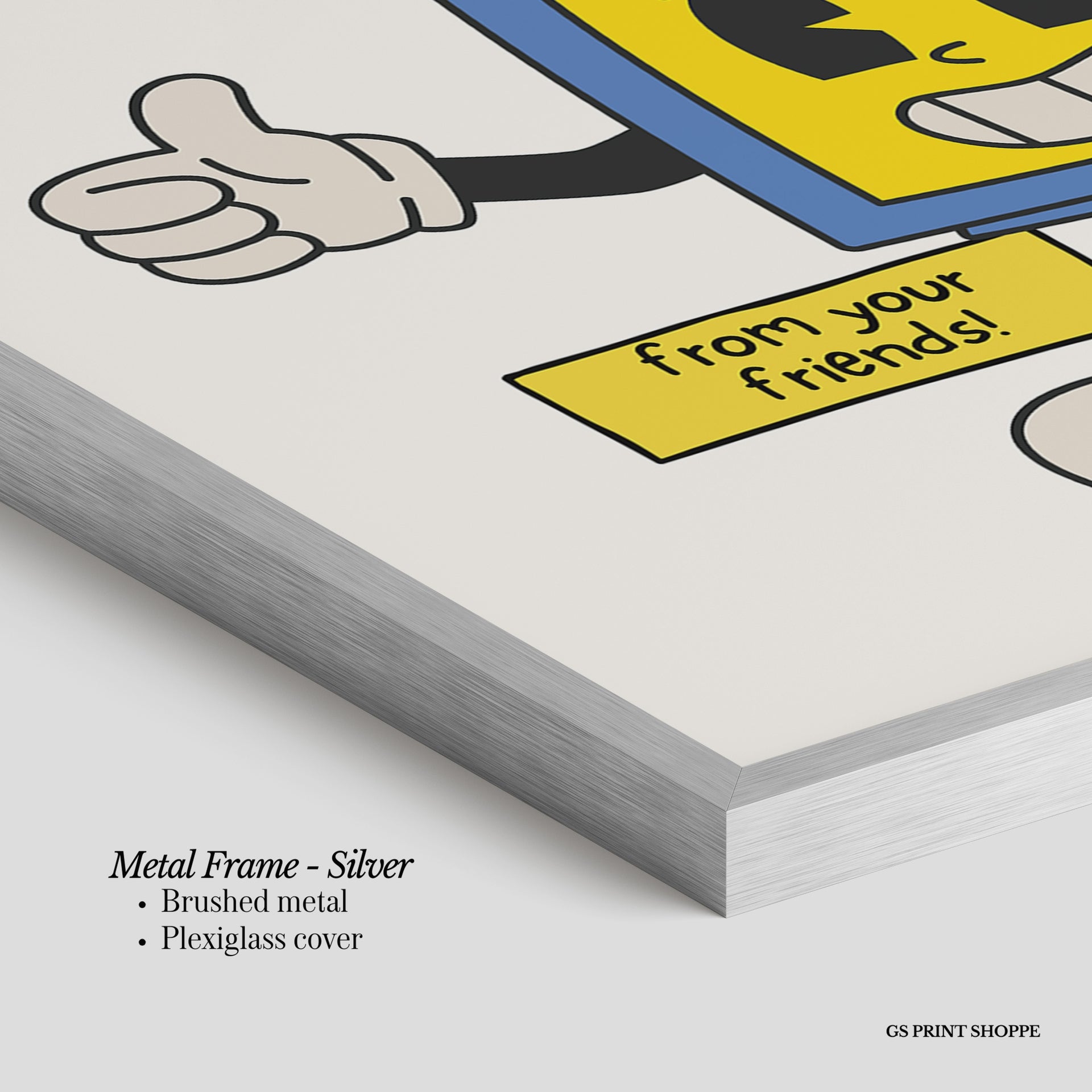Metal Frame: Sleek and modern, our metal frame is crafted with brushed metal for a polished finish. It comes with durable plexiglass and sturdy metal hangers for horizontal or vertical display.