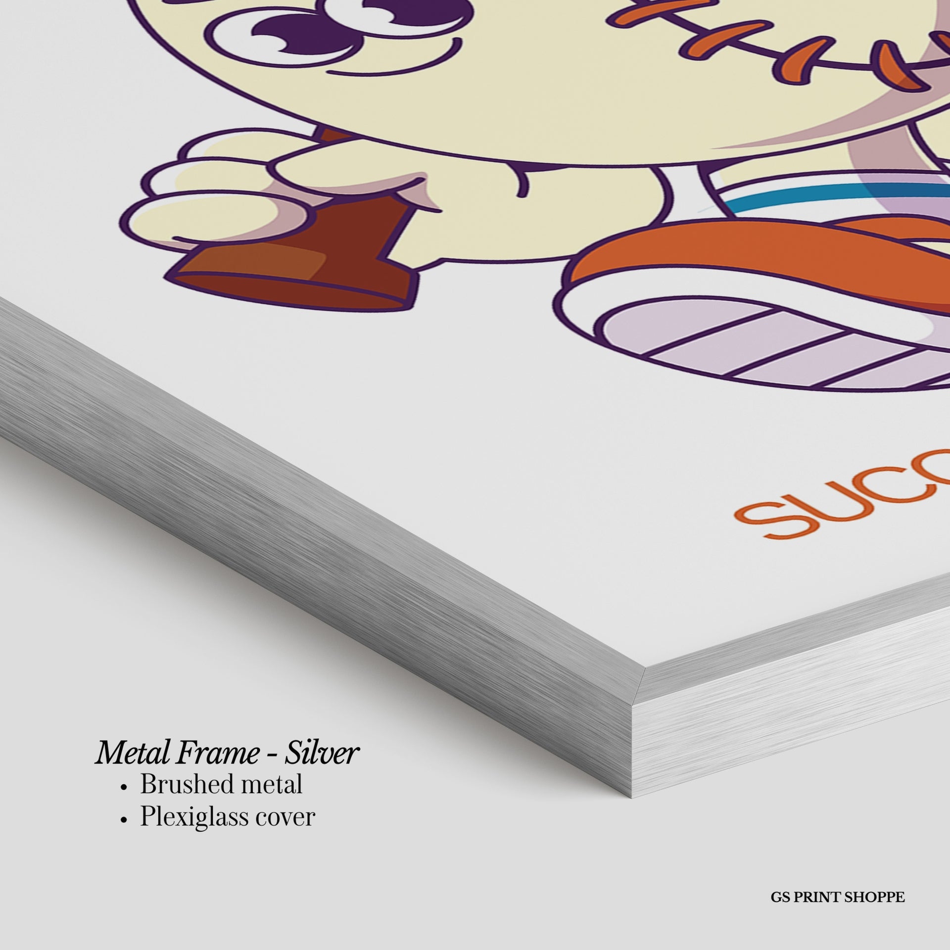 Metal Frame: Sleek and modern, our metal frame is crafted with brushed metal for a polished finish. It comes with durable plexiglass and sturdy metal hangers for horizontal or vertical display.