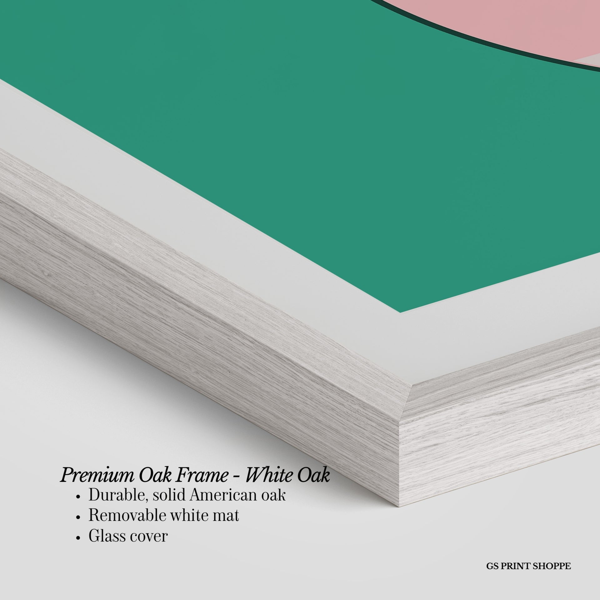Premium Oak Frame: Our premium oak frame is crafted from solid American oak, offering a warm, natural feel with a high-end finish. We complete this elevated offering with a bright white removable mat and real glass for a versatile and polished look.
