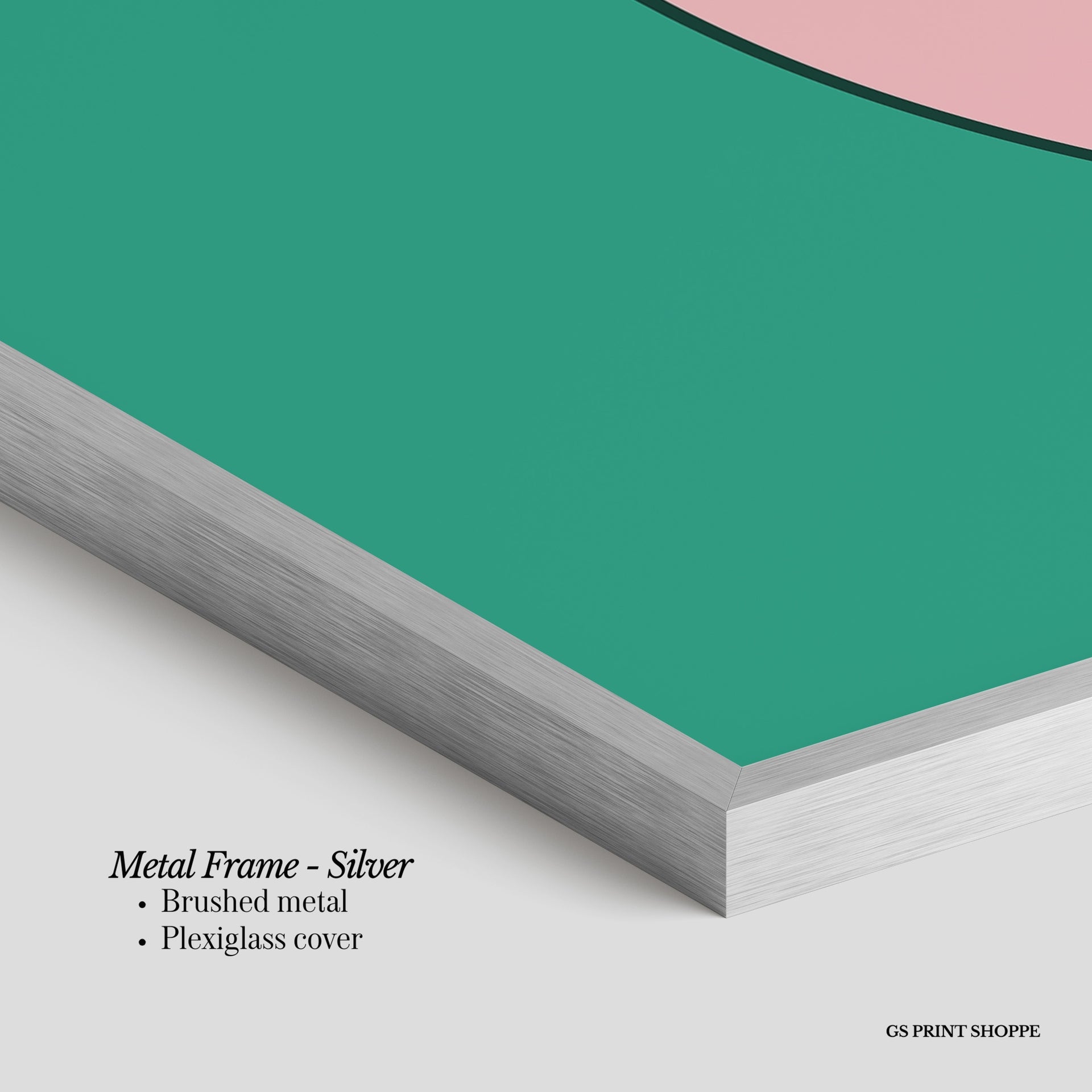 Metal Frame: Sleek and modern, our metal frame is crafted with brushed metal for a polished finish. It comes with durable plexiglass and sturdy metal hangers for horizontal or vertical display.