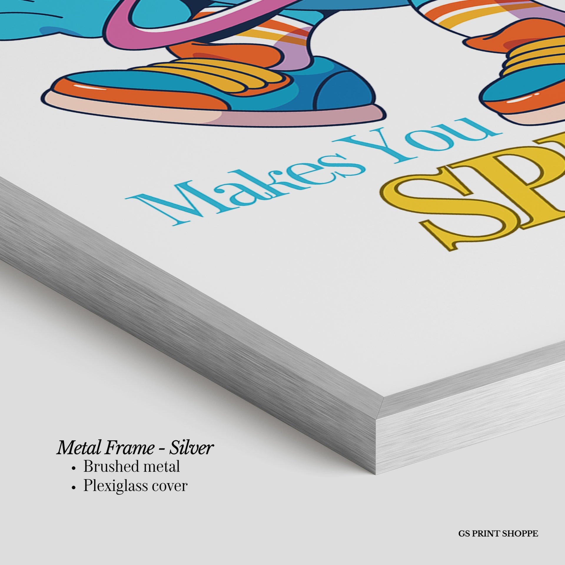 Metal Frame: Sleek and modern, our metal frame is crafted with brushed metal for a polished finish. It comes with durable plexiglass and sturdy metal hangers for horizontal or vertical display.