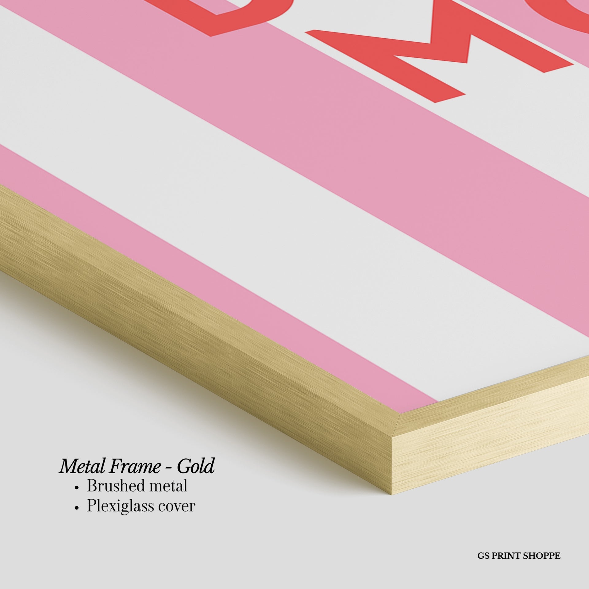 Metal Frame: Sleek and modern, our metal frame is crafted with brushed metal for a polished finish. It comes with durable plexiglass and sturdy metal hangers for horizontal or vertical display.