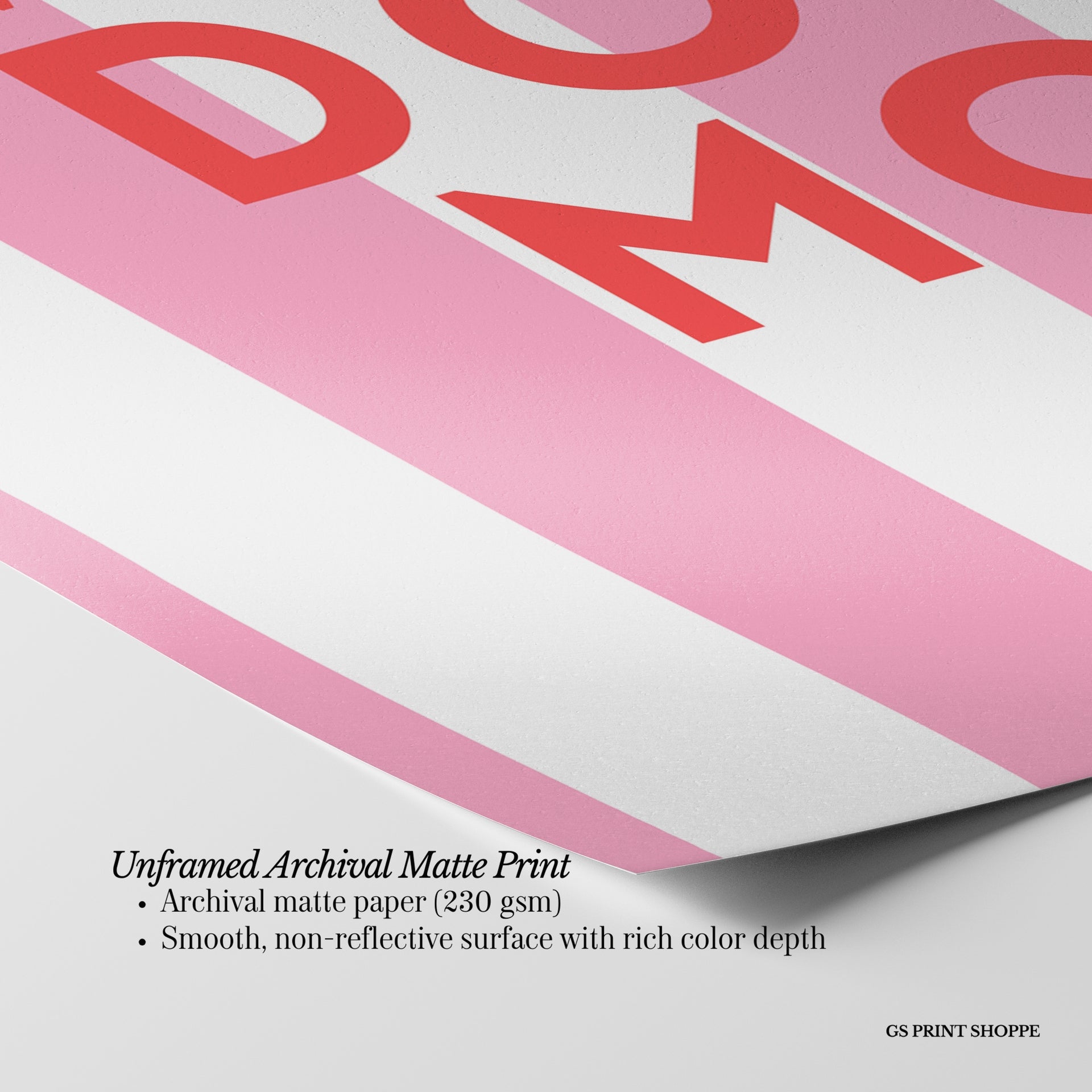 Unframed: This print is professionally printed on archival matte paper (230 gsm), a smooth, acid-free paper with a non-reflective finish. It will be carefully packaged to arrive safely at your door.