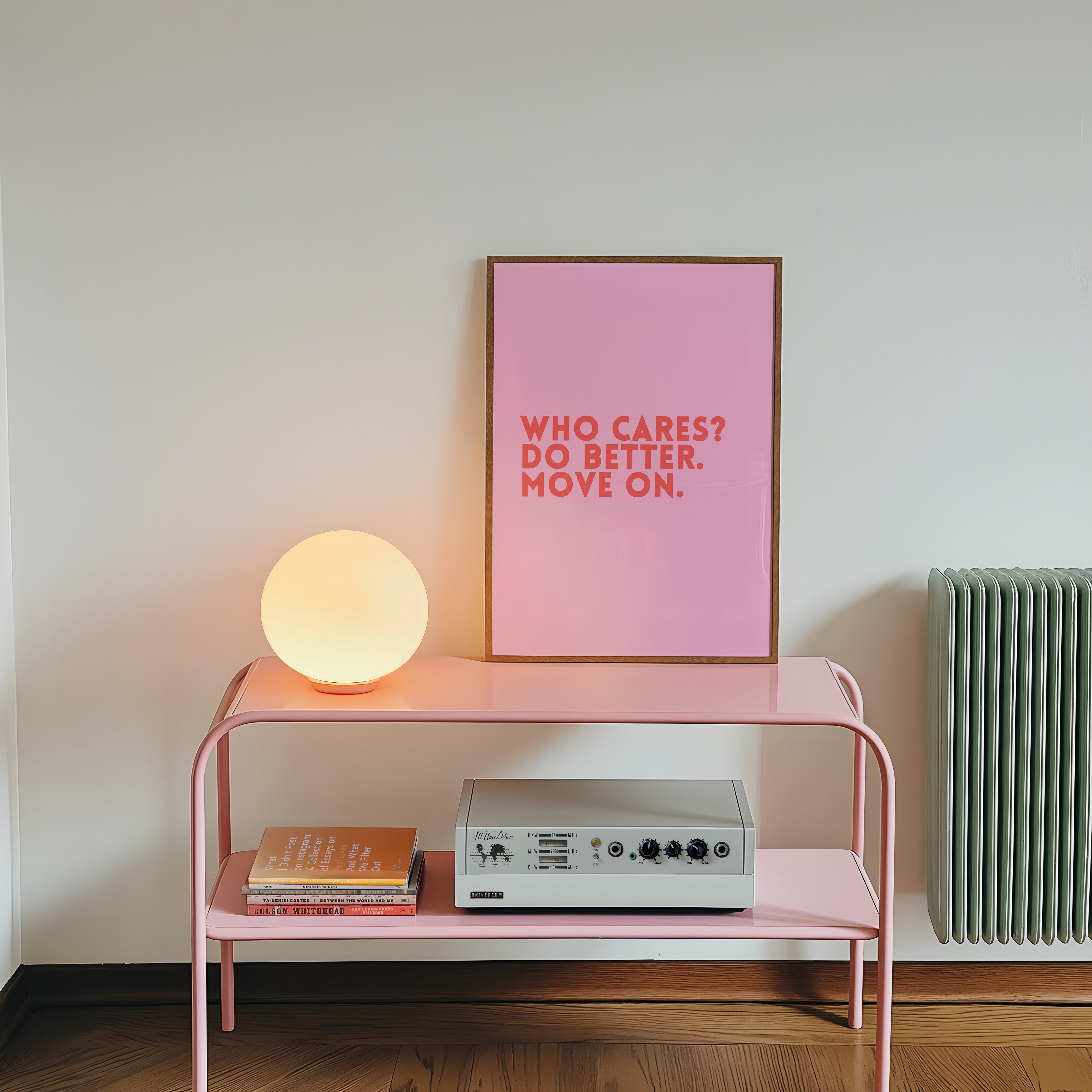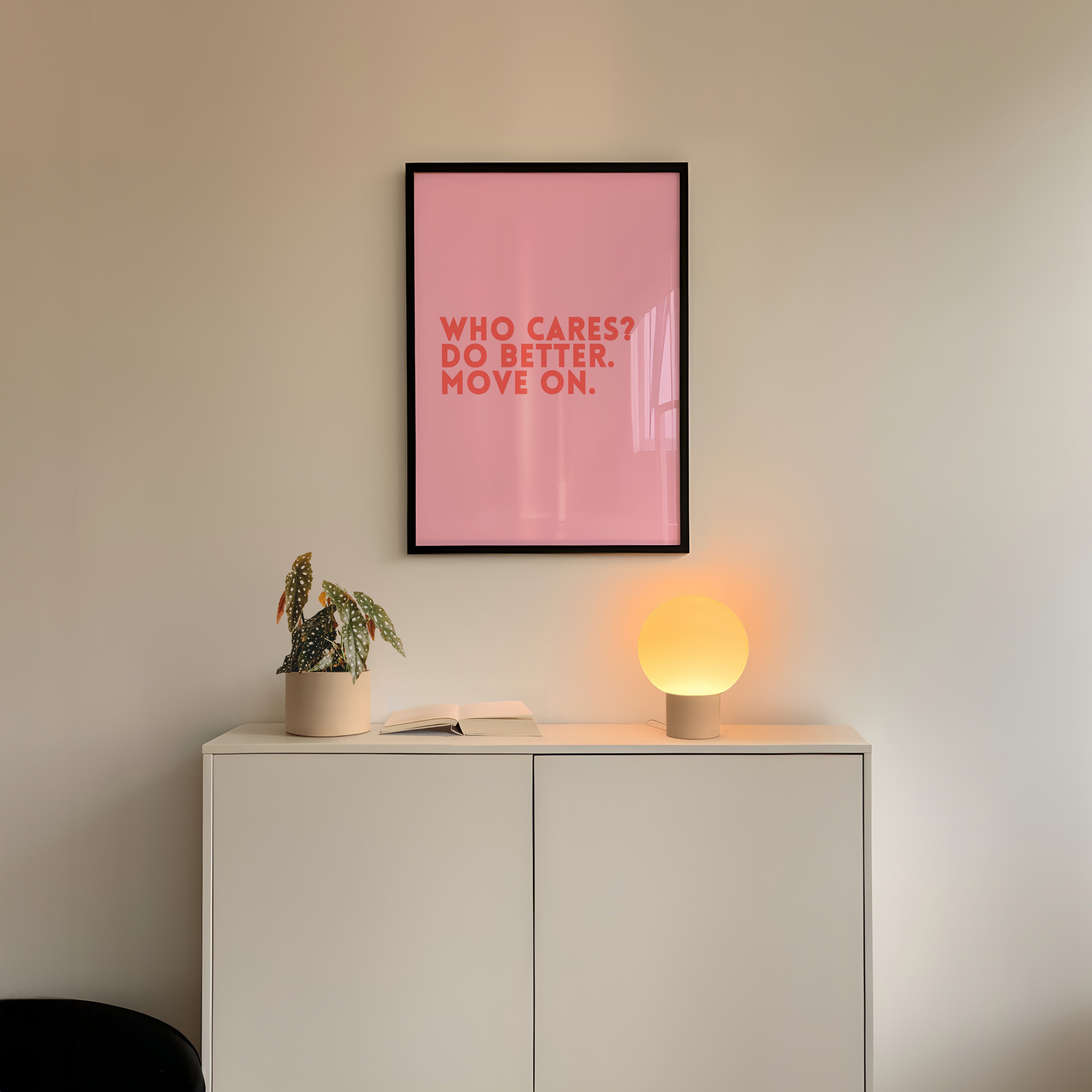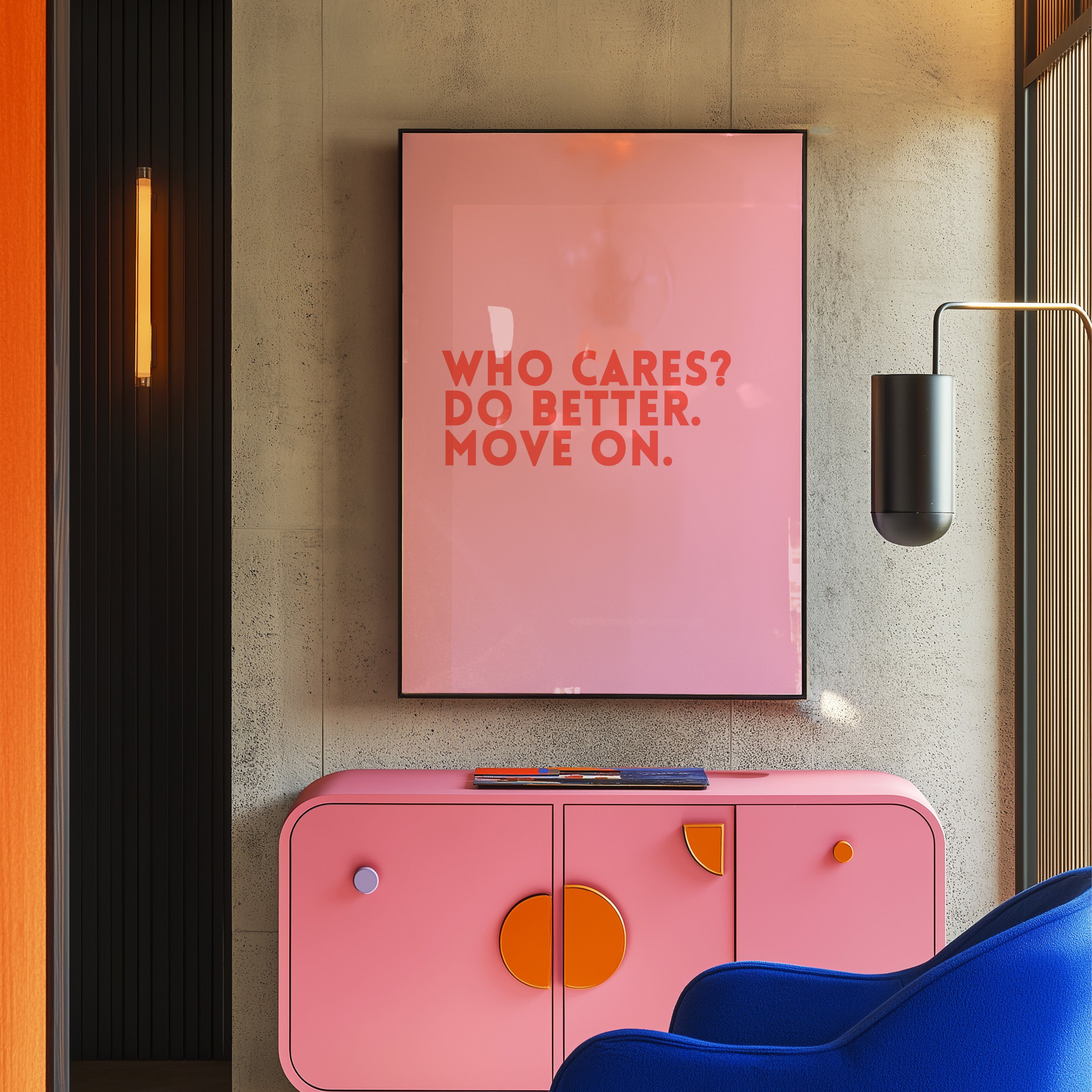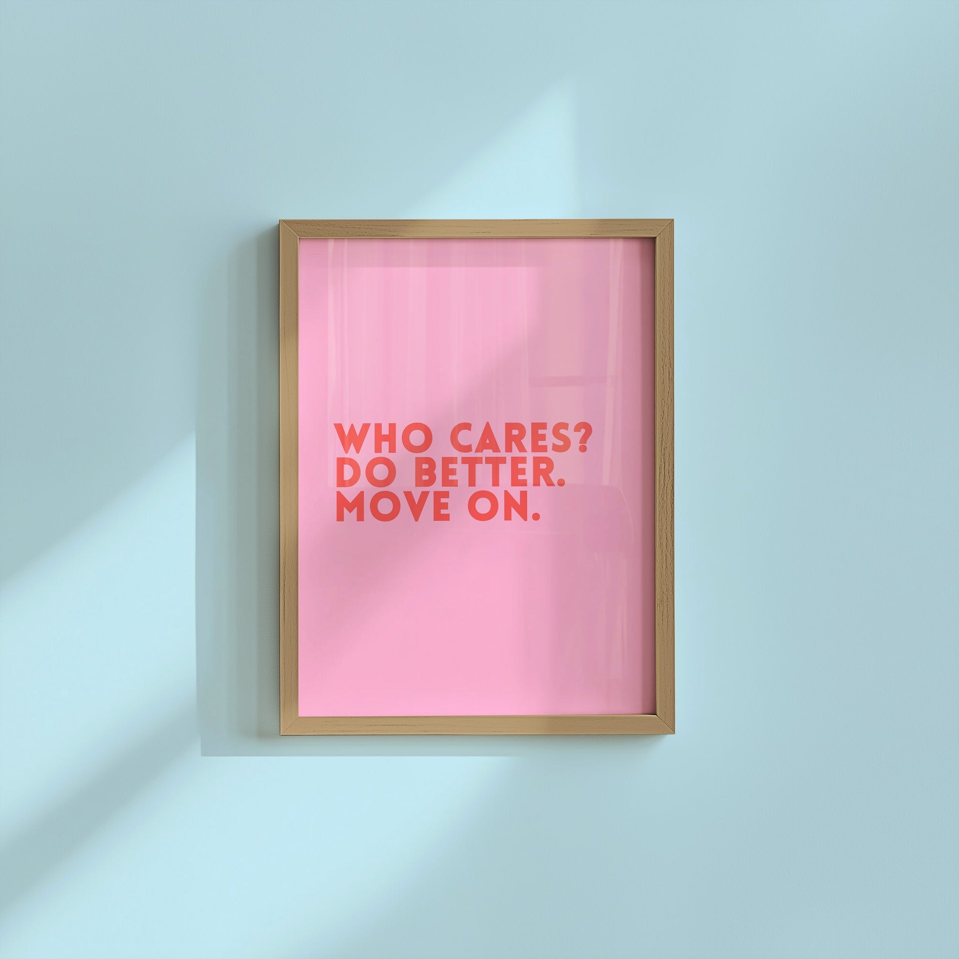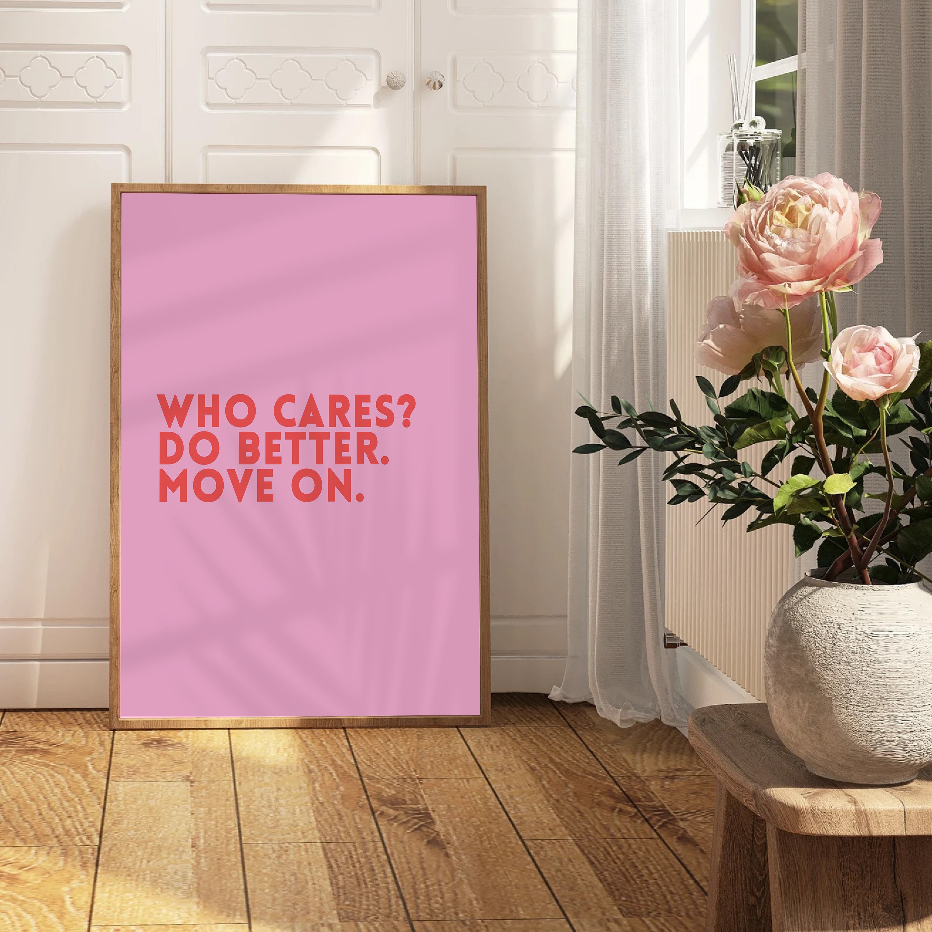 Who Cares Do Better Move On Vertical Art Print - Red and Pink