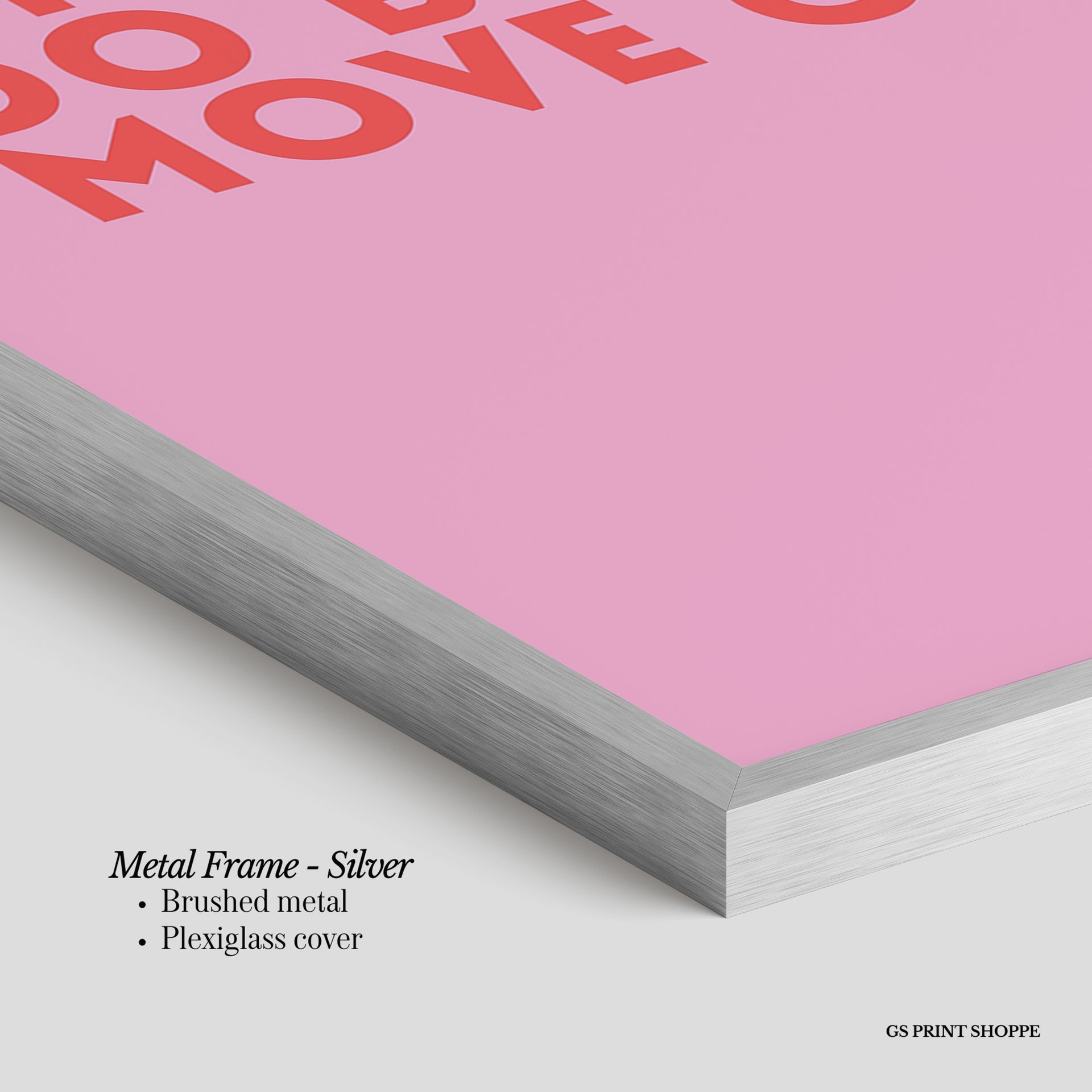 Metal Frame: Sleek and modern, our metal frame is crafted with brushed metal for a polished finish. It comes with durable plexiglass and sturdy metal hangers for horizontal or vertical display.