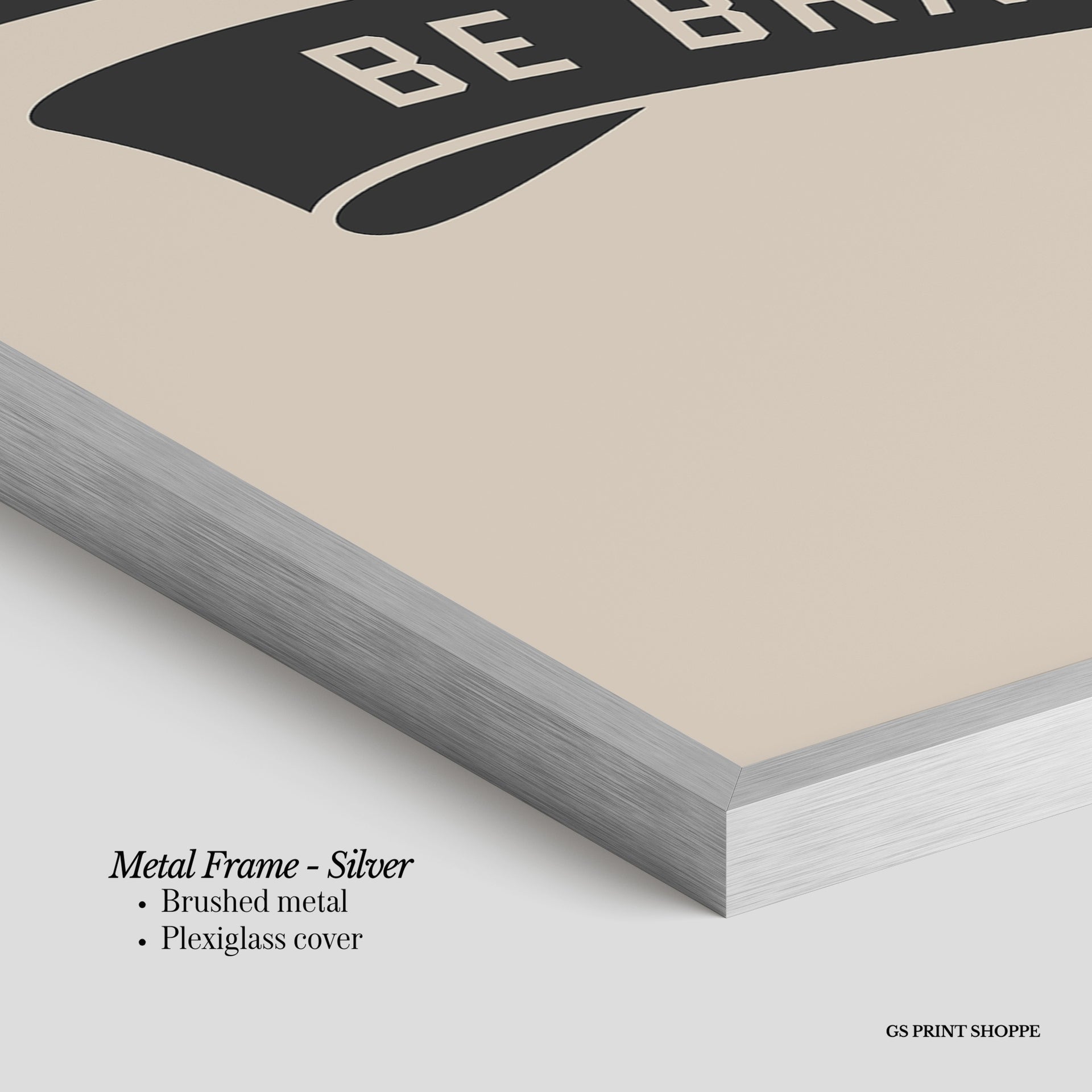 Metal Frame: Sleek and modern, our metal frame is crafted with brushed metal for a polished finish. It comes with durable plexiglass and sturdy metal hangers for horizontal or vertical display.