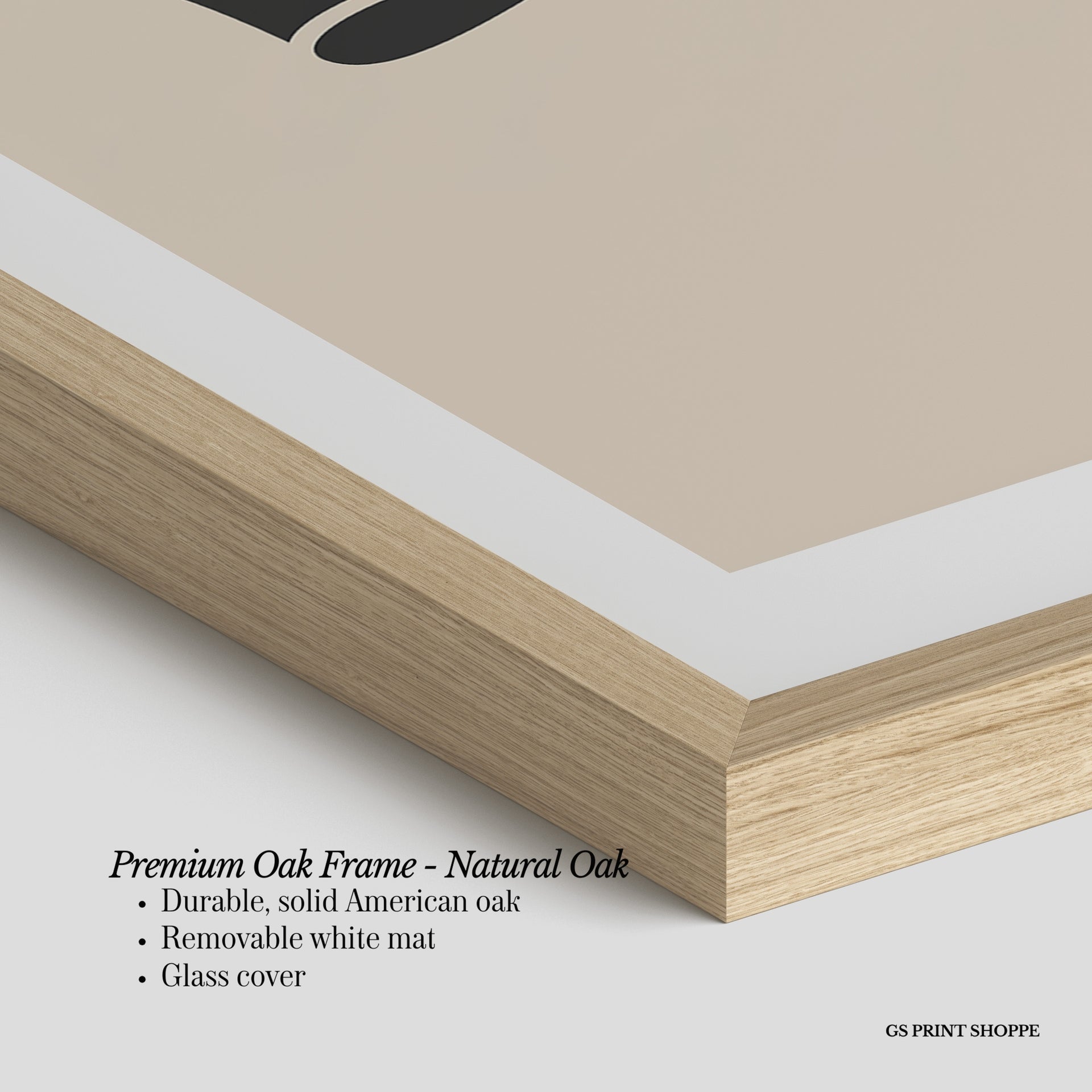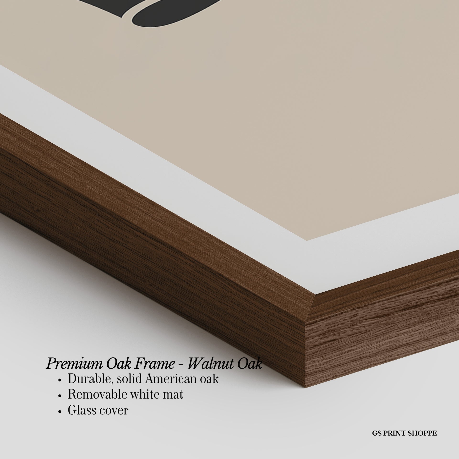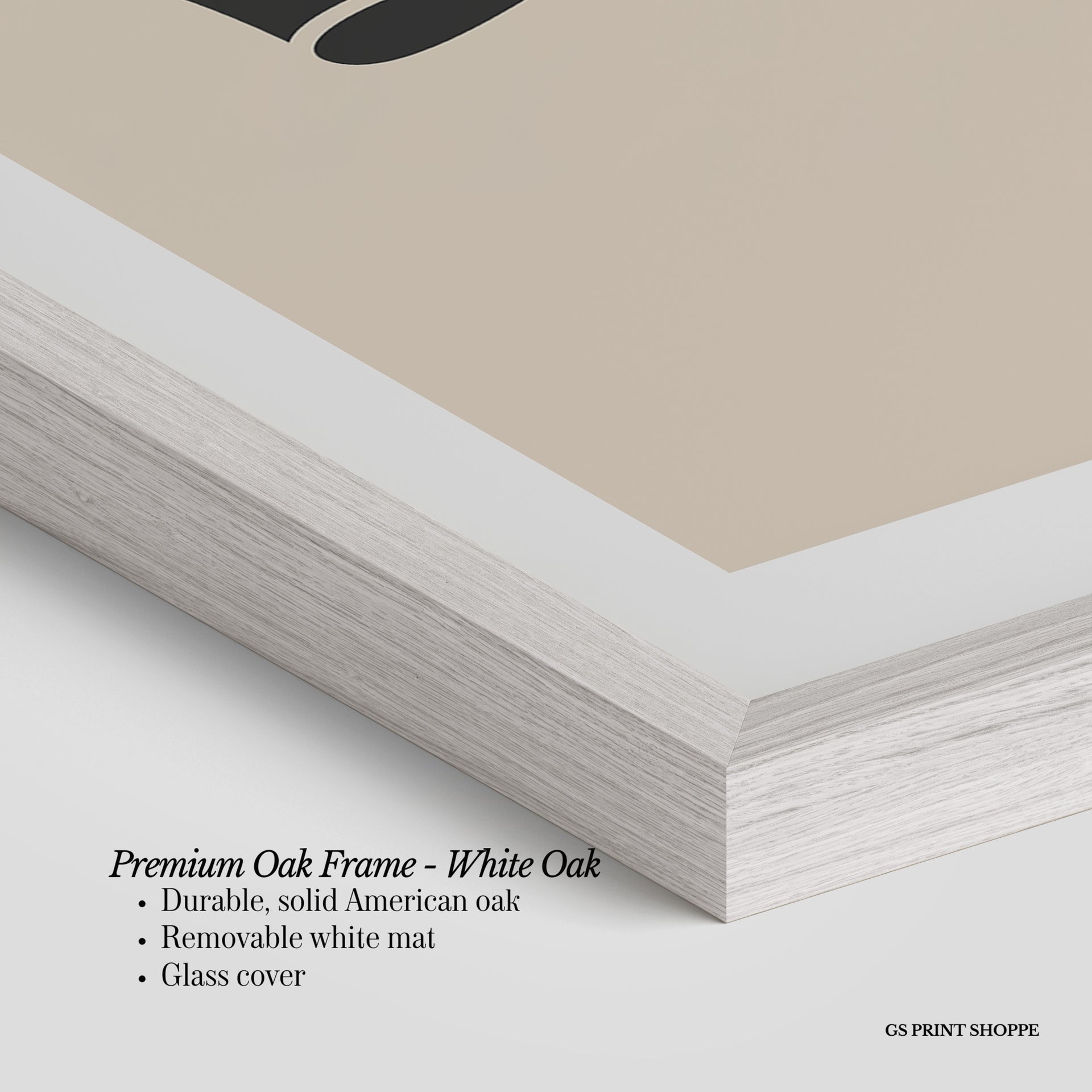 Premium Oak Frame: Our premium oak frame is crafted from solid American oak, offering a warm, natural feel with a high-end finish. We complete this elevated offering with a bright white removable mat and real glass for a versatile and polished look.