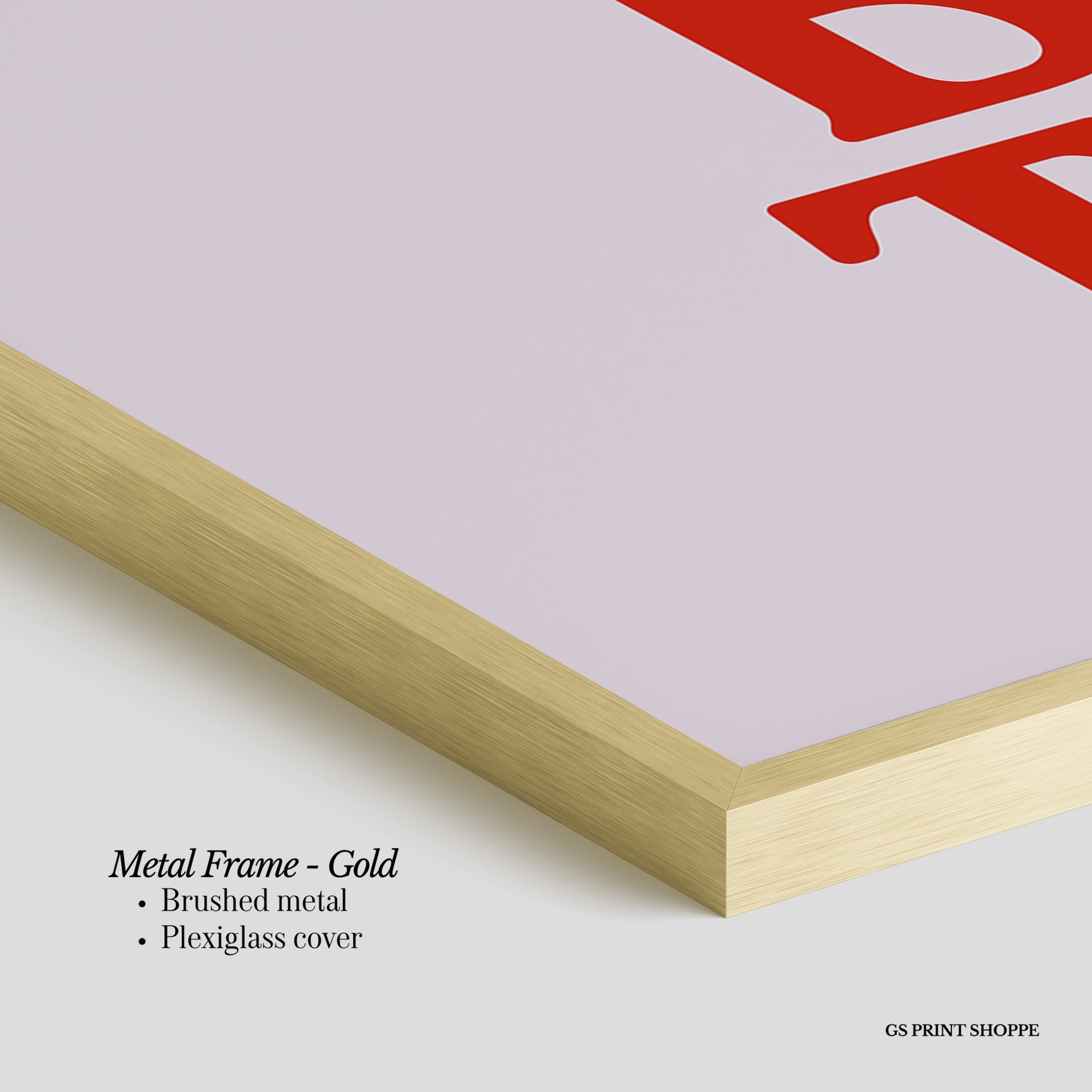 Metal Frame: Sleek and modern, our metal frame is crafted with brushed metal for a polished finish. It comes with durable plexiglass and sturdy metal hangers for horizontal or vertical display.