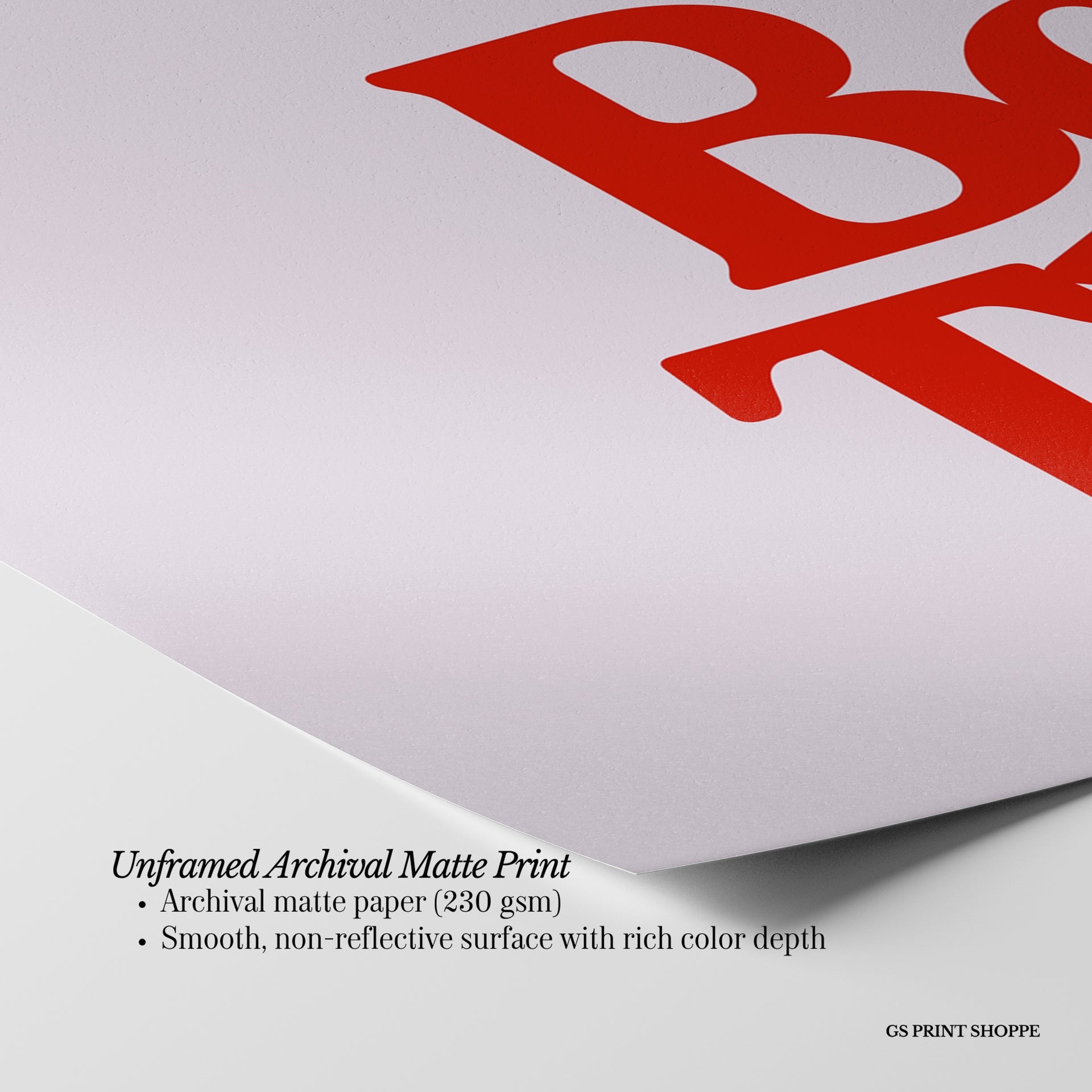 Unframed: This print is professionally printed on archival matte paper (230 gsm), a smooth, acid-free paper with a non-reflective finish. It will be carefully packaged to arrive safely at your door.