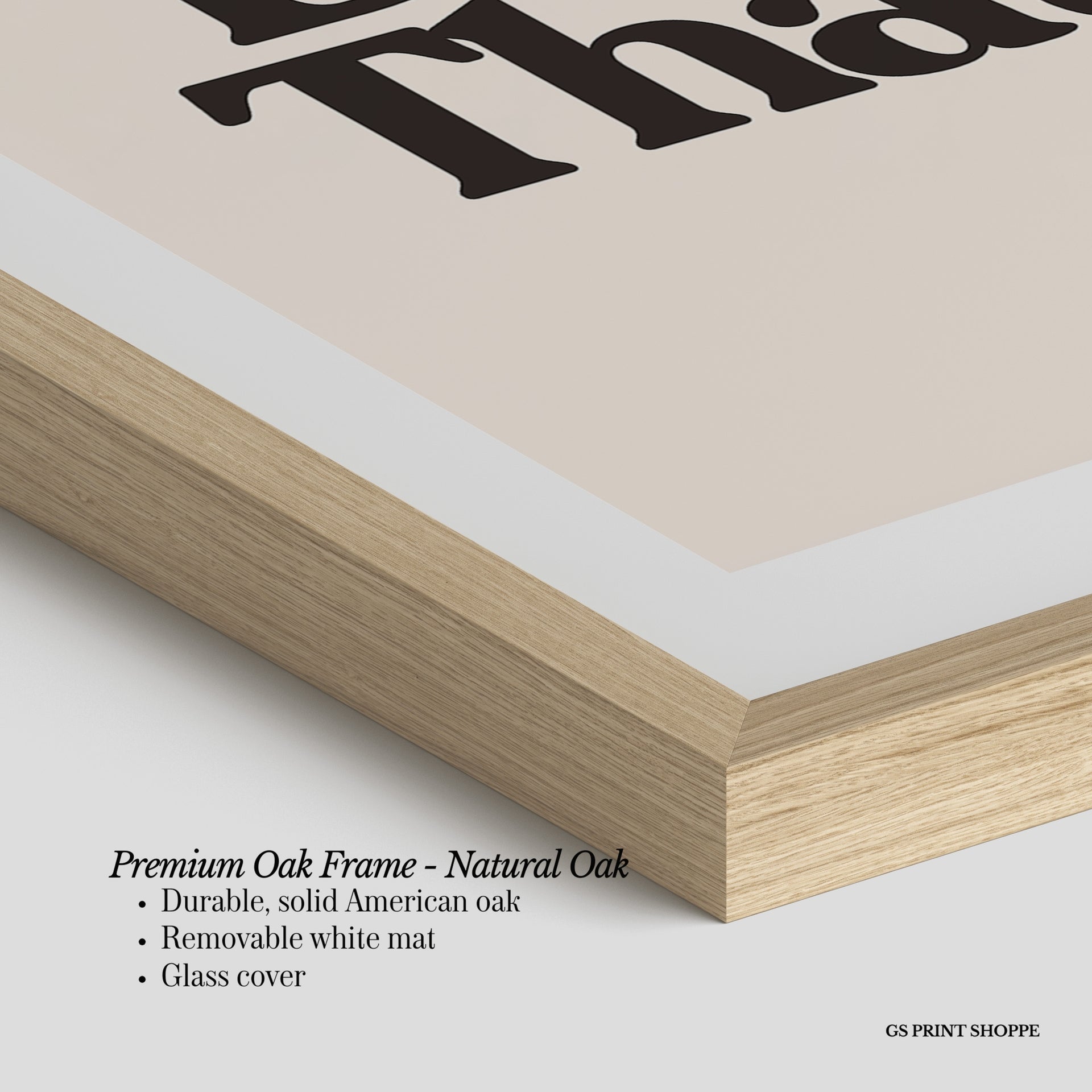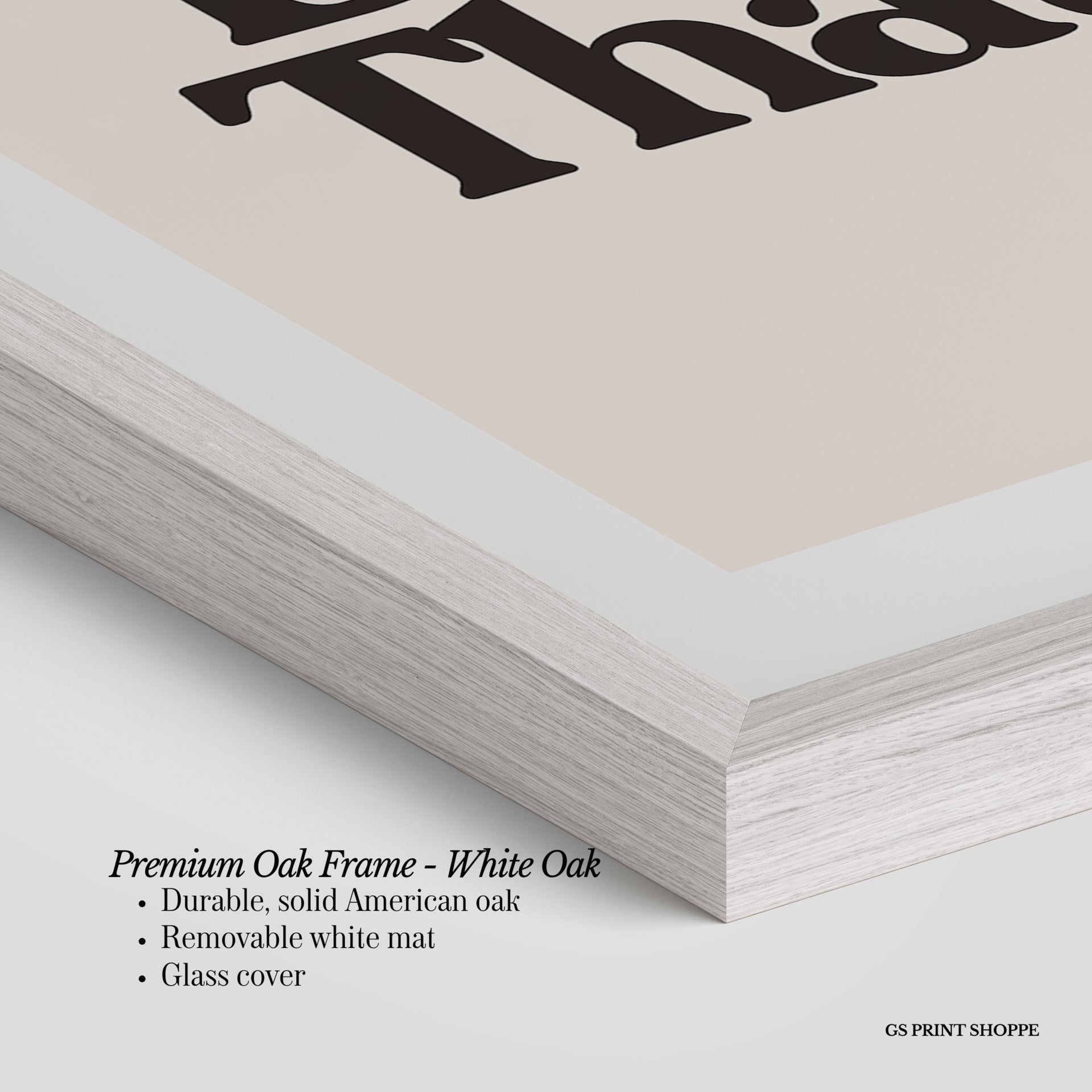 Premium Oak Frame: Our premium oak frame is crafted from solid American oak, offering a warm, natural feel with a high-end finish. We complete this elevated offering with a bright white removable mat and real glass for a versatile and polished look.
