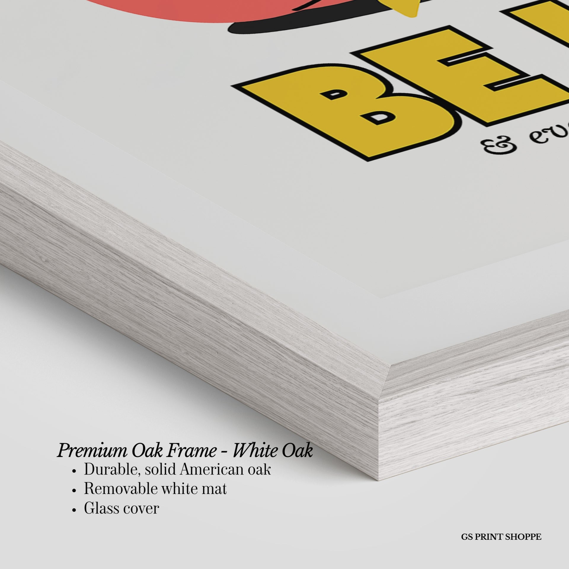 Premium Oak Frame: Our premium oak frame is crafted from solid American oak, offering a warm, natural feel with a high-end finish. We complete this elevated offering with a bright white removable mat and real glass for a versatile and polished look.