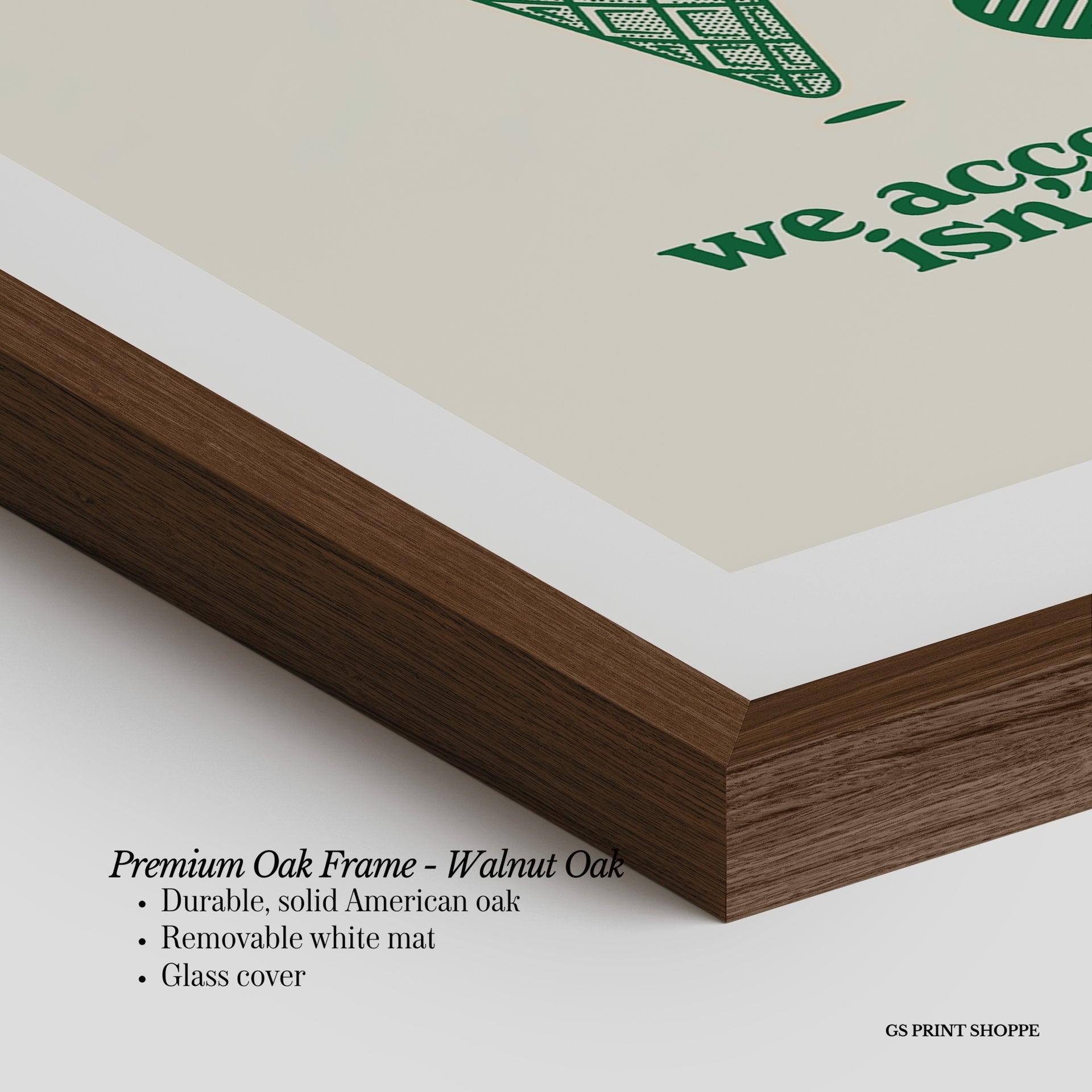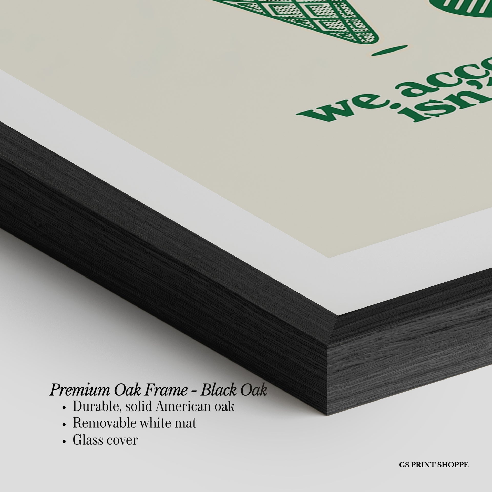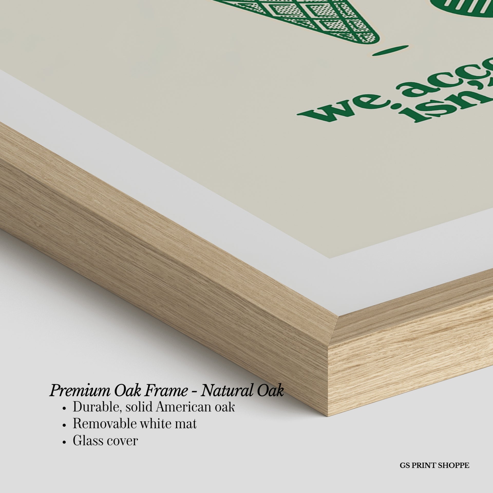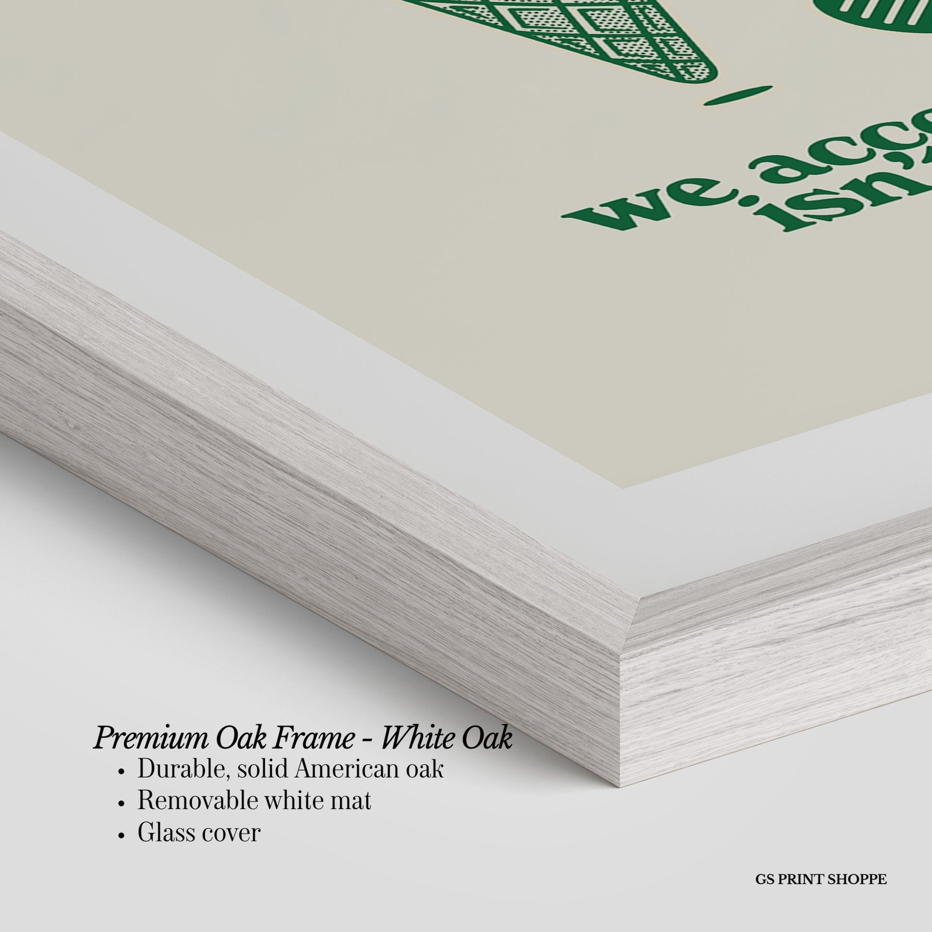 Premium Oak Frame: Our premium oak frame is crafted from solid American oak, offering a warm, natural feel with a high-end finish. We complete this elevated offering with a bright white removable mat and real glass for a versatile and polished look.