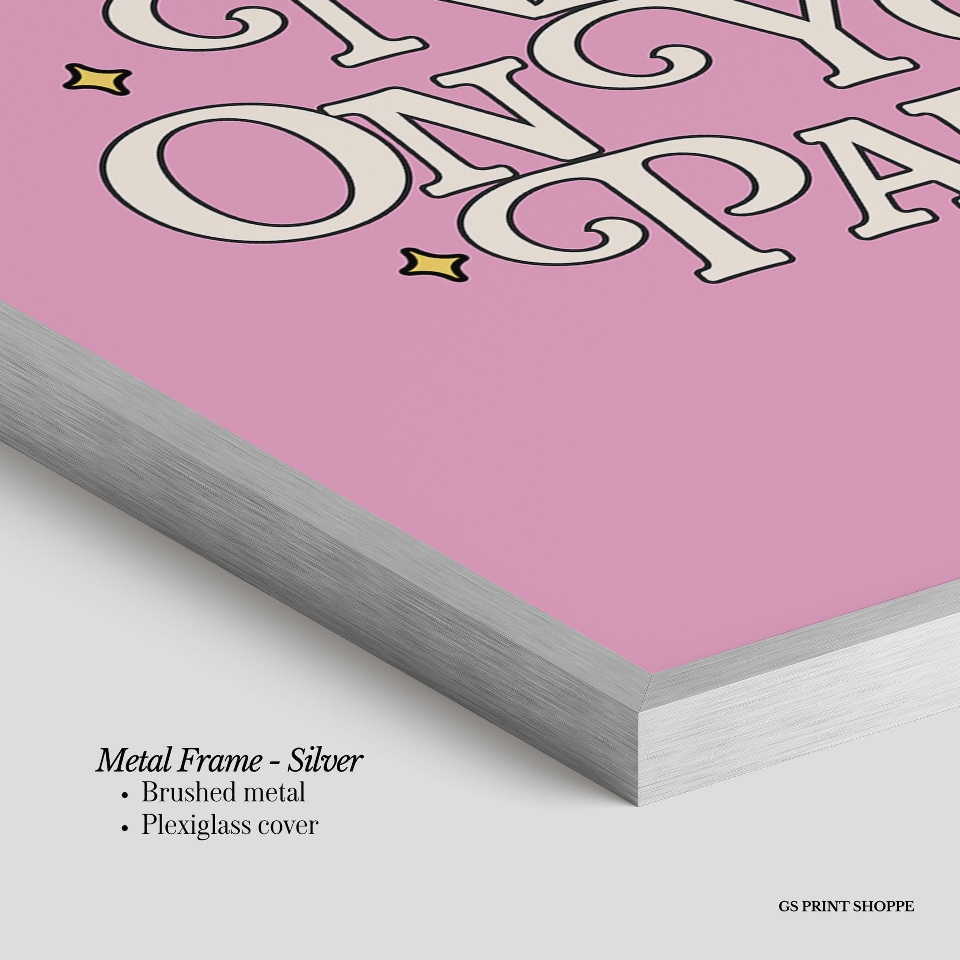 Metal Frame: Sleek and modern, our metal frame is crafted with brushed metal for a polished finish. It comes with durable plexiglass and sturdy metal hangers for horizontal or vertical display.