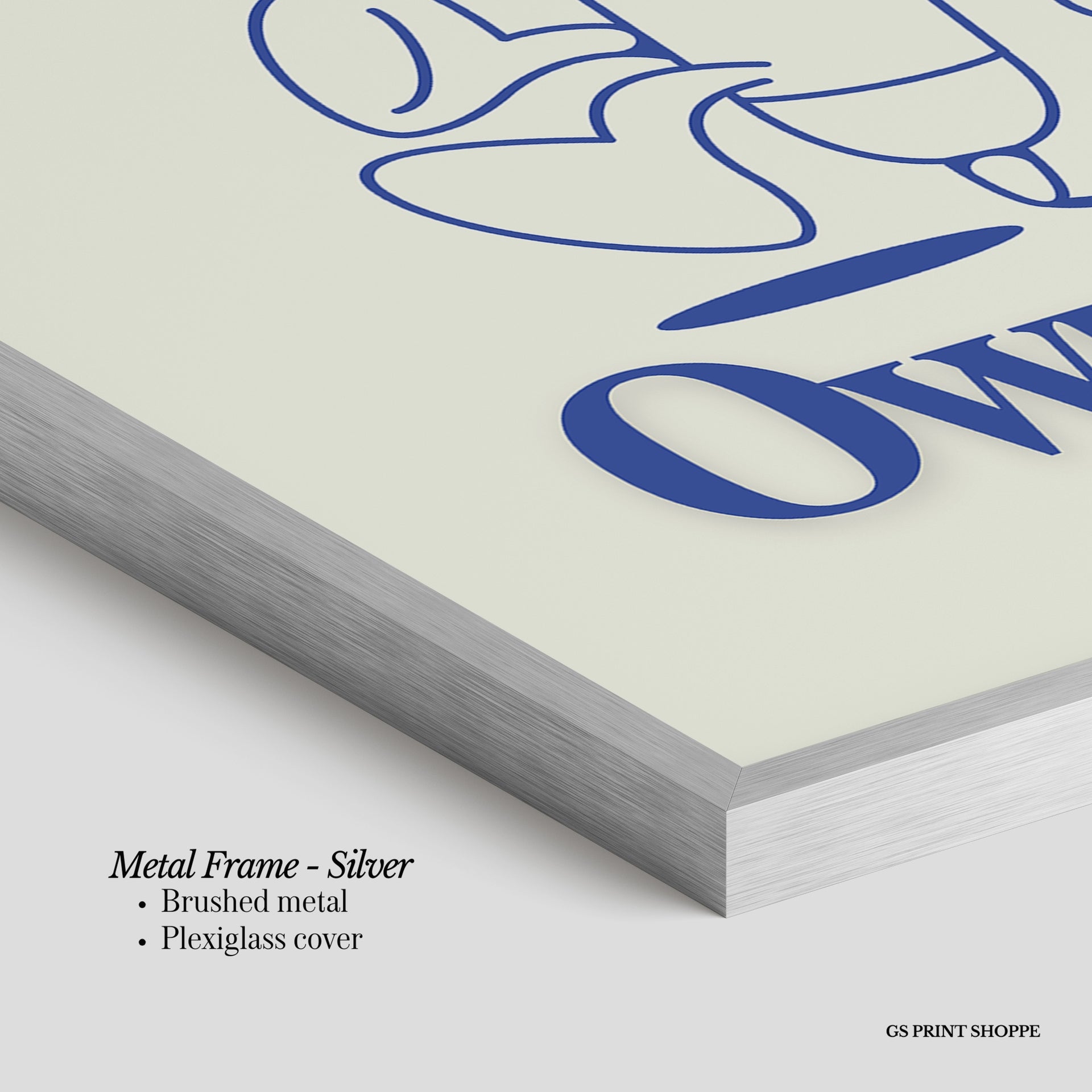 Metal Frame: Sleek and modern, our metal frame is crafted with brushed metal for a polished finish. It comes with durable plexiglass and sturdy metal hangers for horizontal or vertical display.